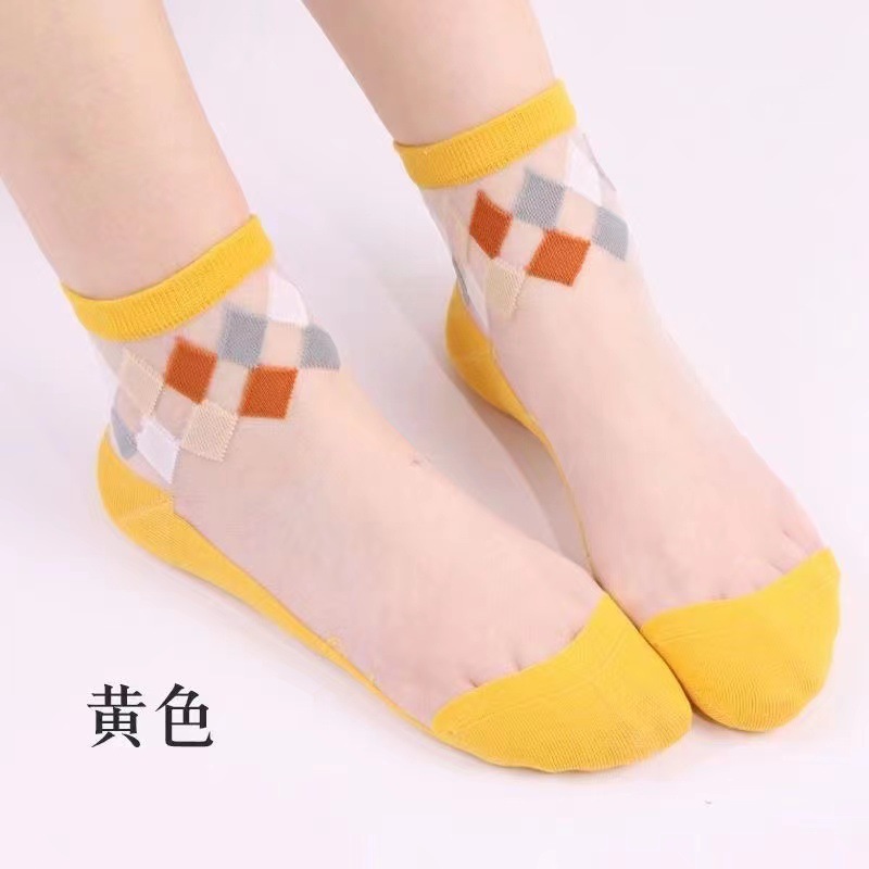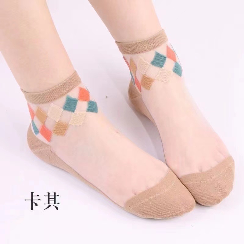 짧은 양말 여성용 여름 얇은 귀여운 일본식 유리 실크 스타킹 크리스탈 아이스 스타킹 여름 유행 양말