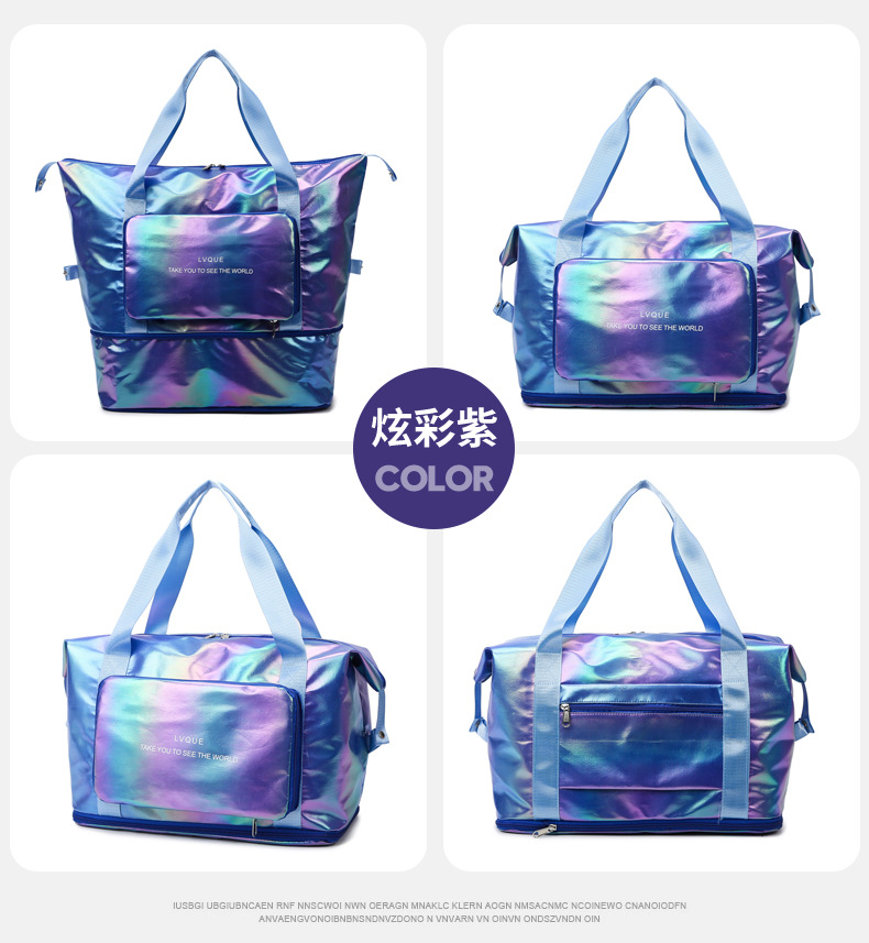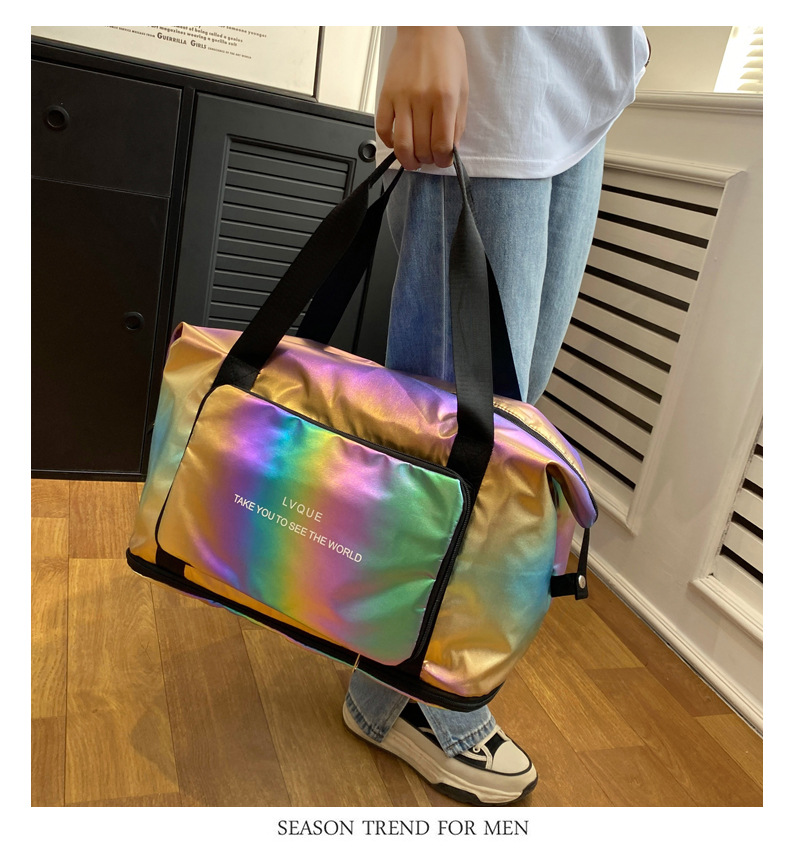 2023 패션 여성용 체육관 가방 오로라 밝은 표면 방수 핸드백 대용량 나일론 여행 가방 비즈니스 더플 백