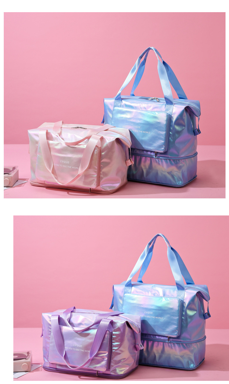 2023 패션 여성용 체육관 가방 오로라 밝은 표면 방수 핸드백 대용량 나일론 여행 가방 비즈니스 더플 백스토어 가기