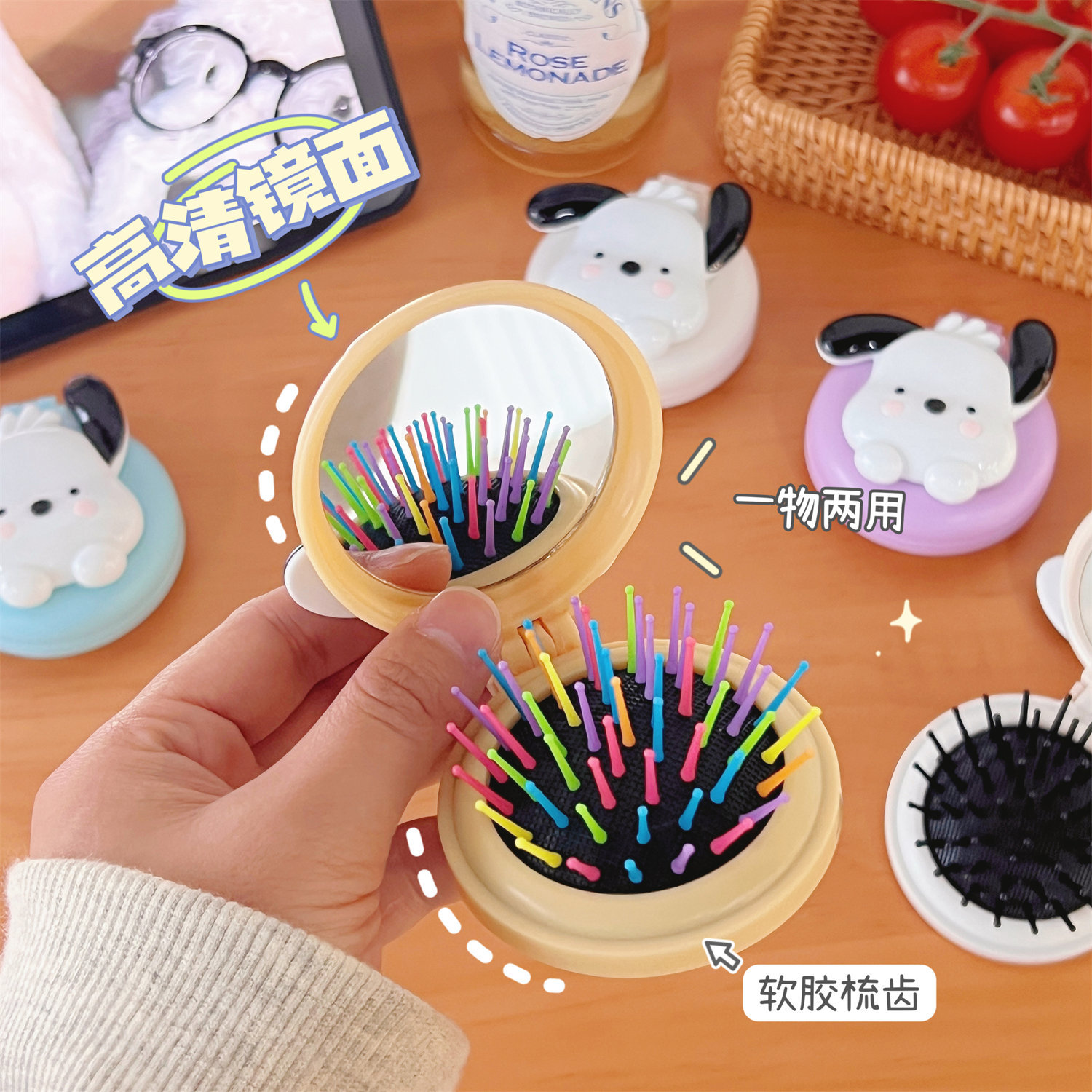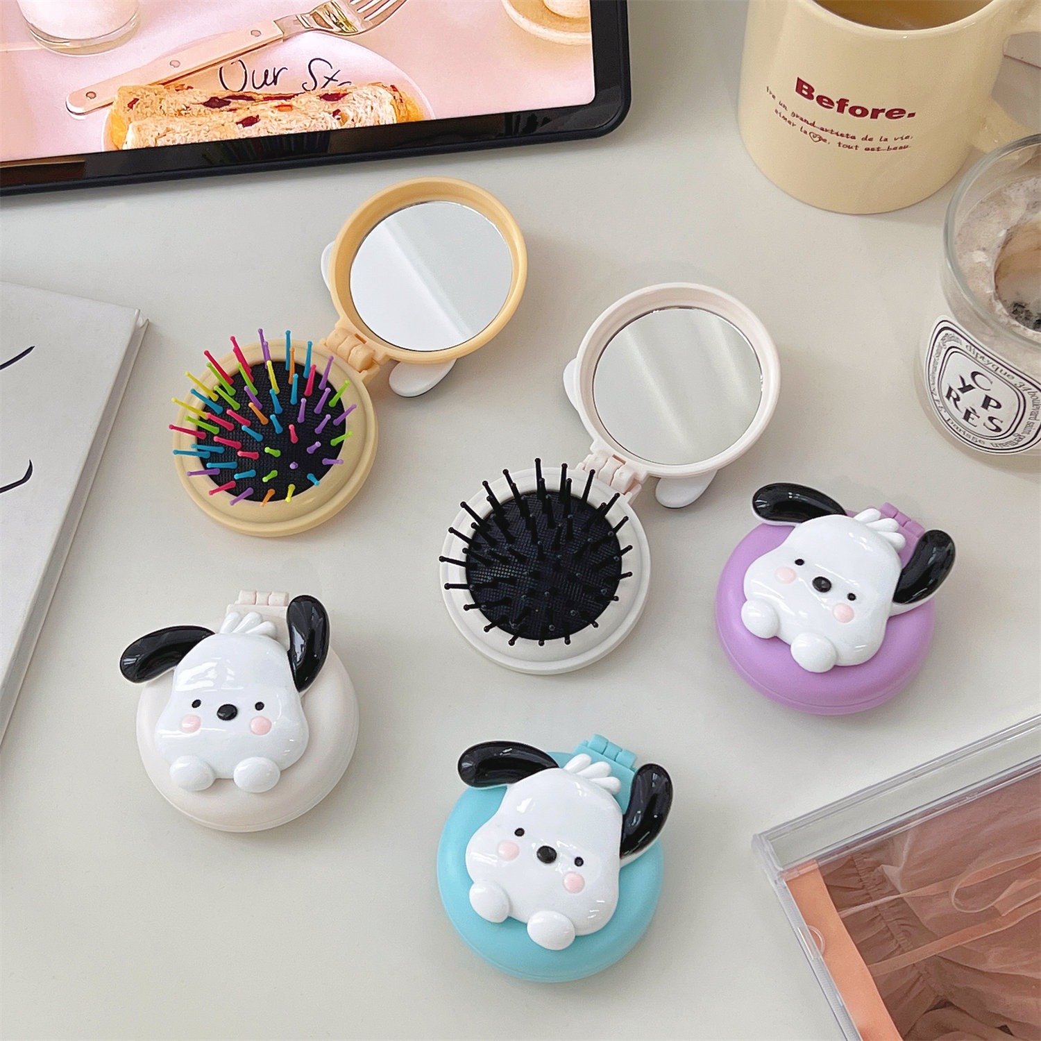 귀여운 개 두려워 휴대용 접이식 에어백 빗 휴대용 빗질 거울 학생용 이중 목적 통합 미니 소형 거울