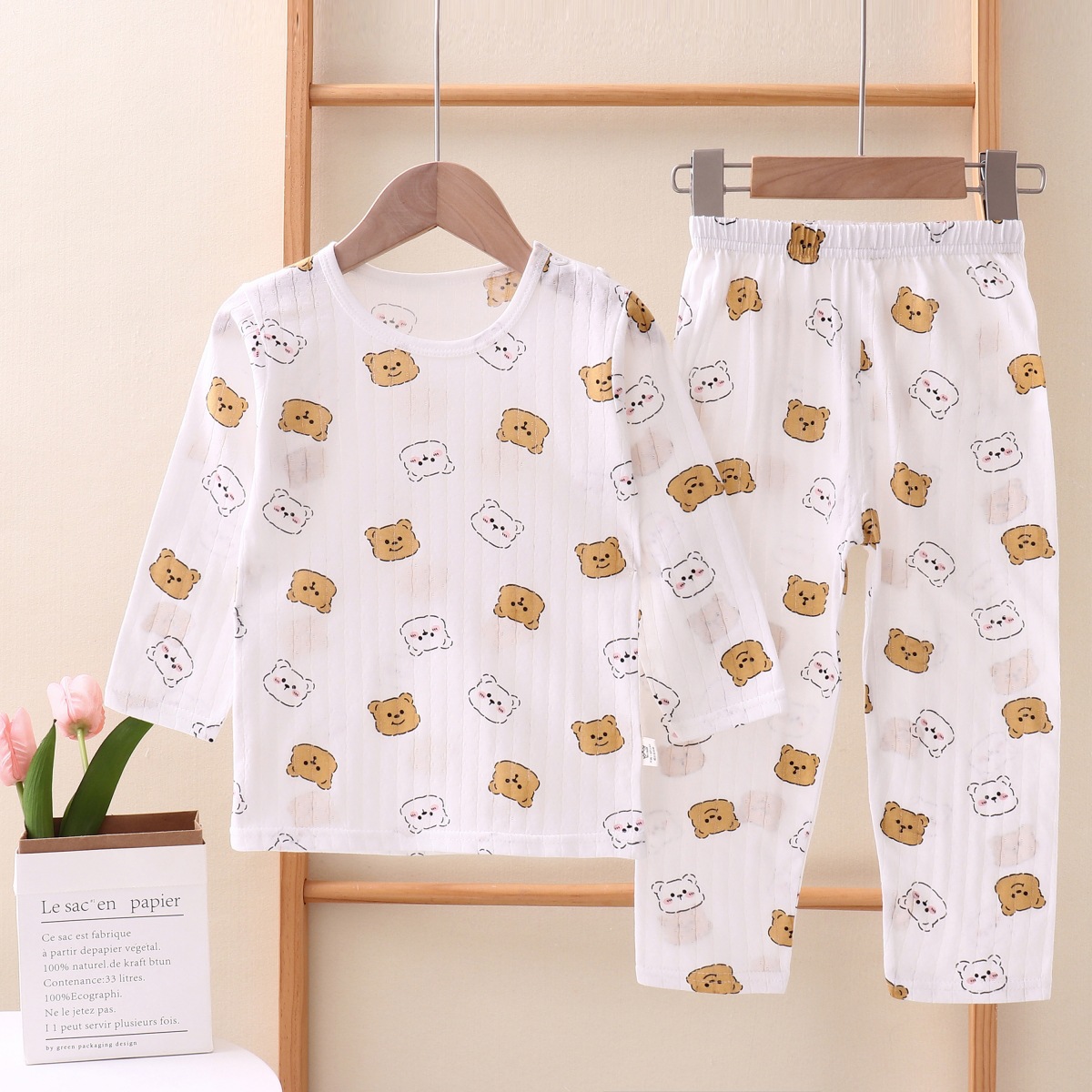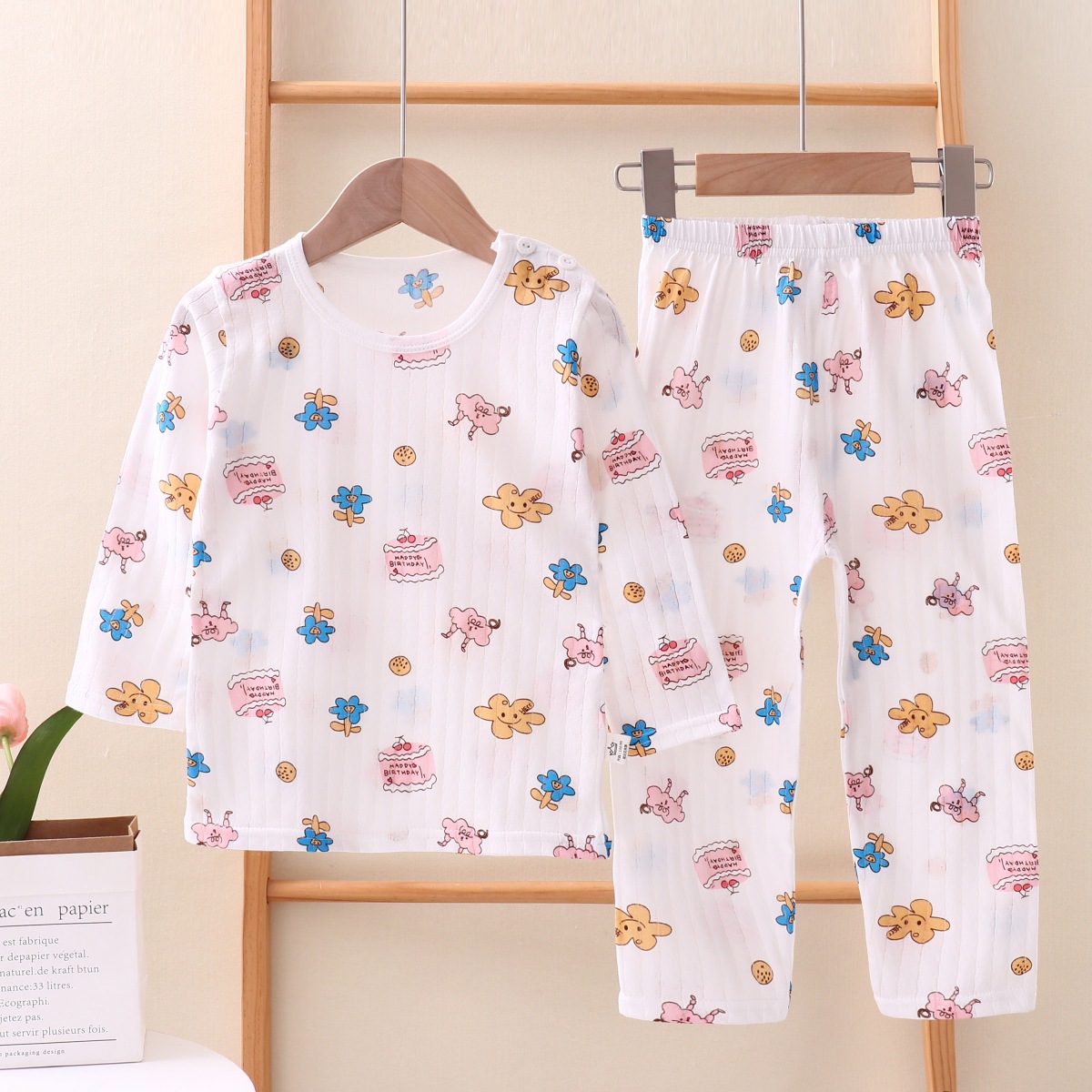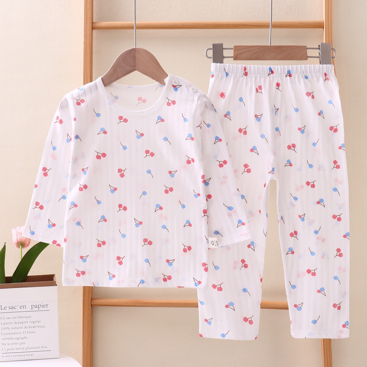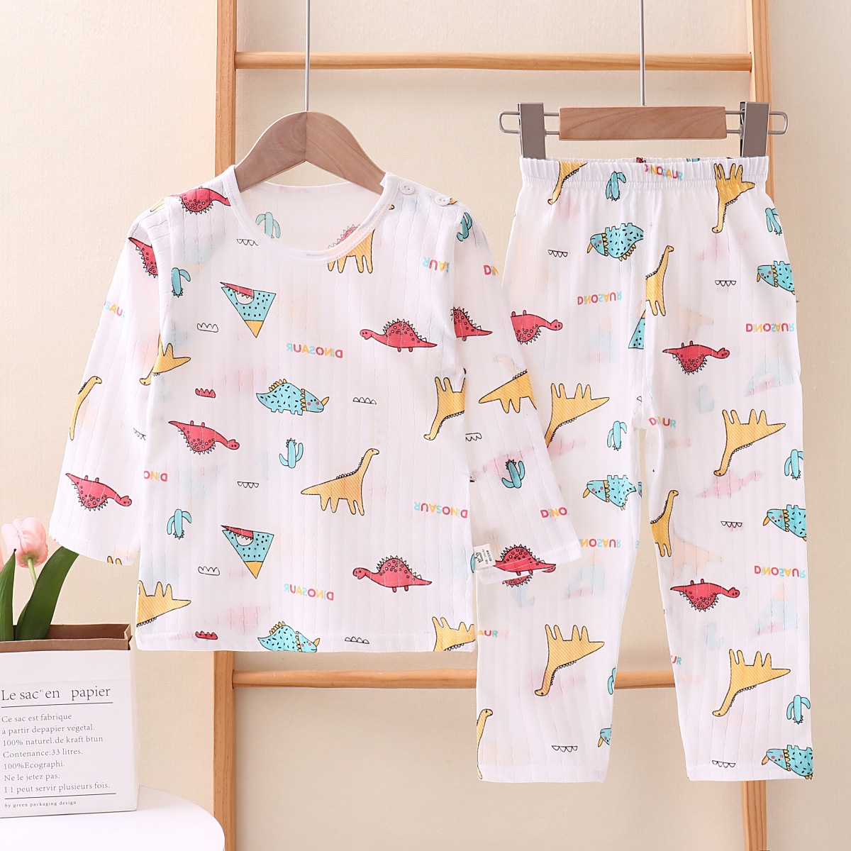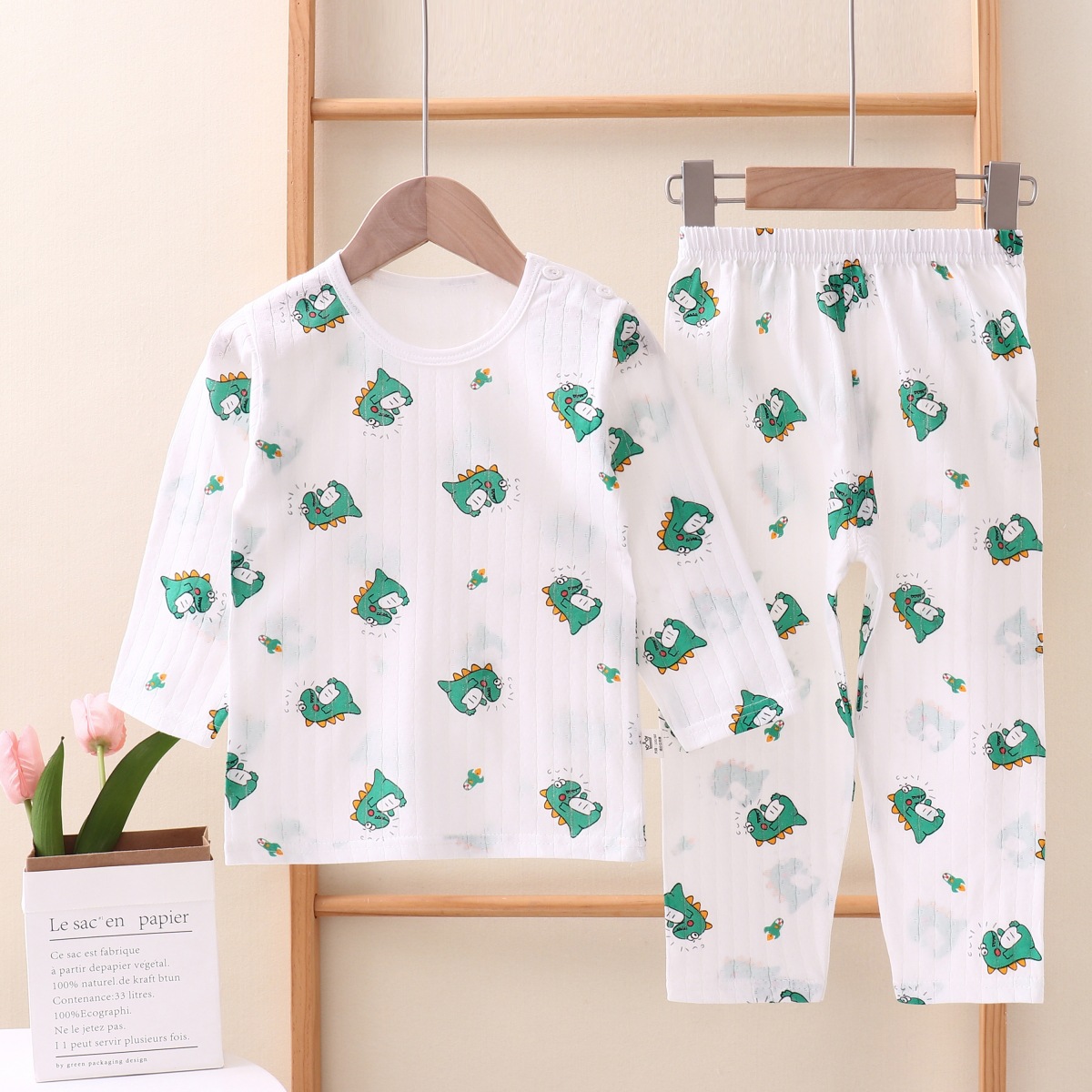 여름용 잠옷 세트 남아 여아 얇은 긴팔 홈웨어 아기 순면 에어컨 옷 아동복 통기성 공룡스토어 가기