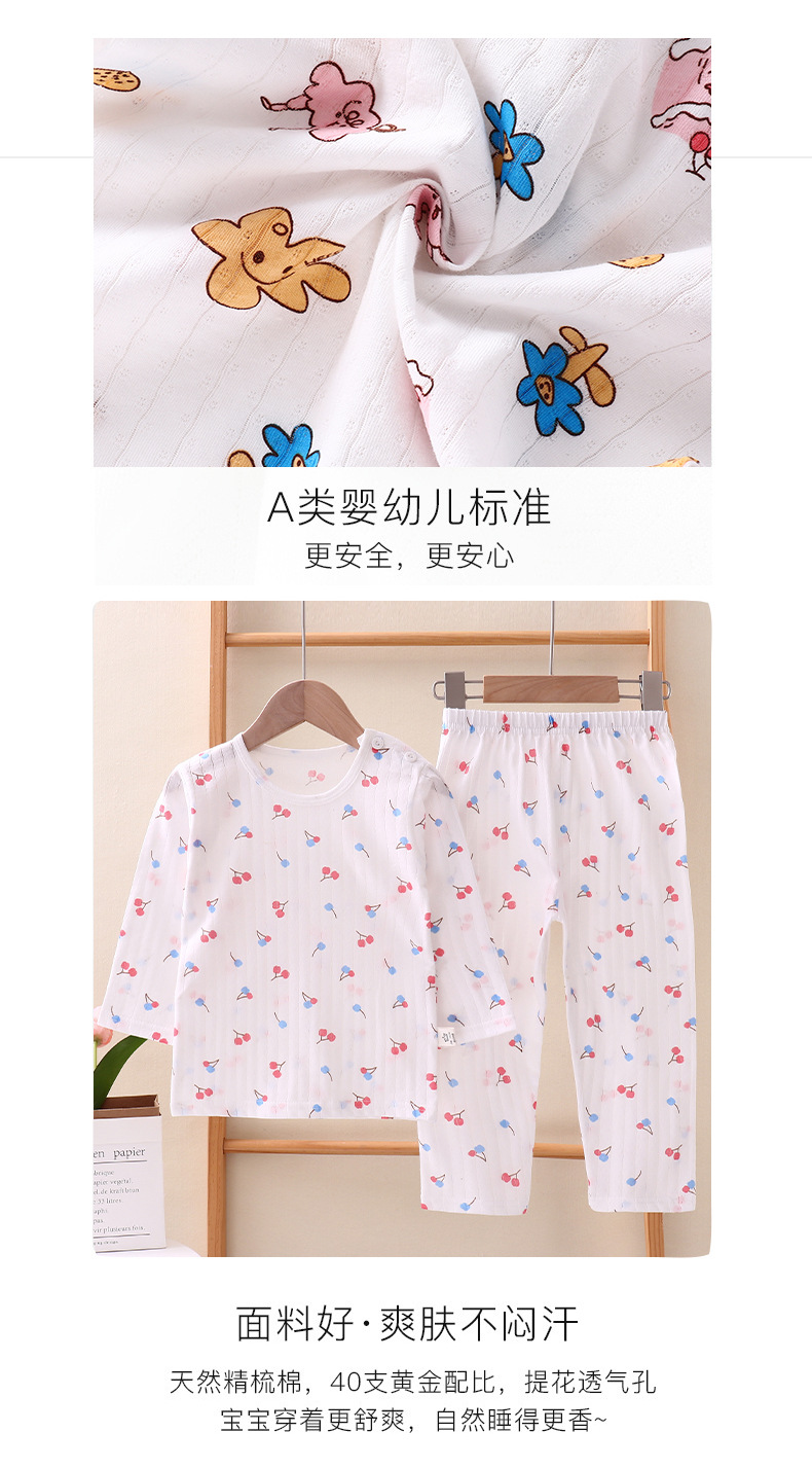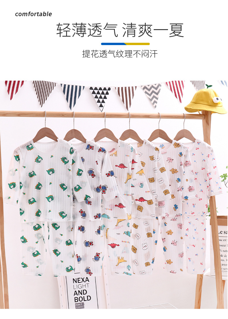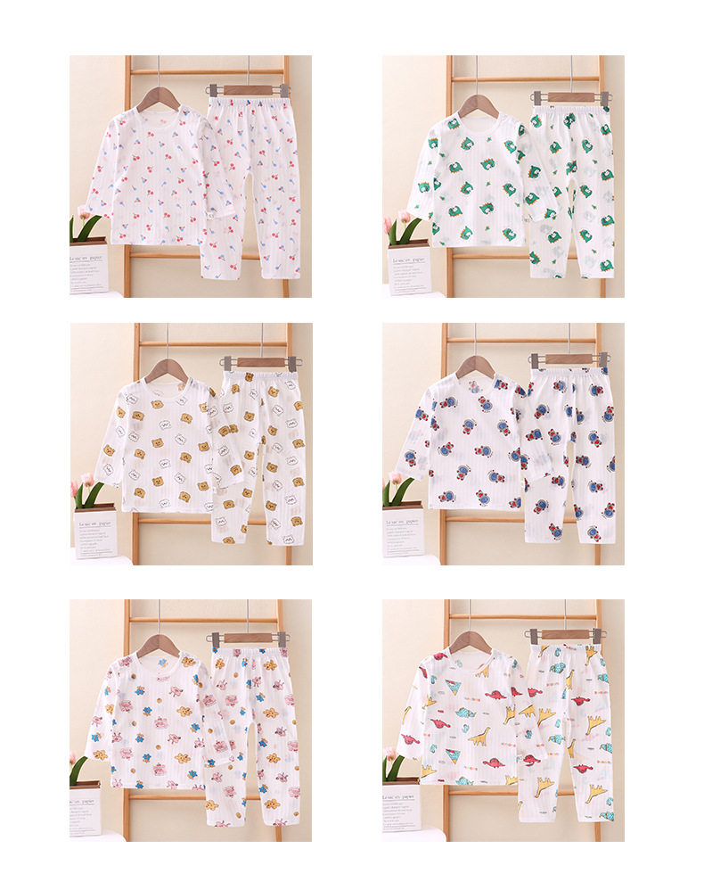 여름용 잠옷 세트 남아 여아 얇은 긴팔 홈웨어 아기 순면 에어컨 옷 아동복 통기성 공룡