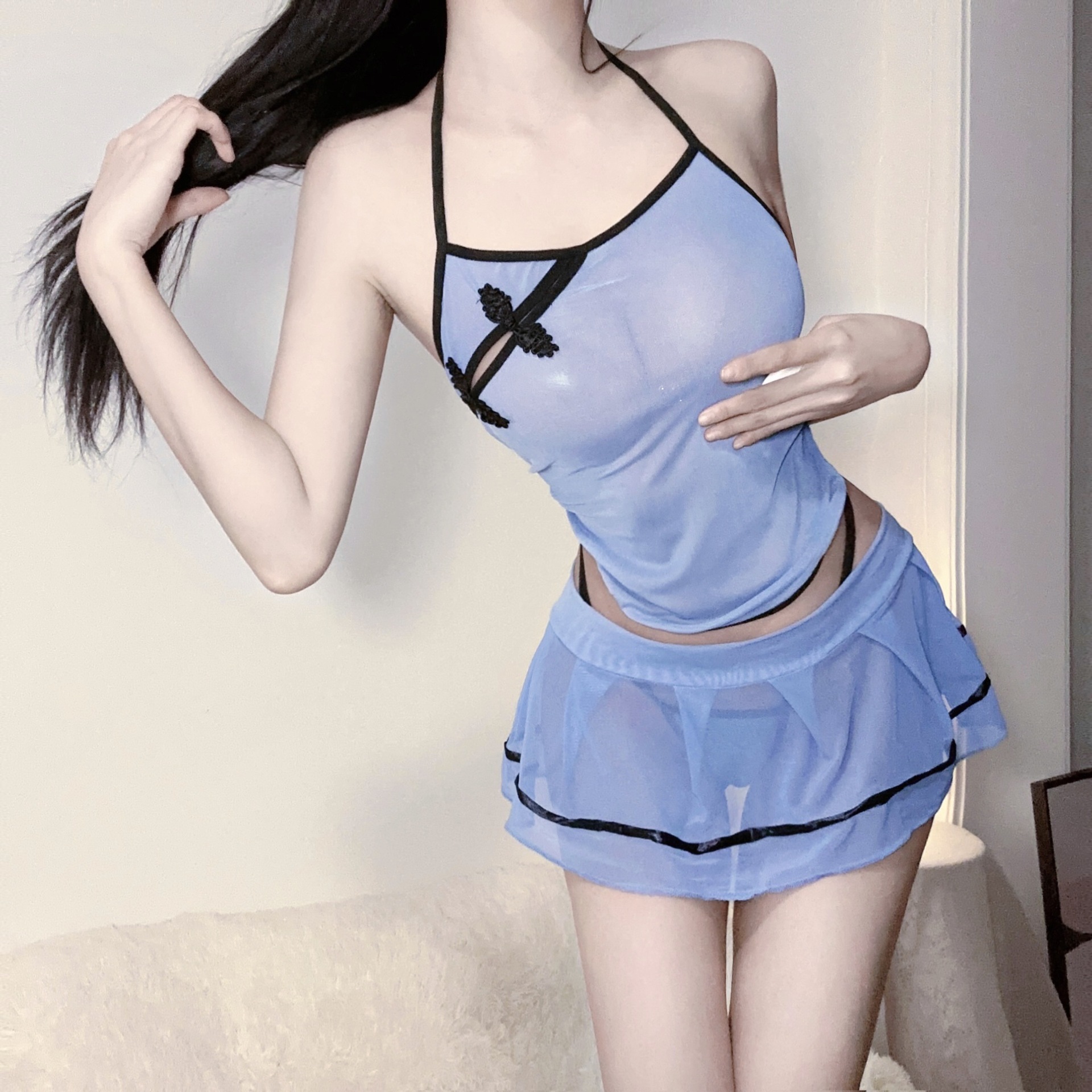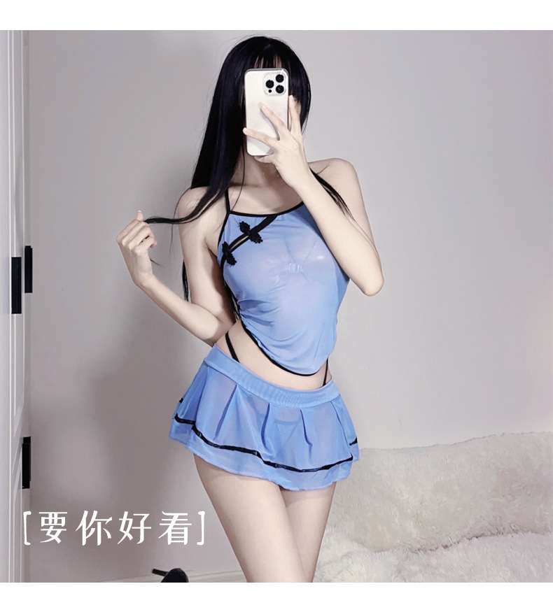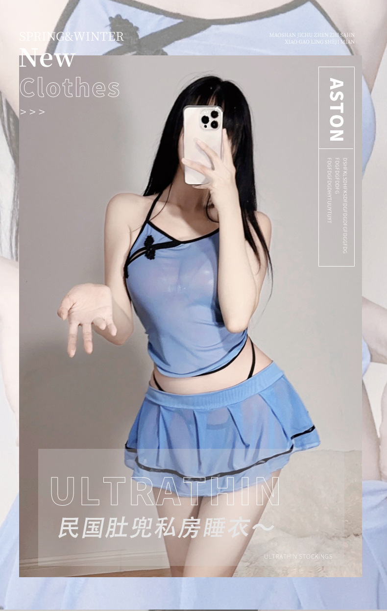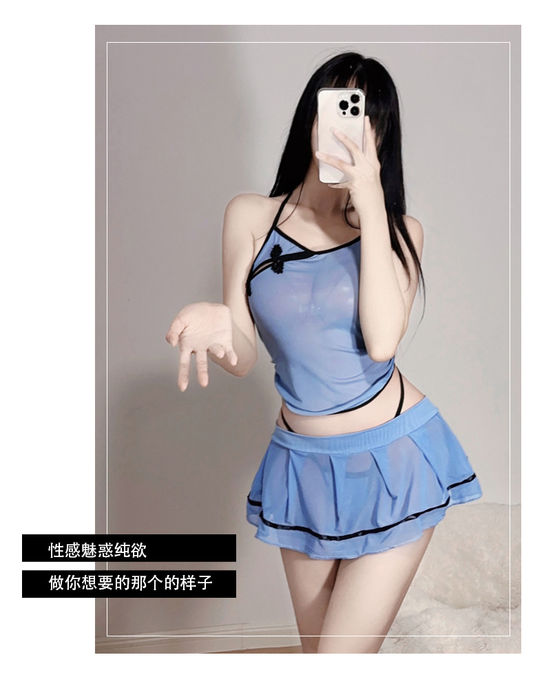 새로운 스타일 섹시 속옷 중국 공화국 치파오 미니 스커트 유니폼 여성의 섹시 속옷 시스루 원피스 Nightdress