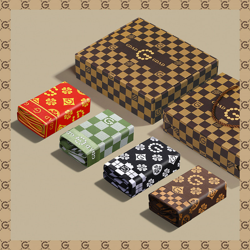 • G1190 [파이브 플라워 블랙 + 체스 블랙 + 파이브 플라워 다크 브라운 + 체스 다크 브라운] 선물상자 4 개