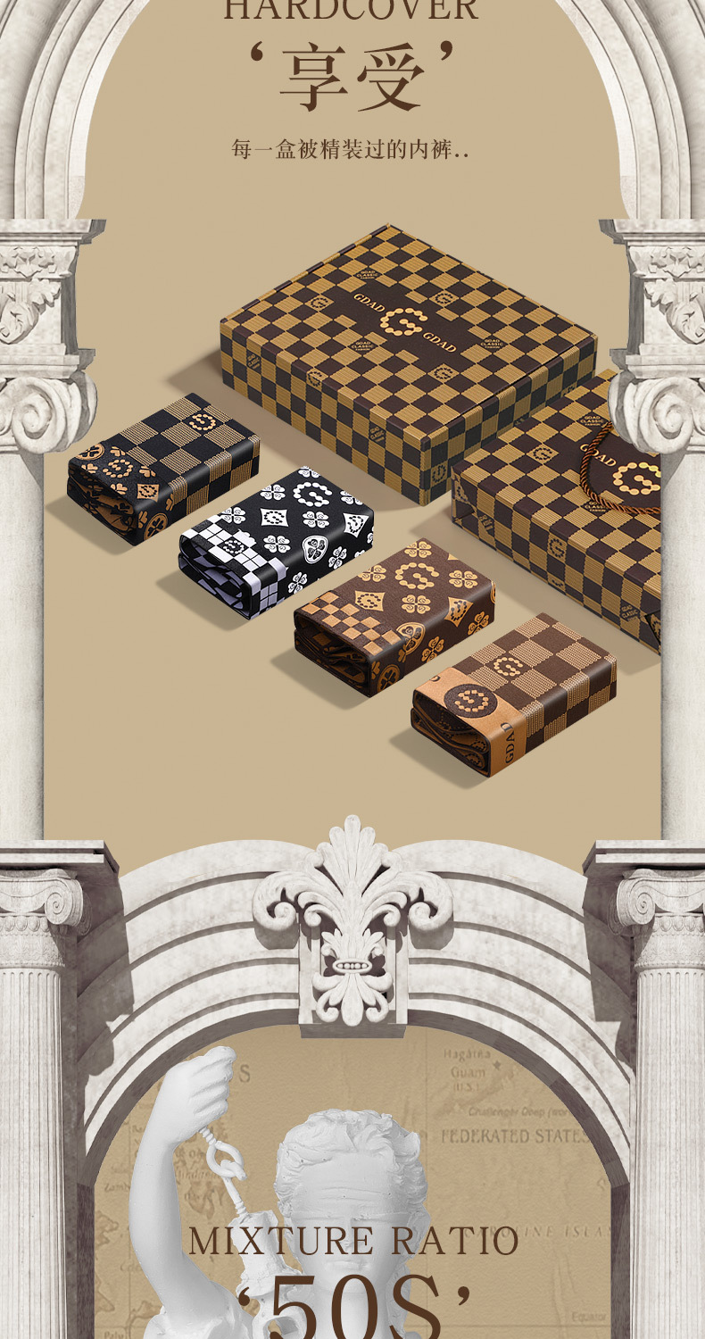 2023 새로운 스타일 복고풍 럭셔리 순면 복서 인쇄 반바지 남성 속옷 유행 고급 선물 상자