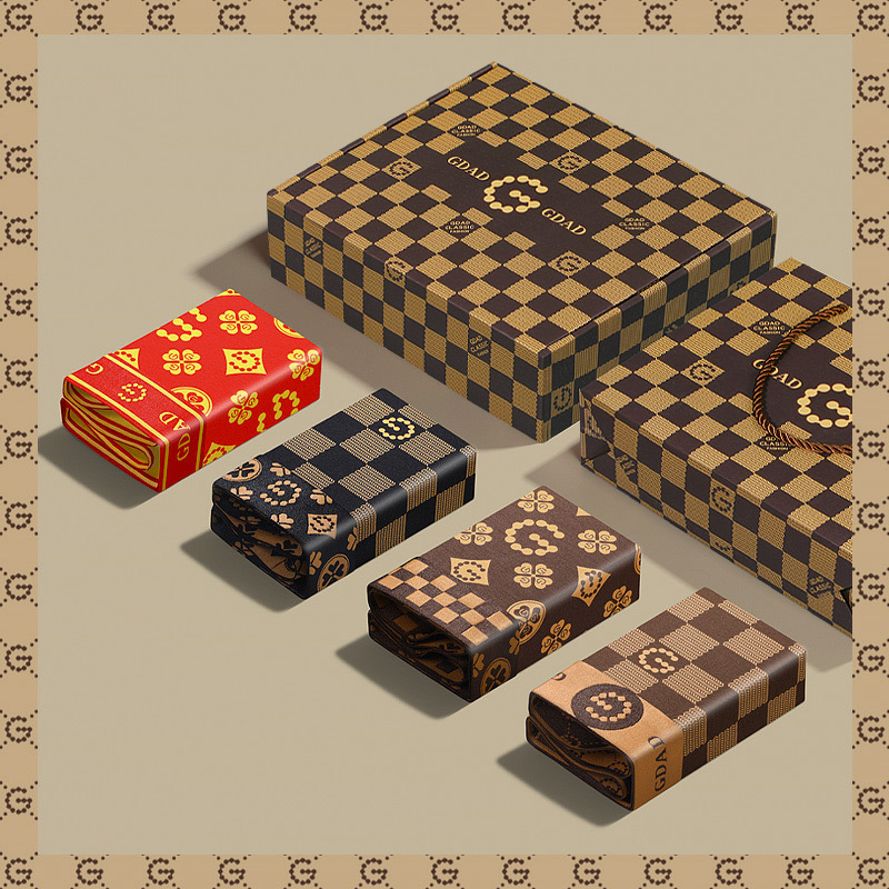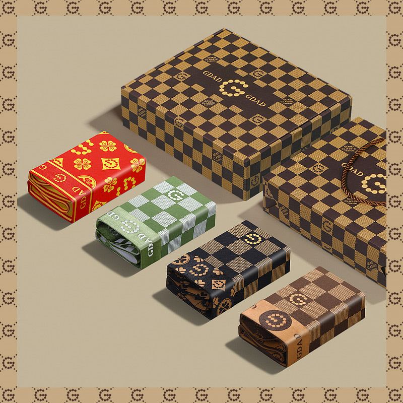 • G1190 [파이브 플라워 레드 + 체스 블랙 + 파이브 플라워 다크 브라운 + 체스 다크 브라운] 선물상자 4 개