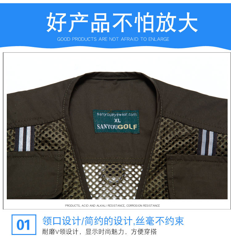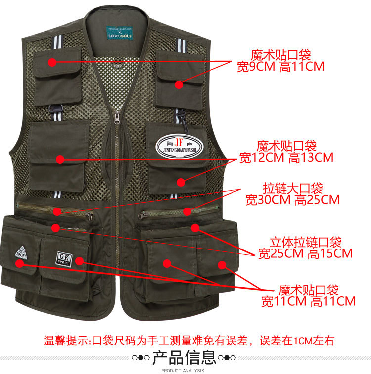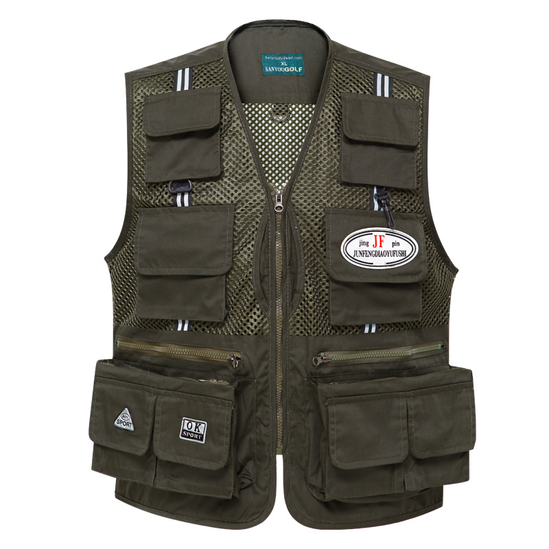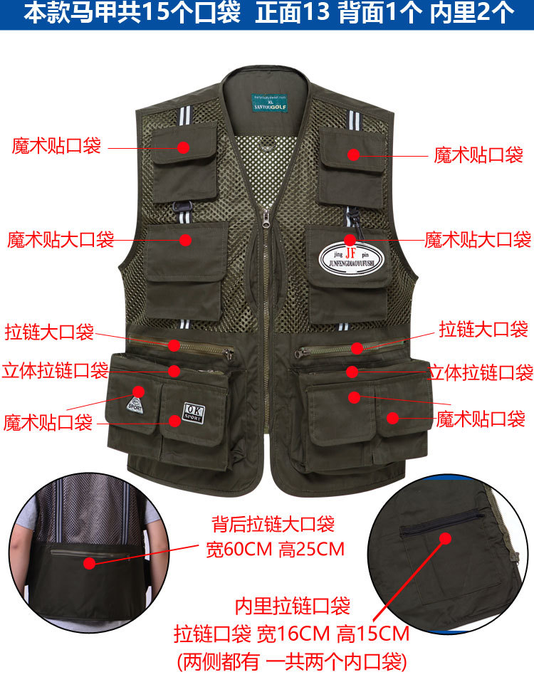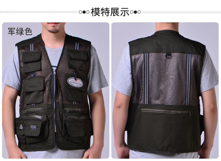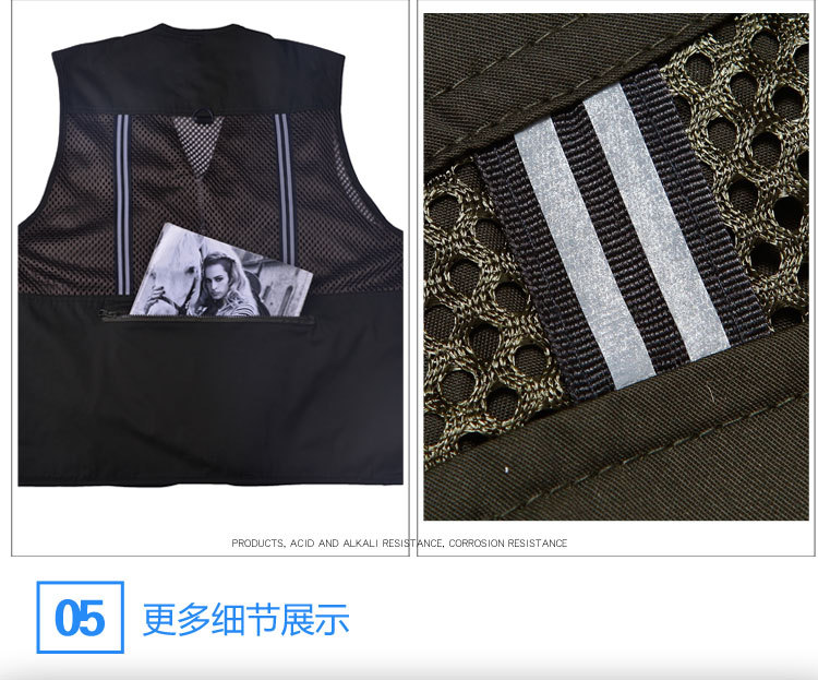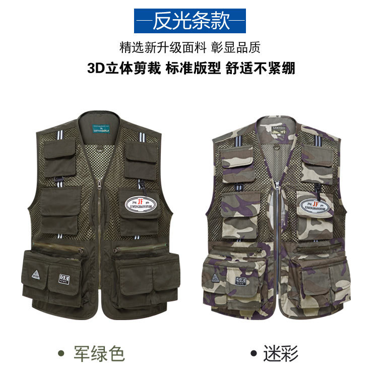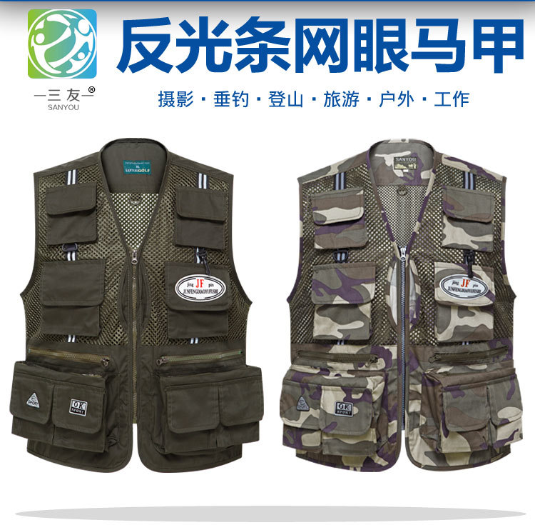 도매 메쉬 조끼 남자의 멀티 포켓 통기성 얇은 반사 스트립 조끼 낚시 사진 등산 플러스 사이즈 양복 조끼