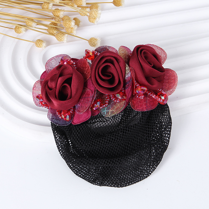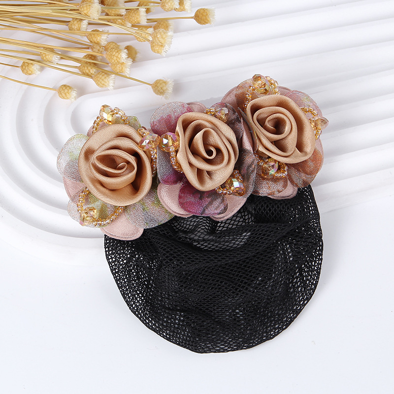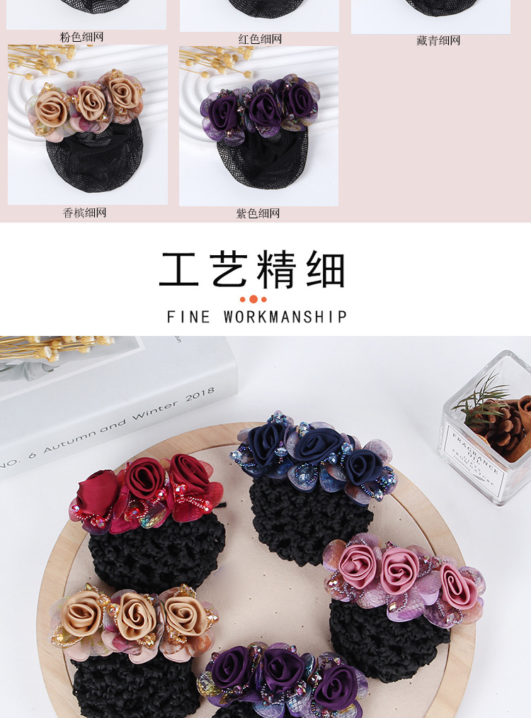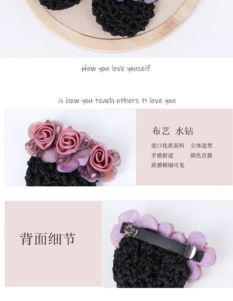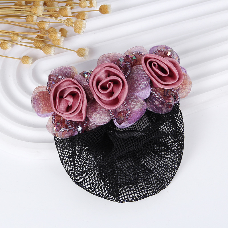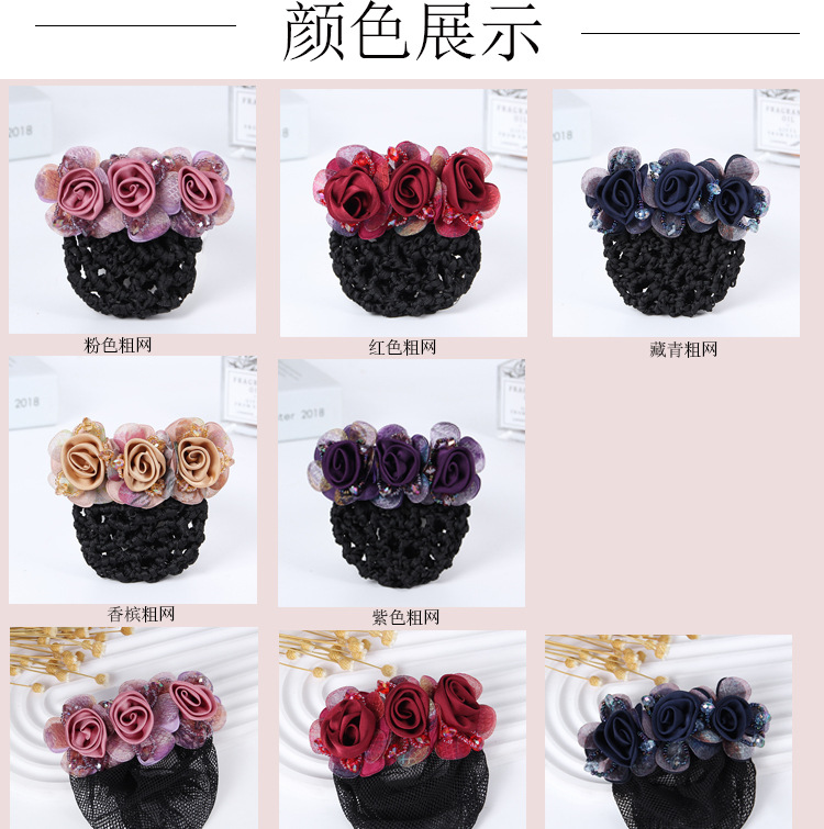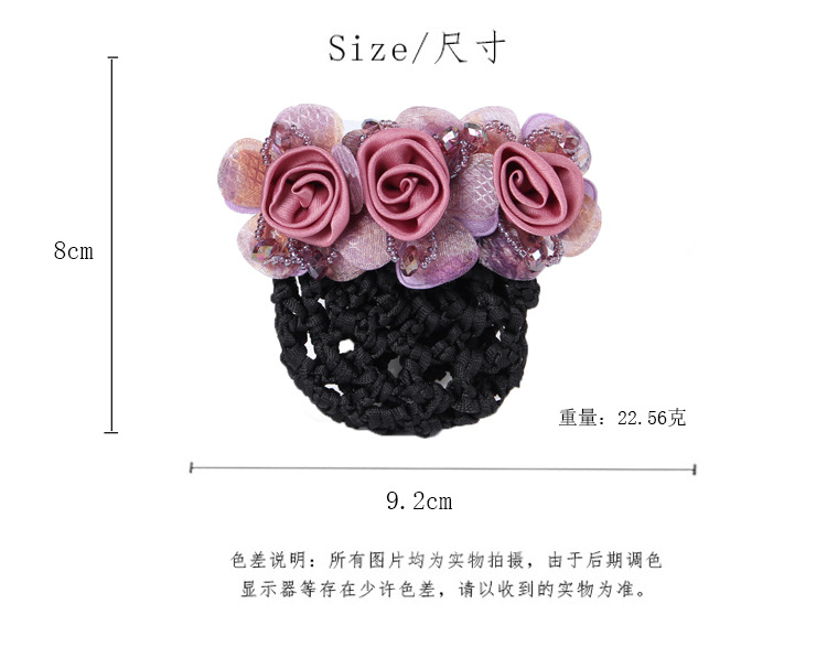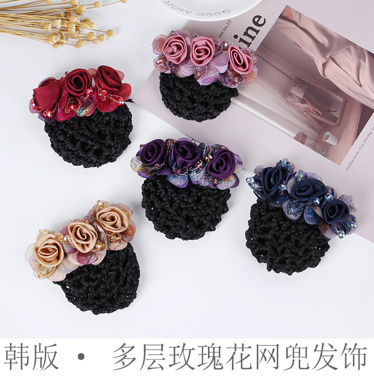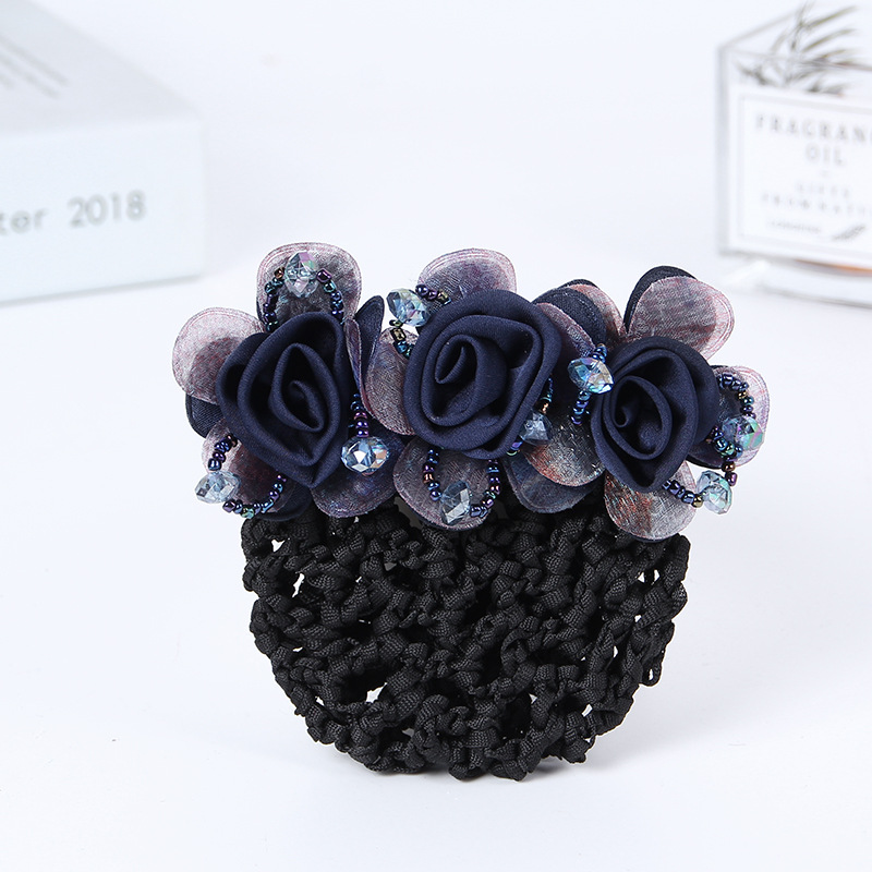 TikTok 같은 스타일 패브릭 한국 스타일 일본과 한국 스타일 실크 원사 간단한 꽃 그물 포켓 헤드 꽃 탑 클립 헤어 액세서리 하이 엔드 헤어 클립 엄마