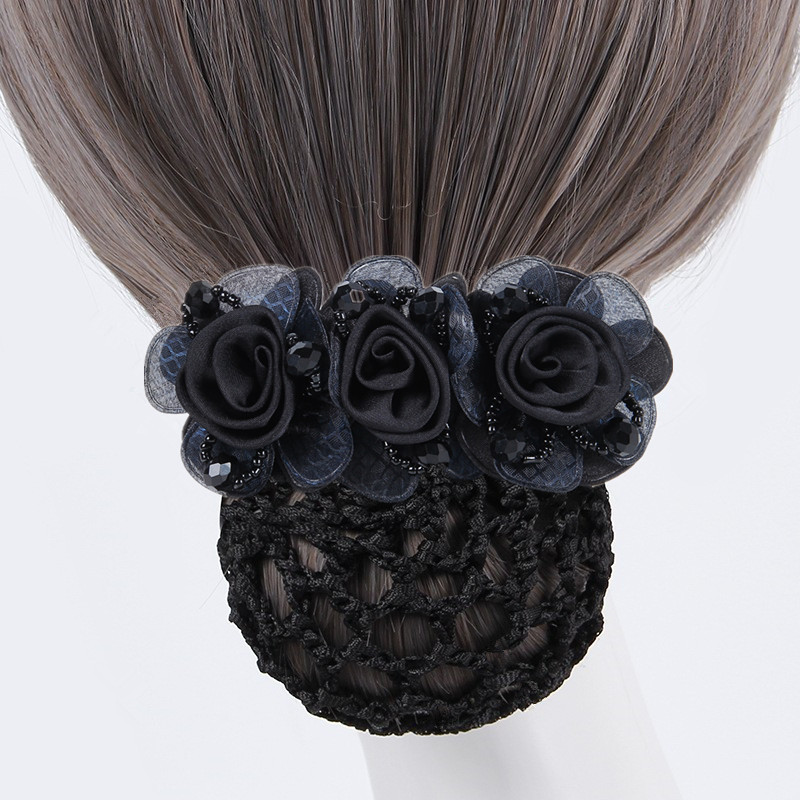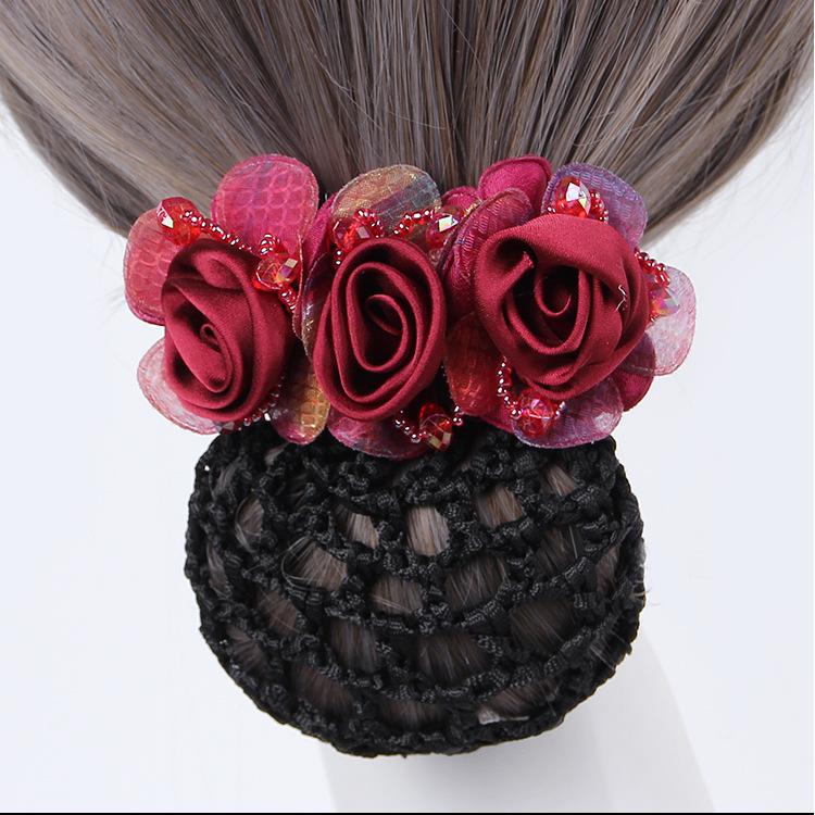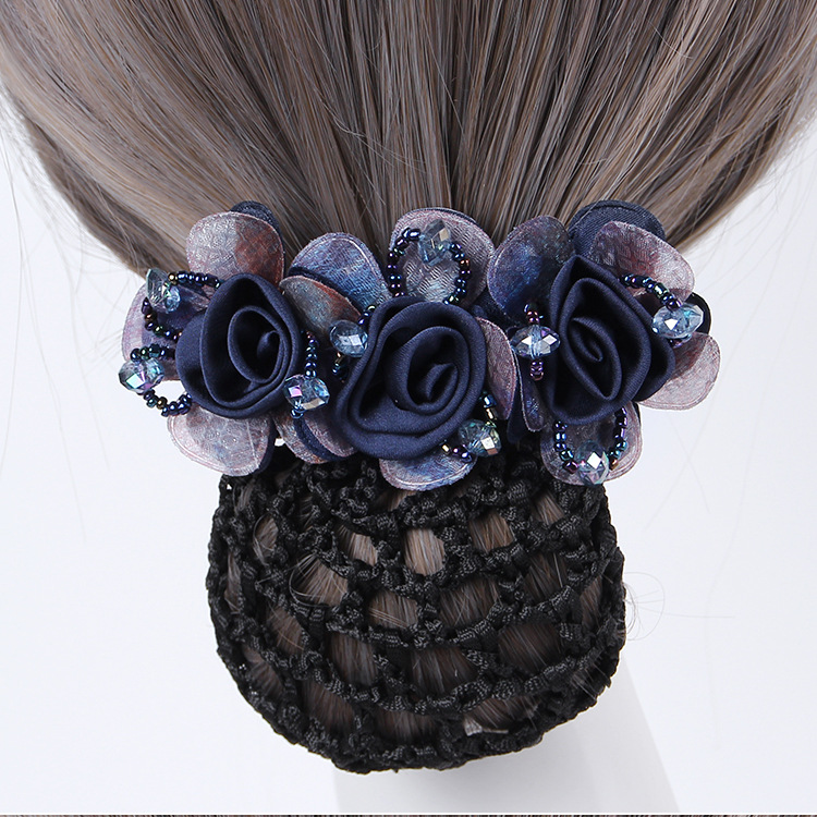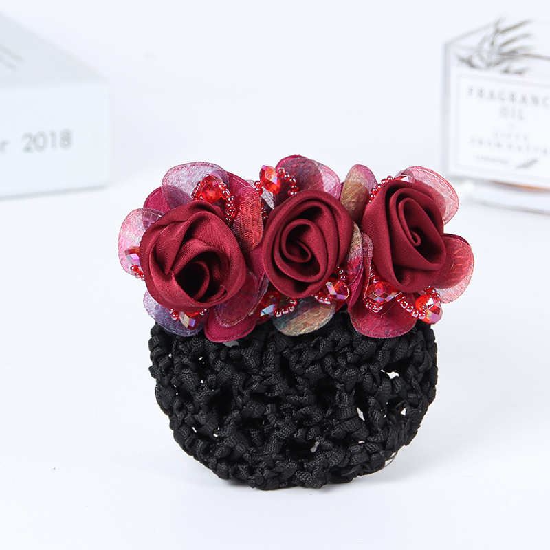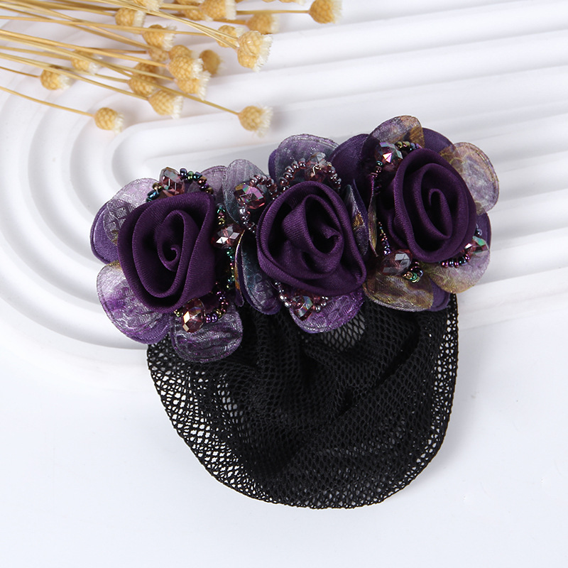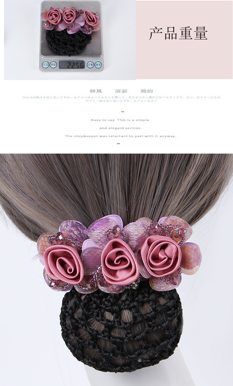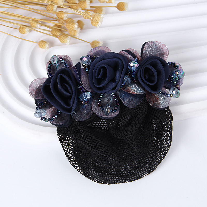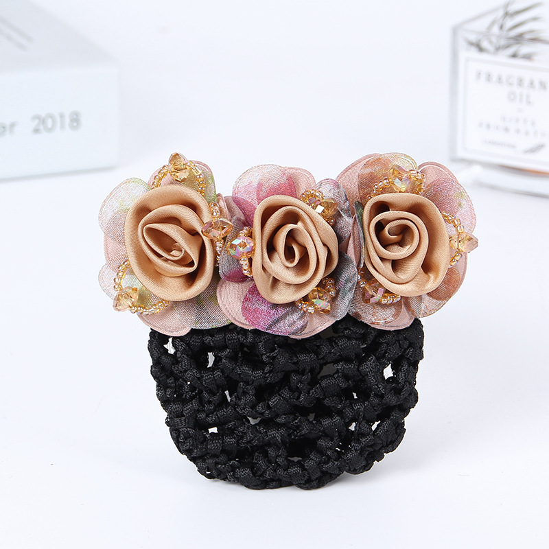 TikTok 같은 스타일 패브릭 한국 스타일 일본과 한국 스타일 실크 원사 간단한 꽃 그물 포켓 헤드 꽃 탑 클립 헤어 액세서리 하이 엔드 헤어 클립 엄마