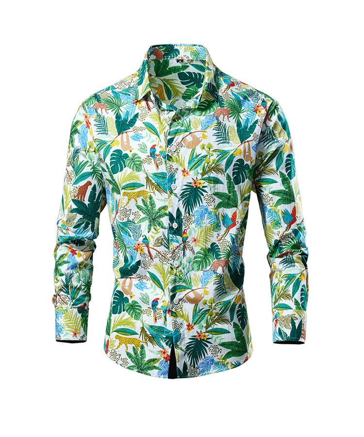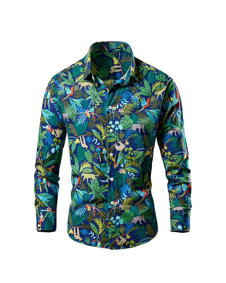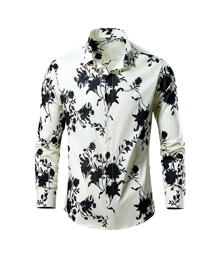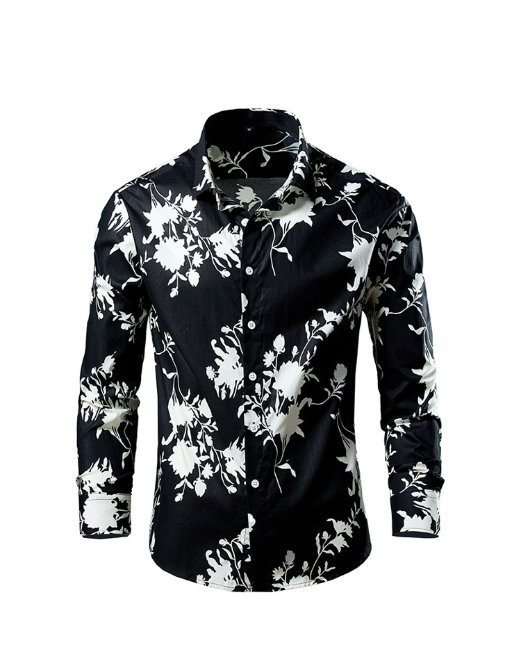 남자의 긴 소매 꽃 셔츠 봄과 가을 새로운 캐주얼 패션 슬림 셔츠 대외 무역 플러스 사이즈 남자의 꽃 셔츠