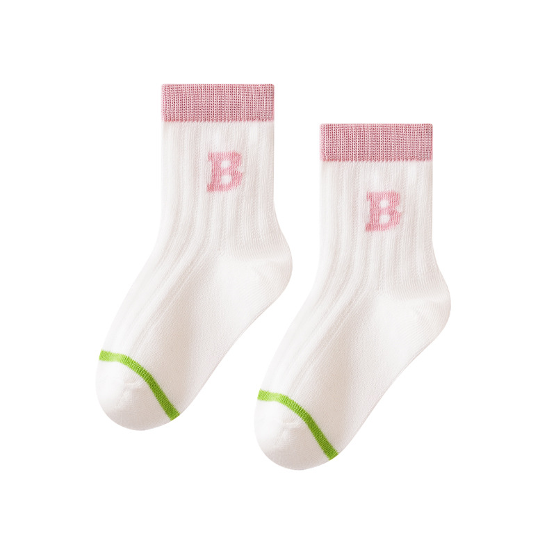 어린이 양말 2023 여름 새로운 초박형 메쉬 트렌드 소년과 소녀 튜브 양말을위한 학교 스타일 줄무늬 편지스토어 가기