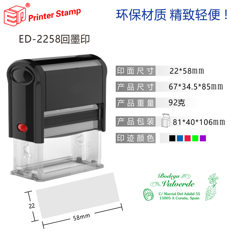 • ED-2258 인쇄 표면 사양: 22*58mm