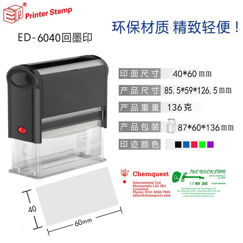 • ED-4060 인쇄 표면 사양: 40*60mm