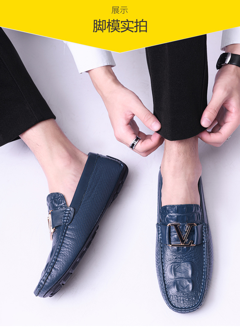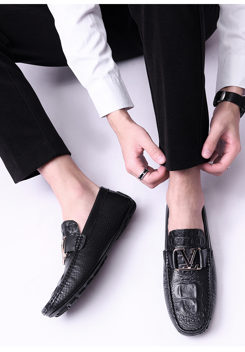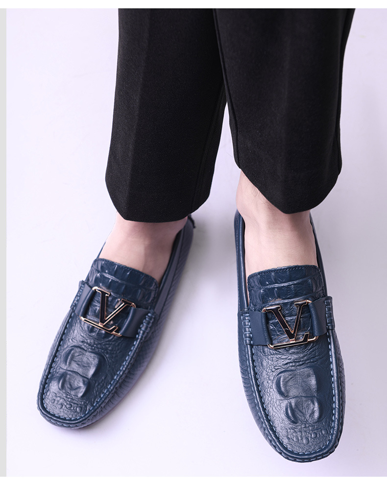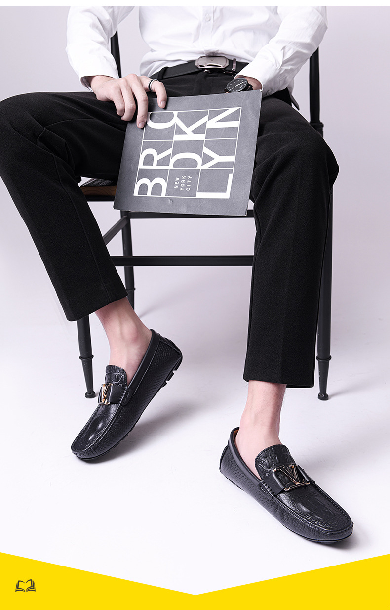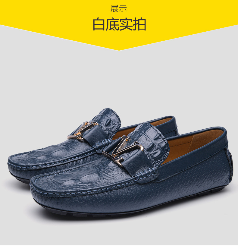 새로운 4647 야드 크로스 보더 플러스 사이즈 라이브 소가죽 악어 콩 신발 가죽 페달 운전 캐주얼 가죽 신발 남성