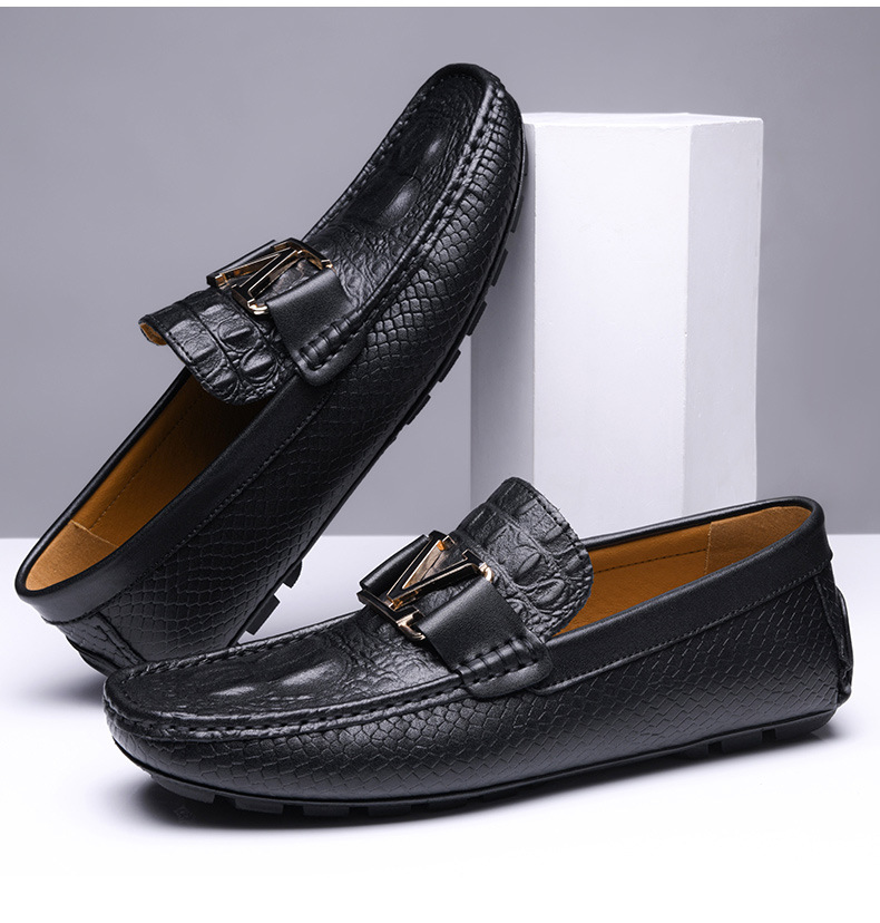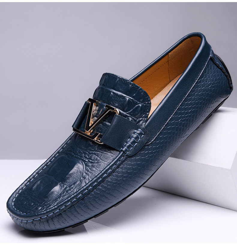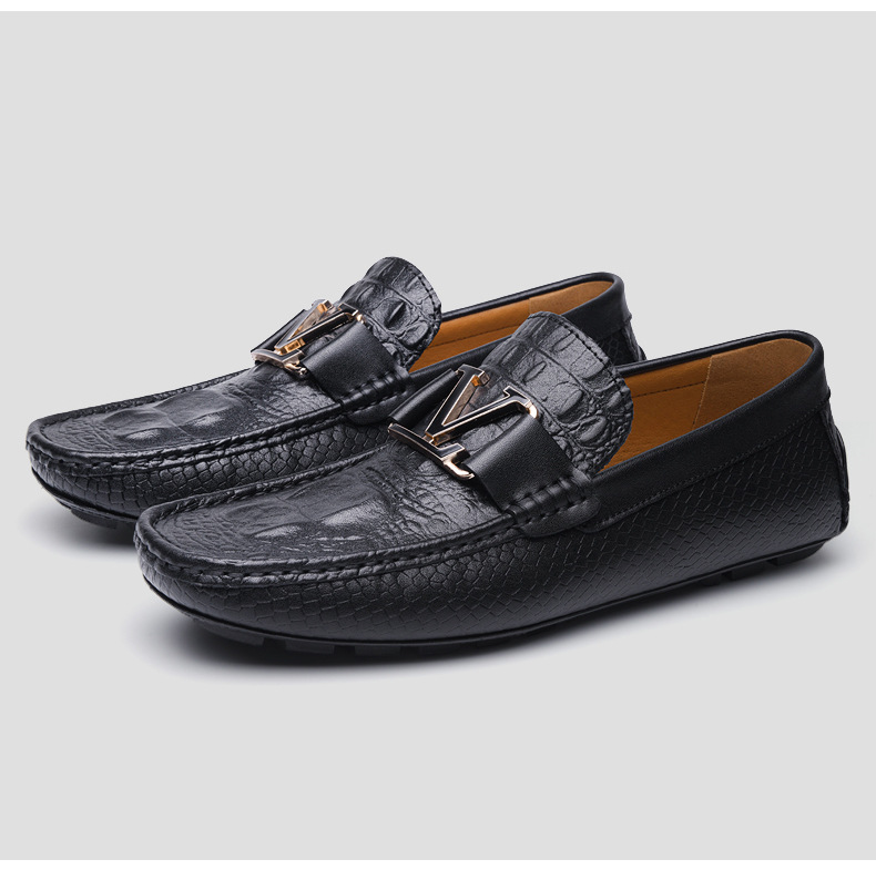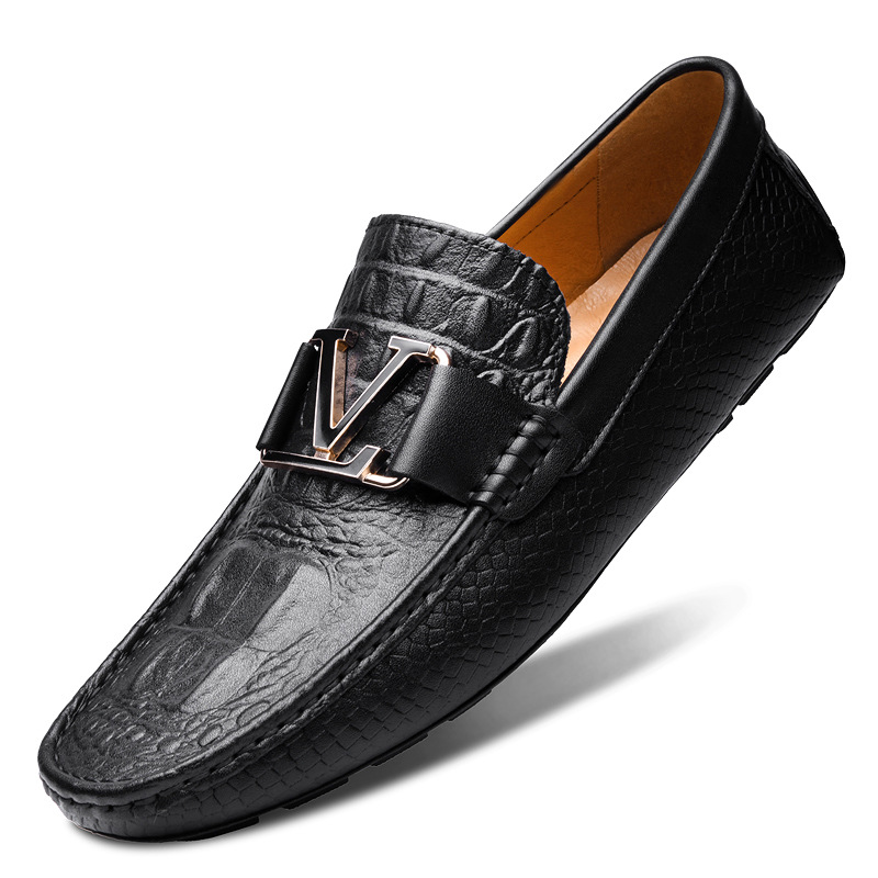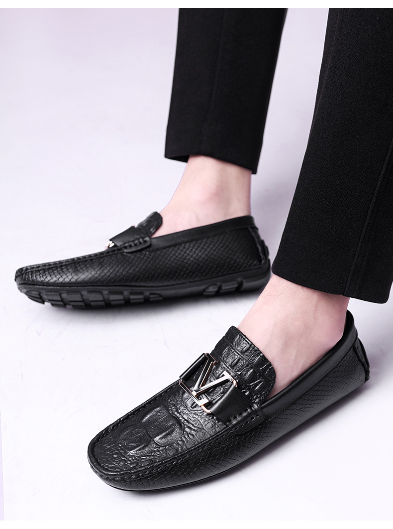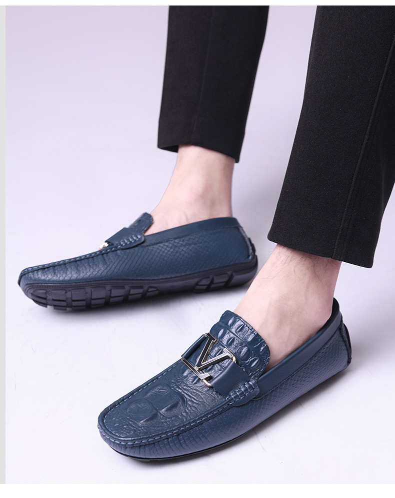 새로운 4647 야드 크로스 보더 플러스 사이즈 라이브 소가죽 악어 콩 신발 가죽 페달 운전 캐주얼 가죽 신발 남성