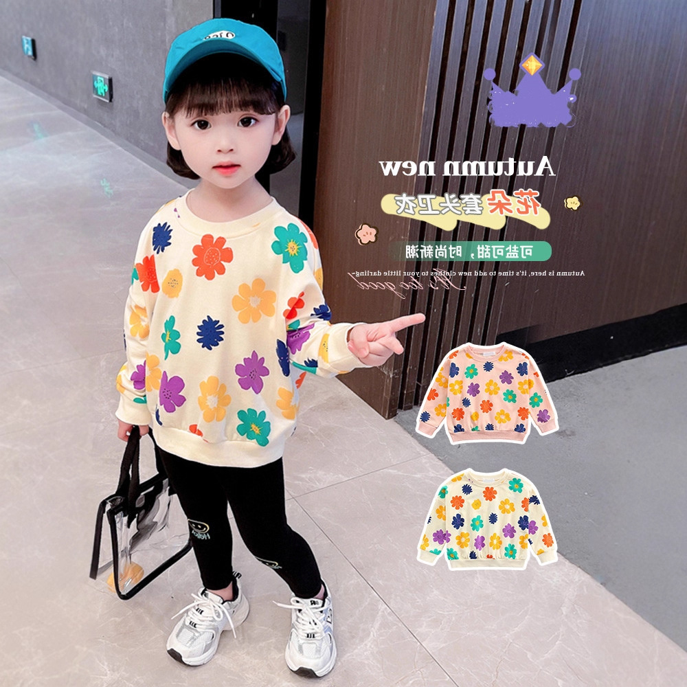 여아용 긴팔 티셔츠 해바라기 야외 활동복 봄 가을 신상품 수출용 아동복스토어 가기