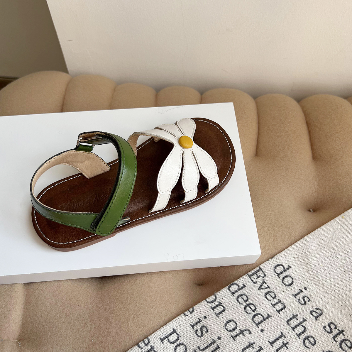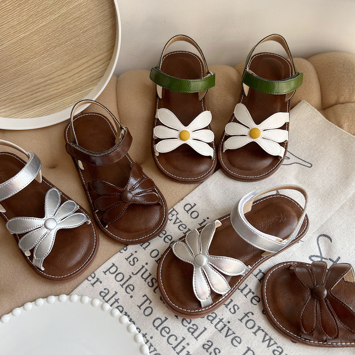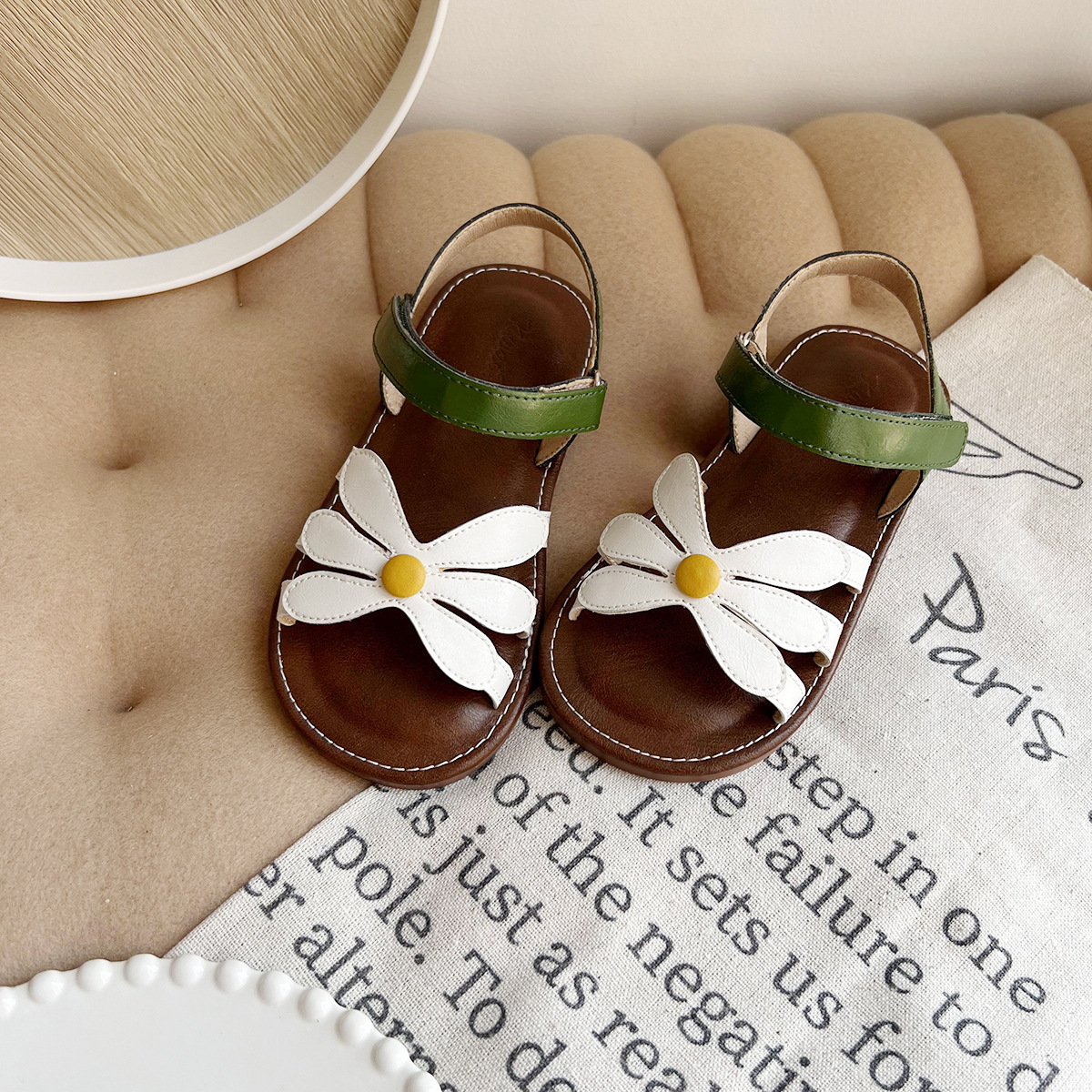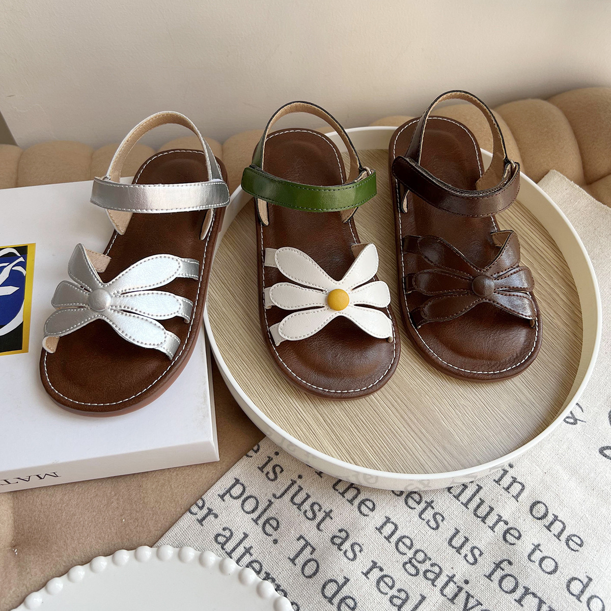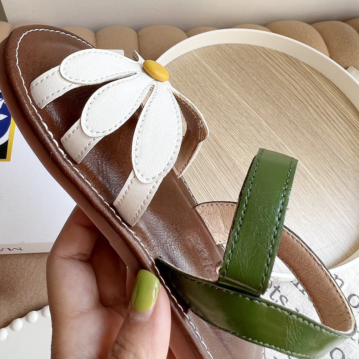 여성용 한국식 샌들 플라워 콘트라스트 오픈 토 소프트 솔 편안한 소녀의 미끄럼 방지 로마 짠 스트랩 공주 트렌디 신발스토어 가기