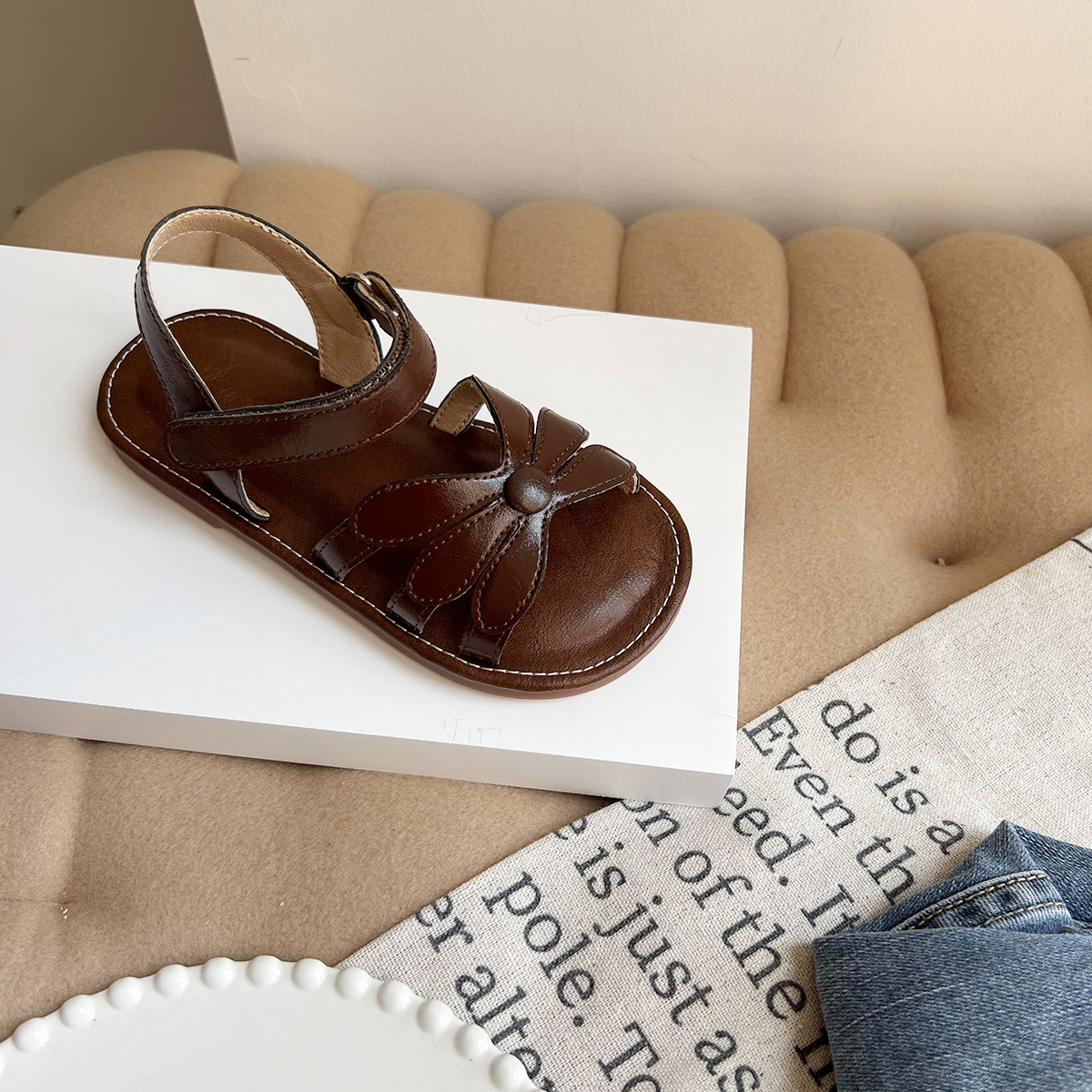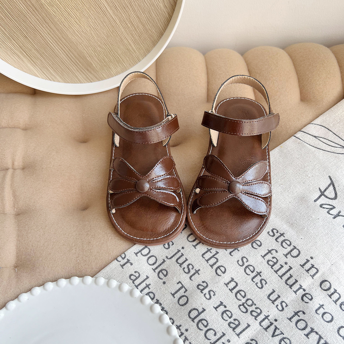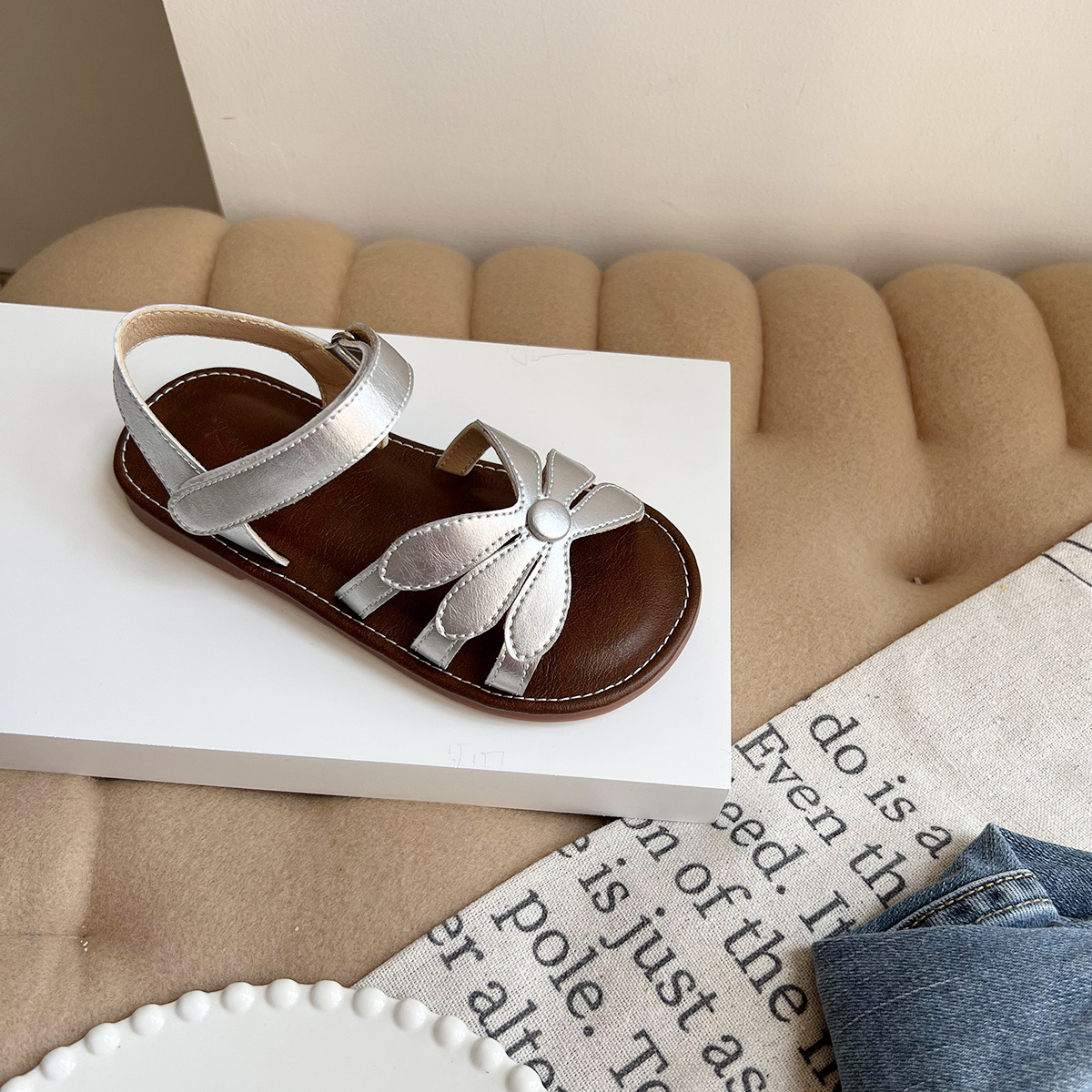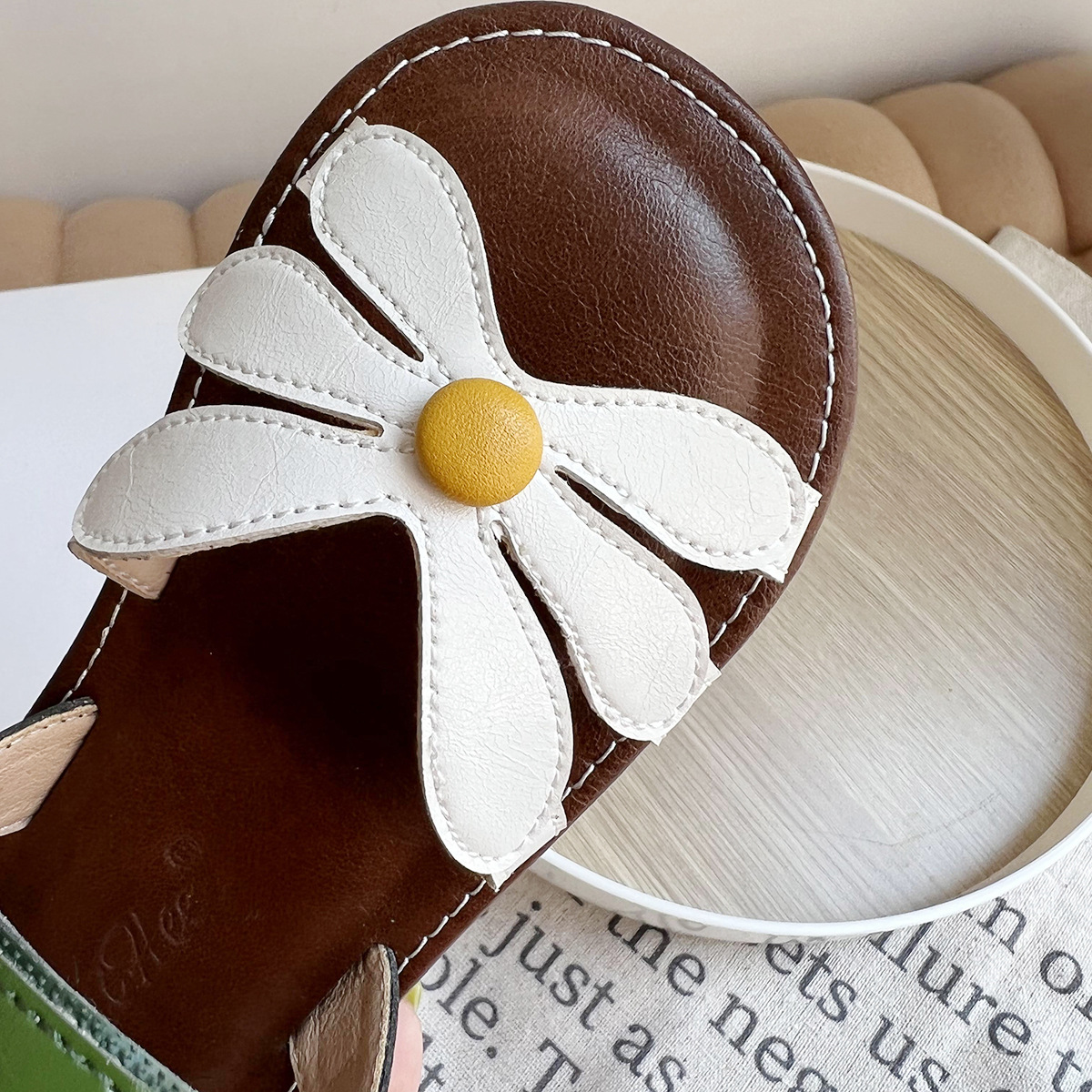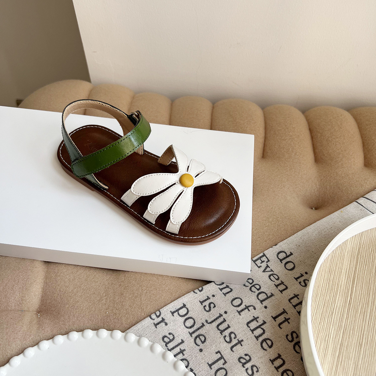 여성용 한국식 샌들 플라워 콘트라스트 오픈 토 소프트 솔 편안한 소녀의 미끄럼 방지 로마 짠 스트랩 공주 트렌디 신발스토어 가기
