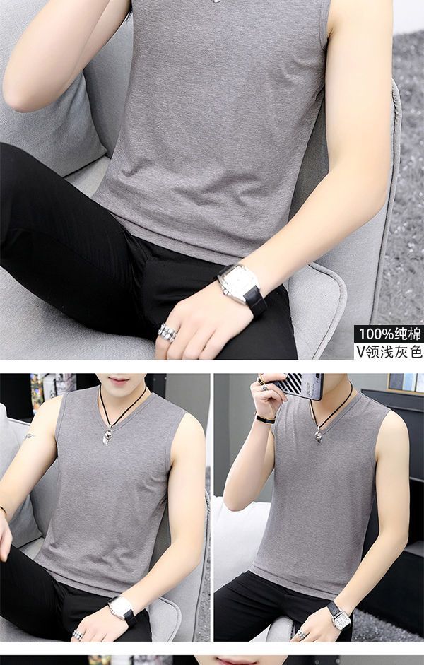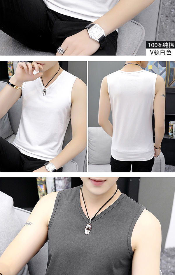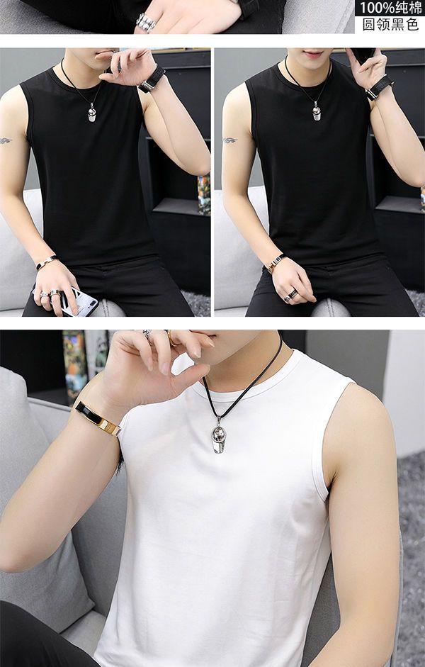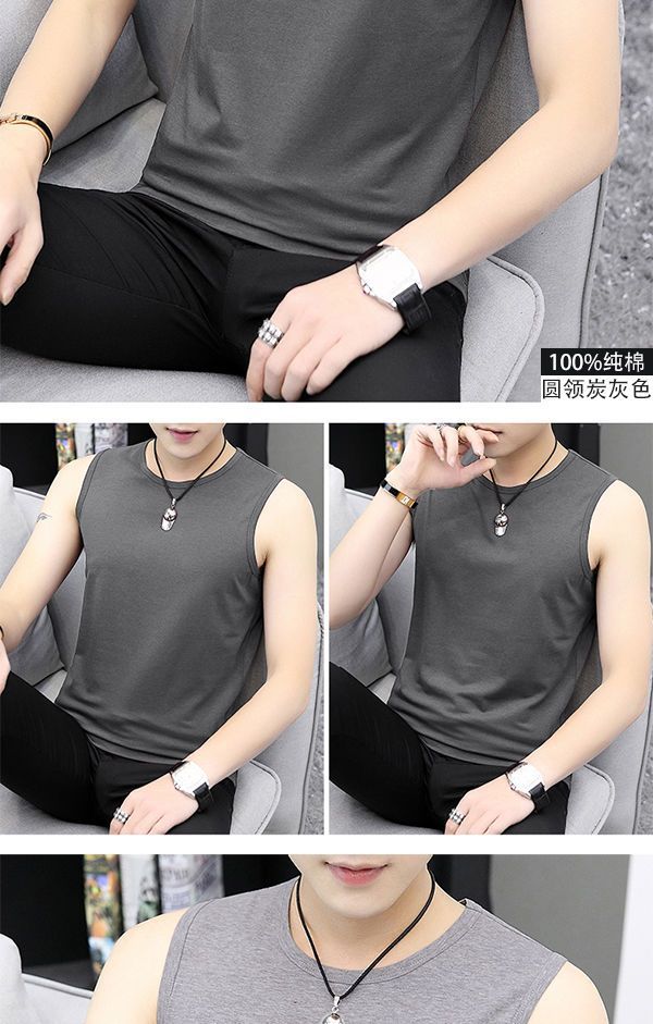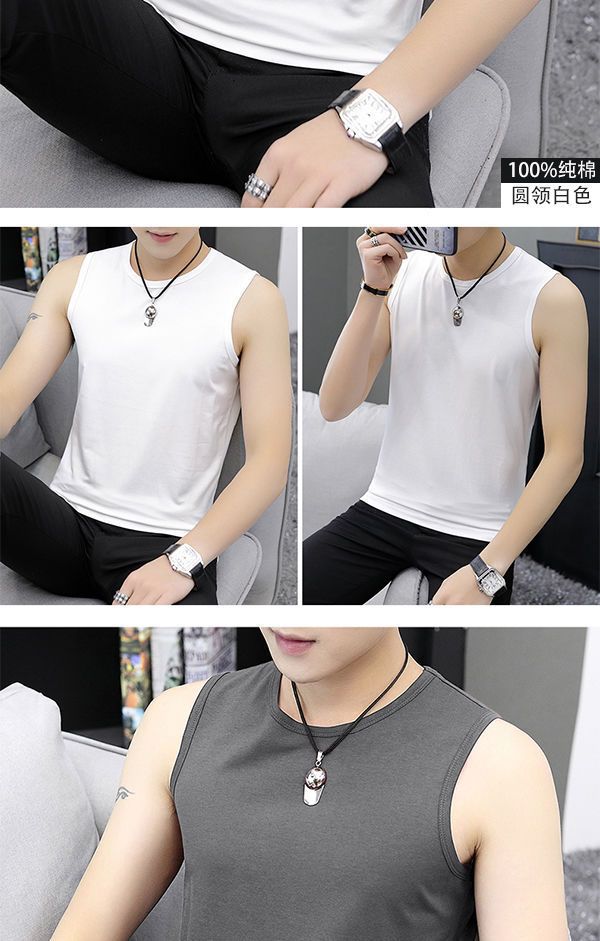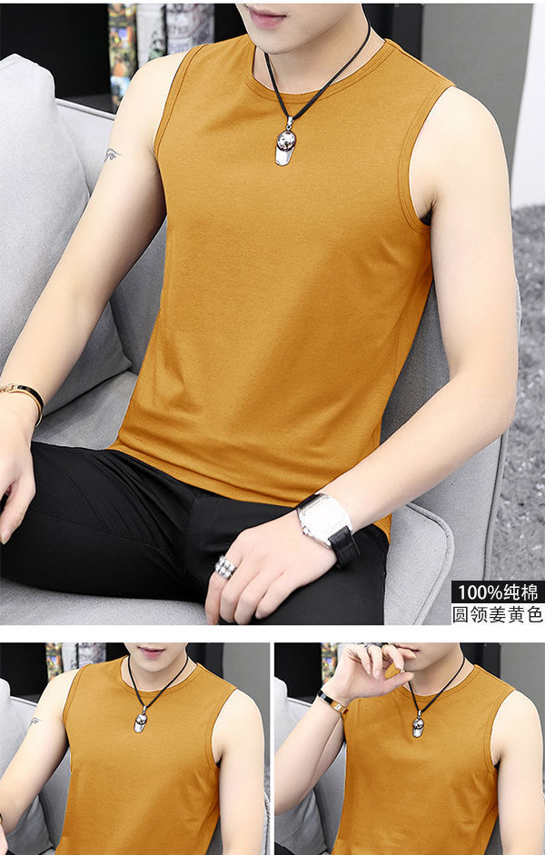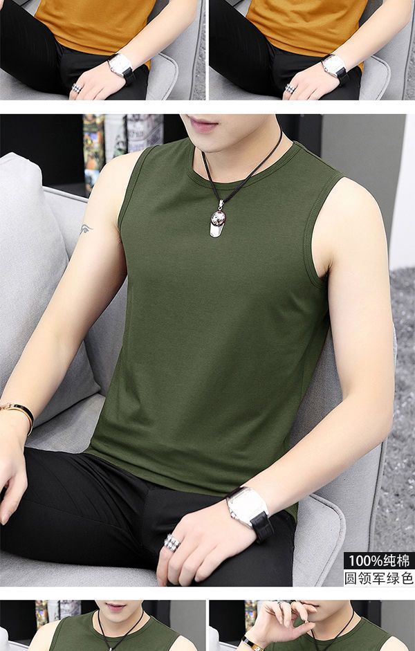 순면 민소매 조끼 조끼 조끼 남성용 봄과 여름 청소년 슬림핏 솔리드 컬러 모든 매치 베이스 셔츠 피트니스 스포츠 탑스토어 가기