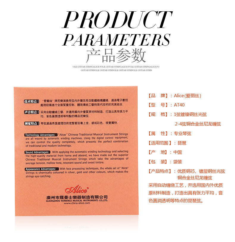 앨리스 AT40 스틸 와이어 와인딩 스트링 피파 스트링 느슨한 스트링 세트 스트링 1/2/3/4 느슨한 스트링 피파 악기 액세서리 스트링