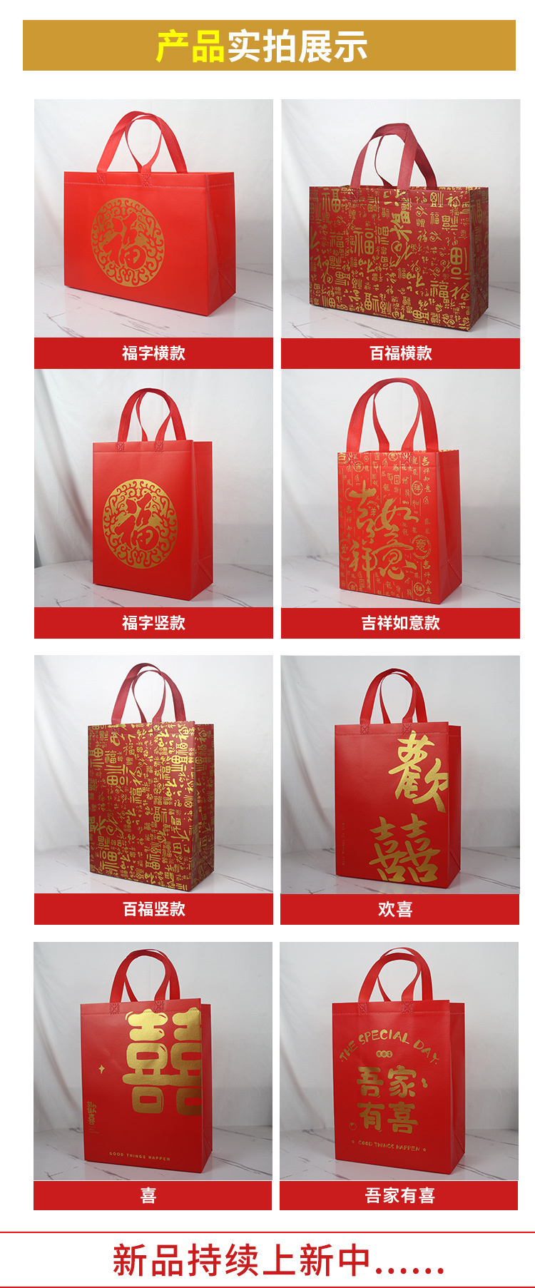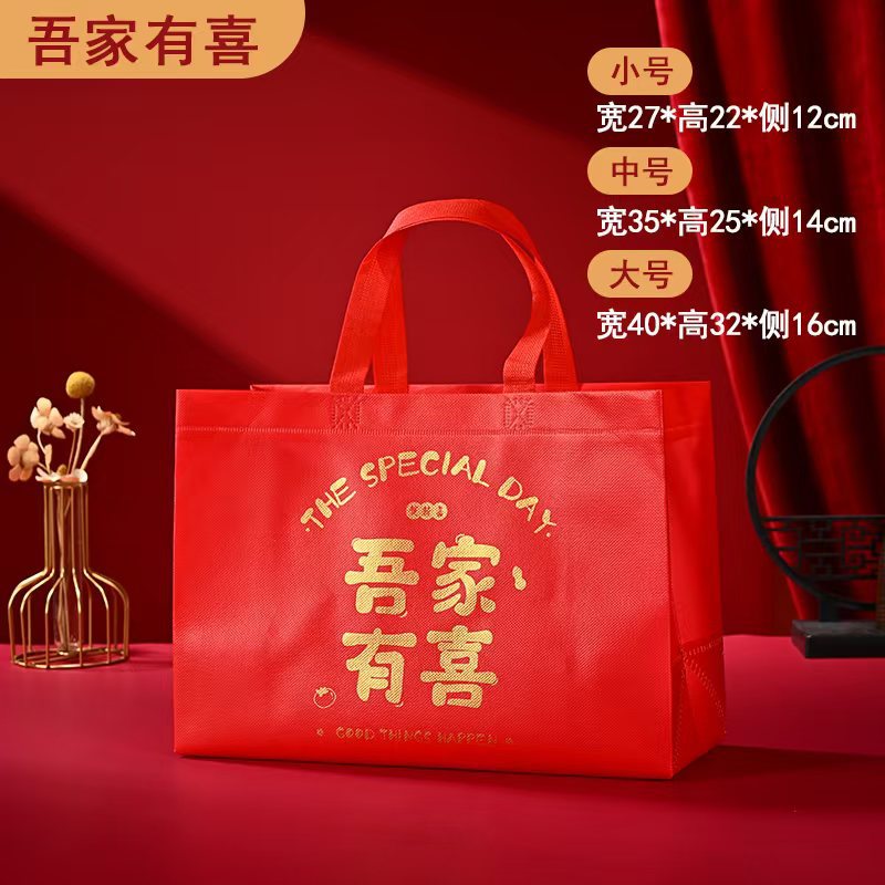 빨간 부직포 가방 웨딩 축제 동반 선물 핸드백 웨딩 알코올 및 담배 선물 가방 부직포 쇼핑백스토어 가기