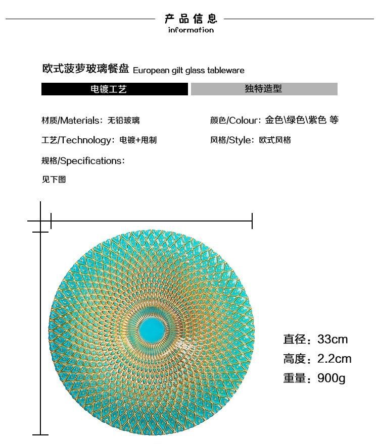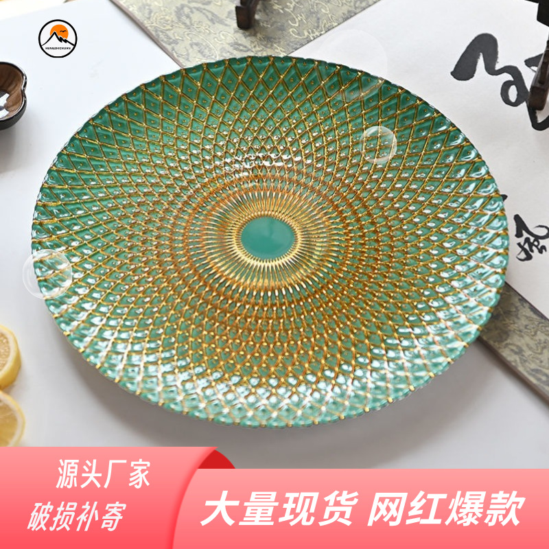 공작 녹색 유리 과일 높은 외관 가치 플레이트 거실 홈 샐러드 딤섬 플레이트 크리에이티브 하이 레벨 센스 플레이트