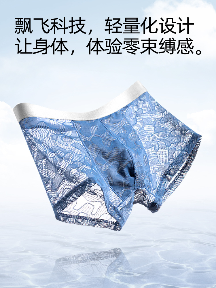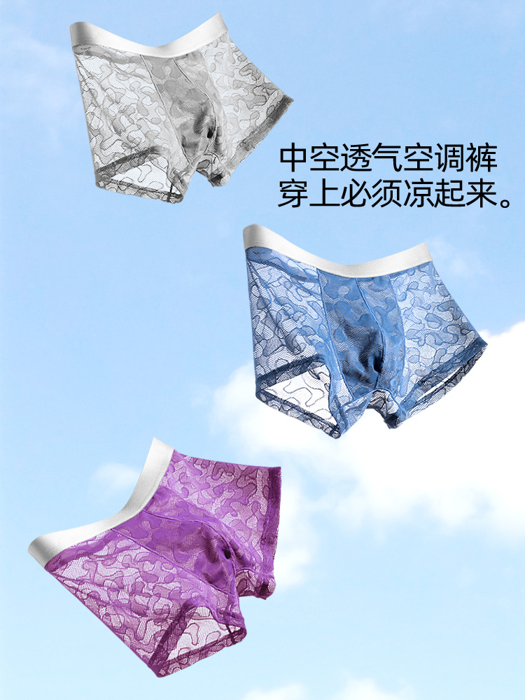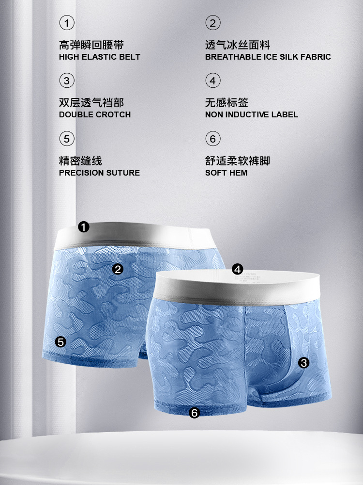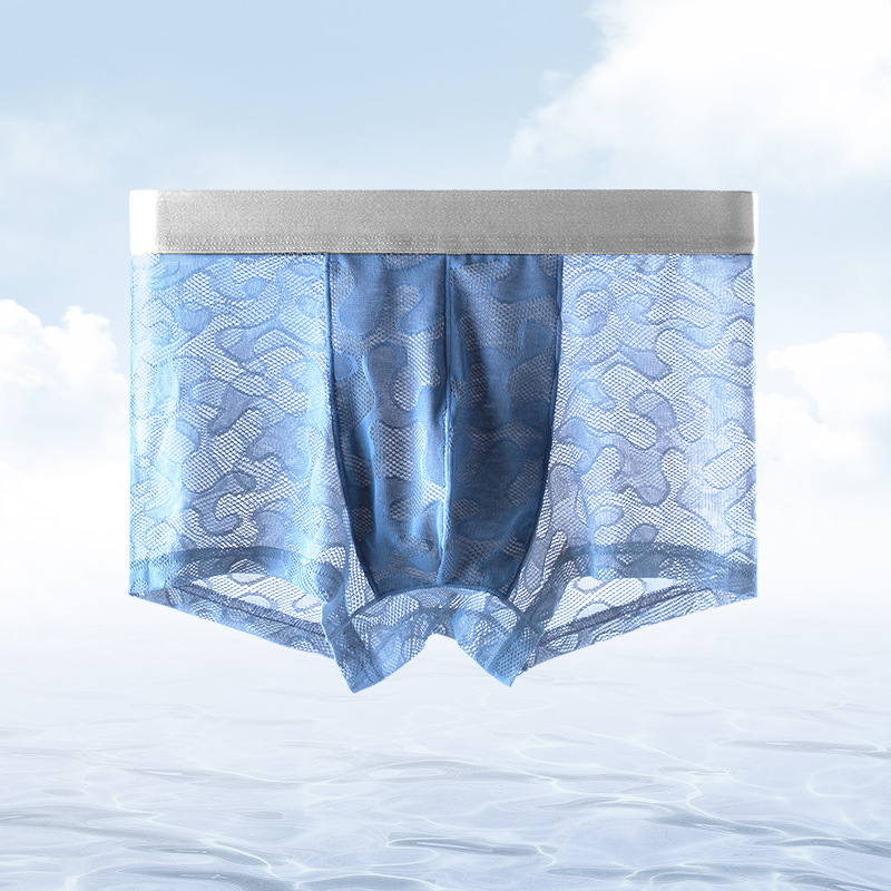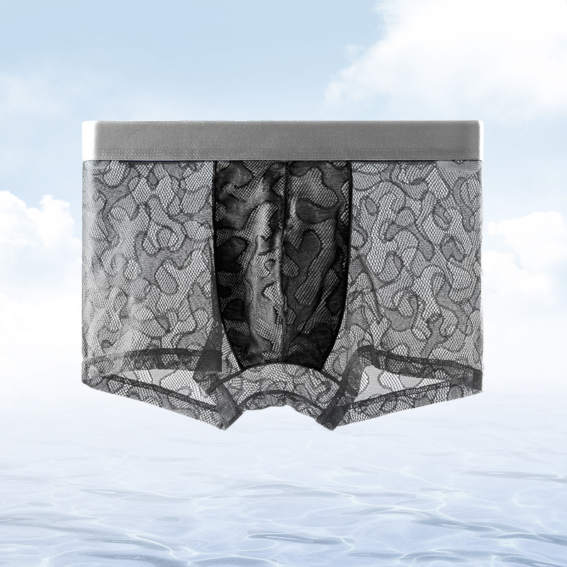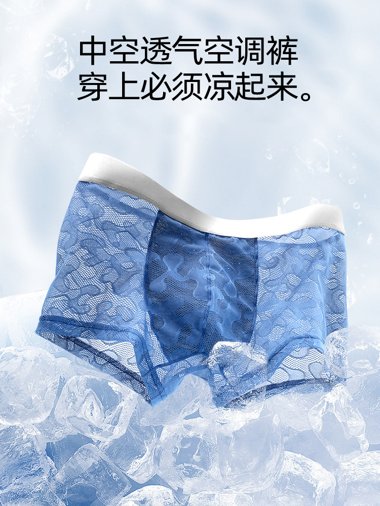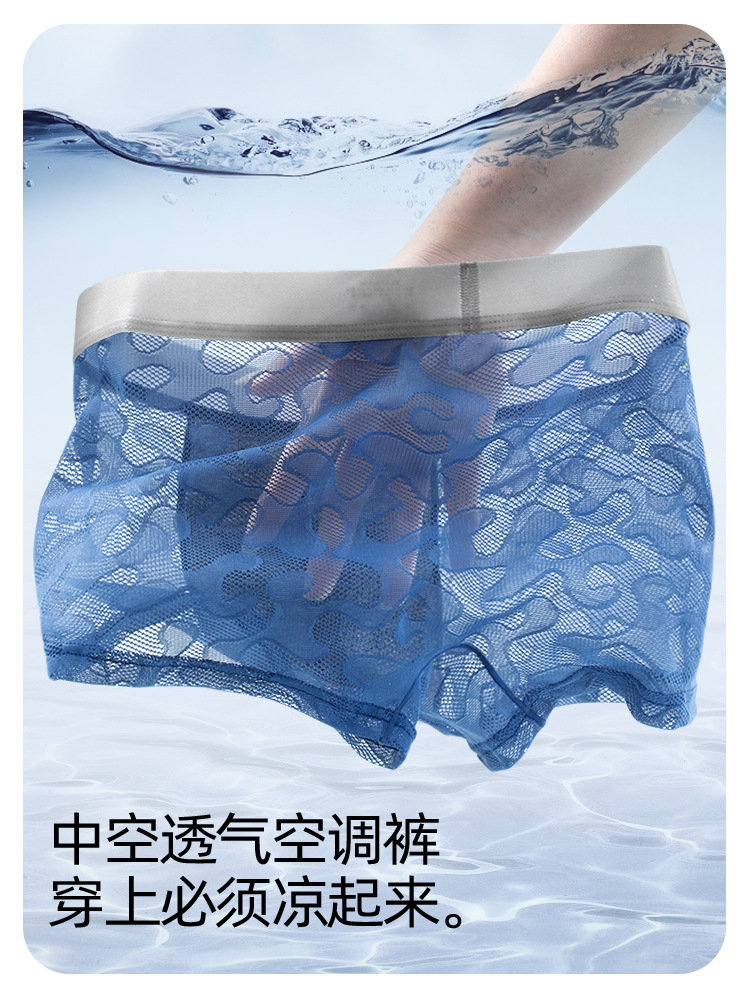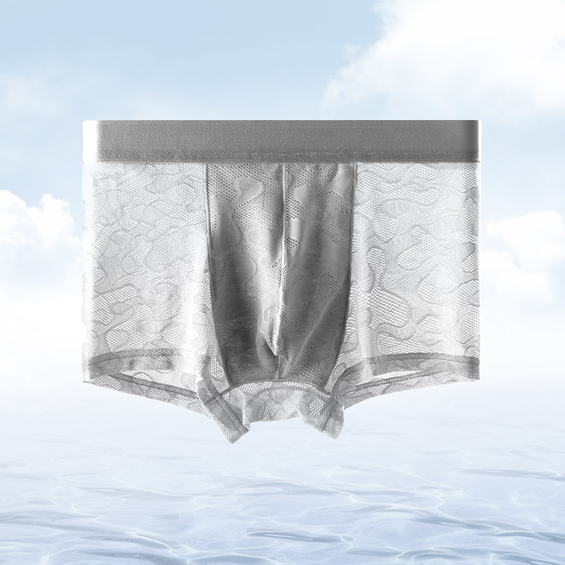 남자의 투명 알몸 속옷 여름 초박형 아이스 실크 통기성 복서 유행 개인화 된 소년 반바지 복서스토어 가기