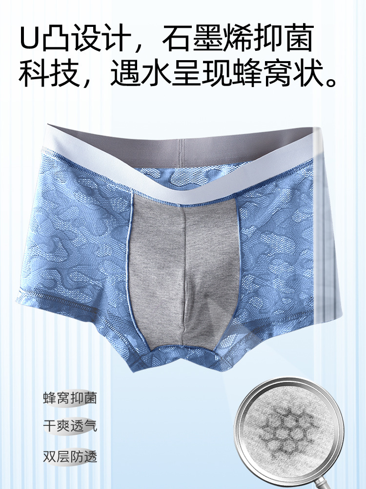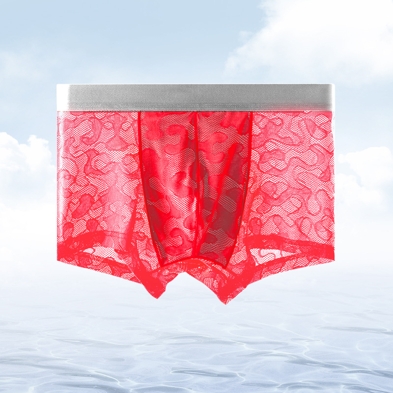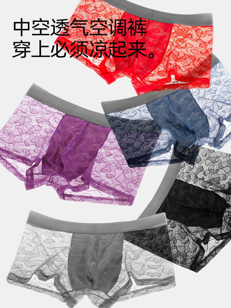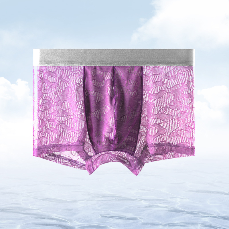 남자의 투명 알몸 속옷 여름 초박형 아이스 실크 통기성 복서 유행 개인화 된 소년 반바지 복서