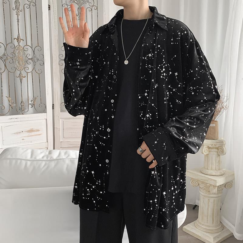 시니어 센스 셔츠 남성용 헤어 스타일리스트 봄과 가을 긴 소매 틈새 디자인 센스 남성용 탑 루즈한 오버사이즈 셔츠
