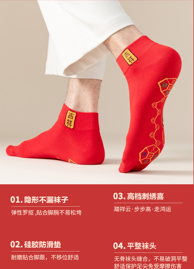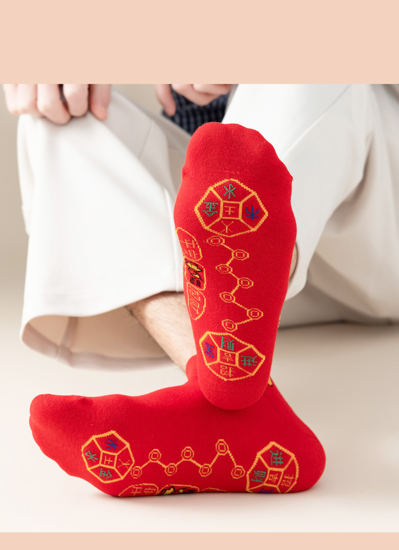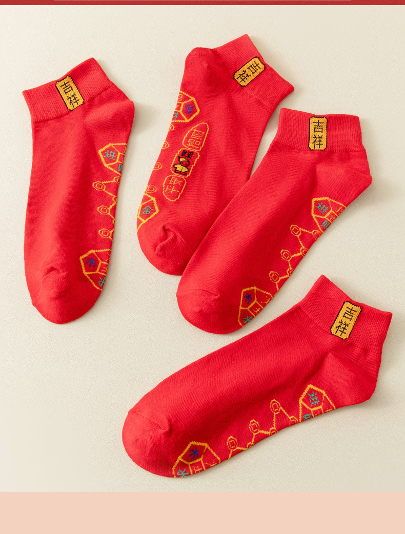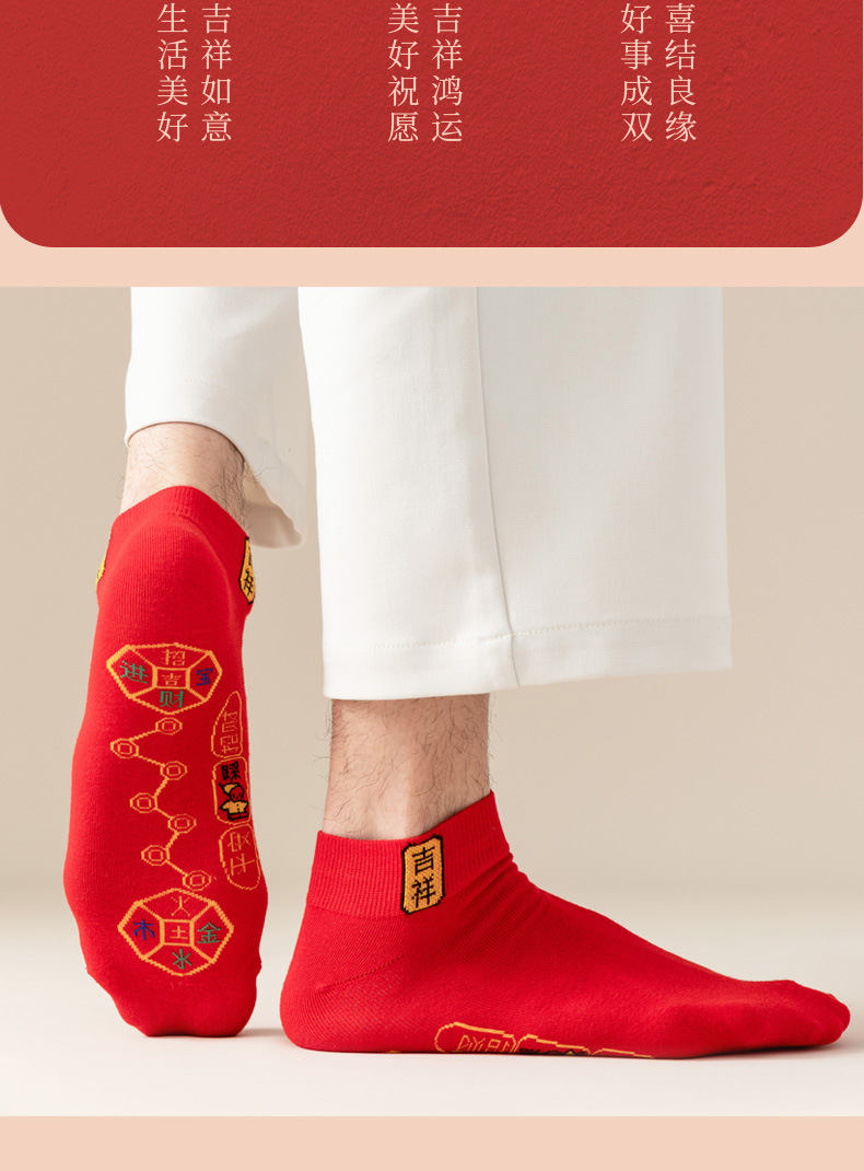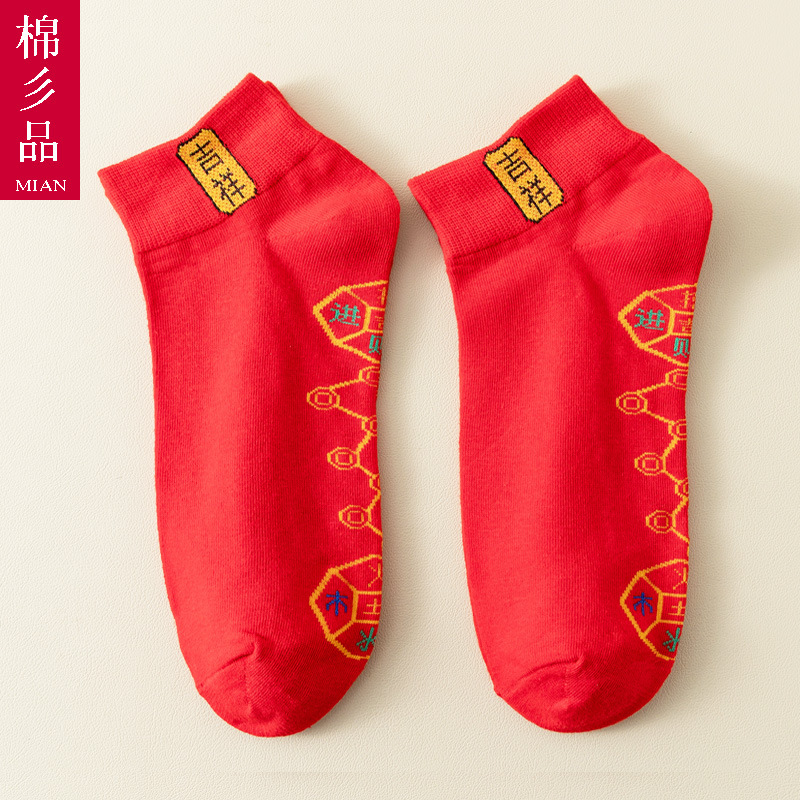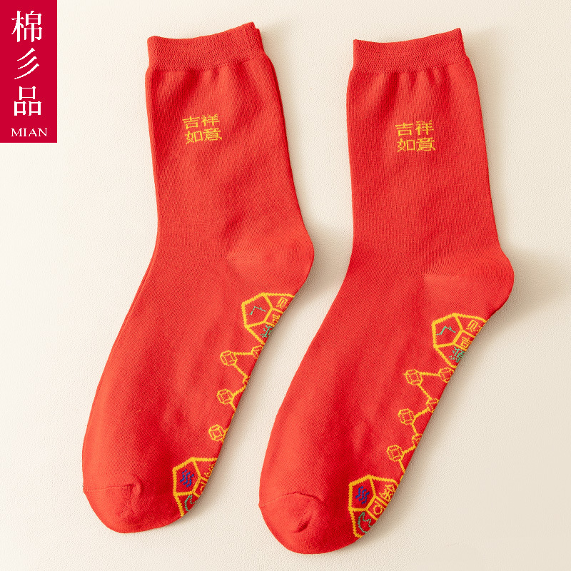 세븐 스타 필 양말 보트 양말 남성용 및 여성용 양말 봄과 여름 얇은 범밍 년 빨간 양말 미드 실린더 축제 웨딩 코튼
