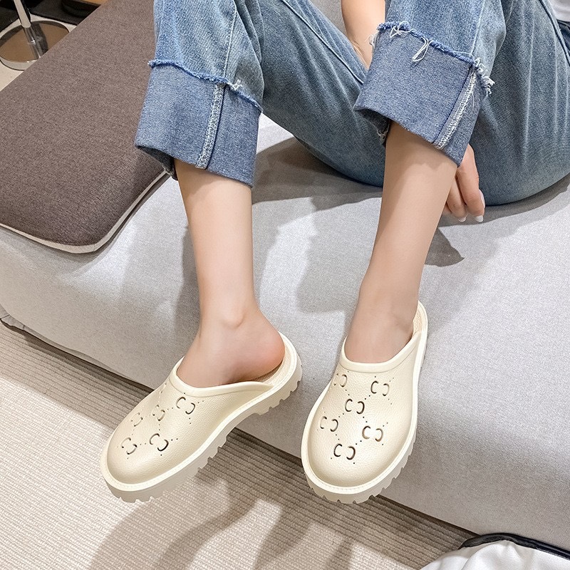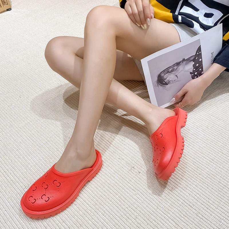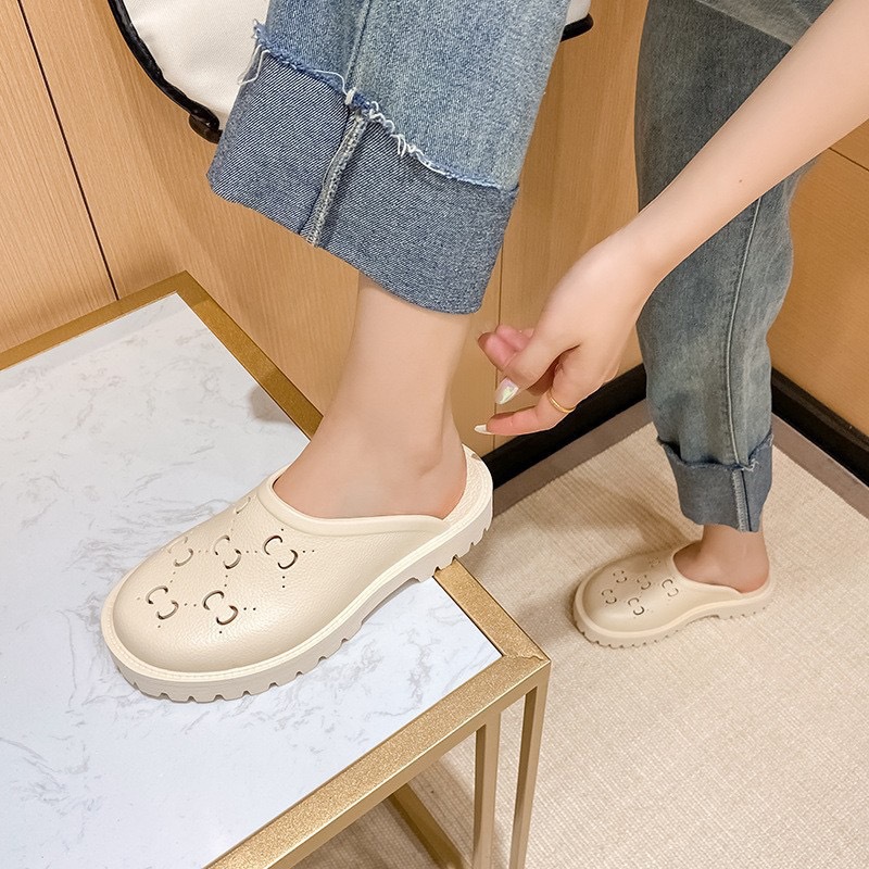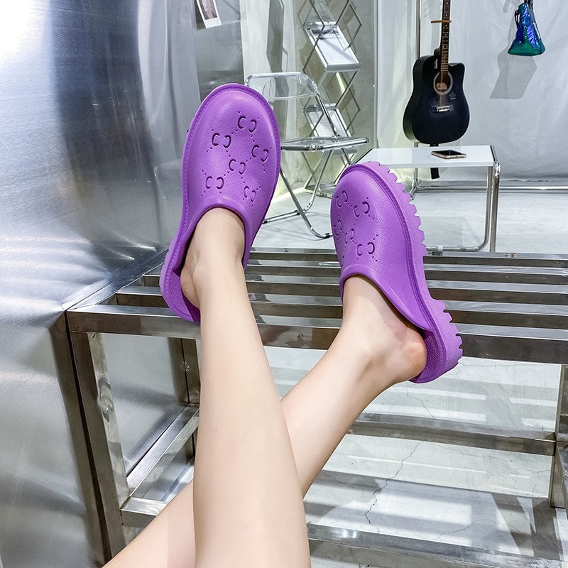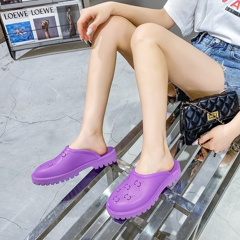 외국 무역 G 브랜드 레터링 샌들 여성용 2024 여름 신상 앞코가 막힌 뒤가 빈 다용도 슬립온 비치 샌들 커플용 2cm스토어 가기