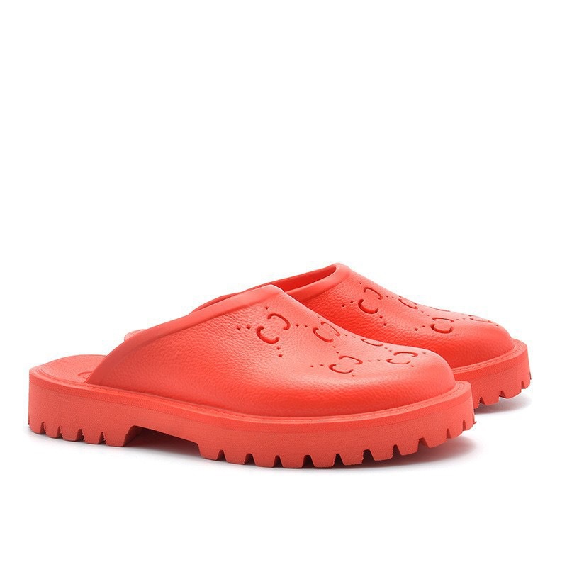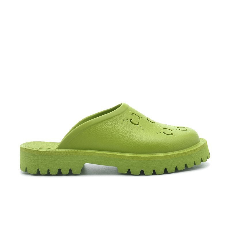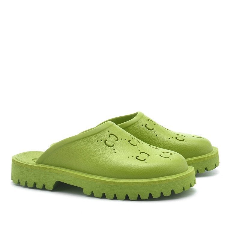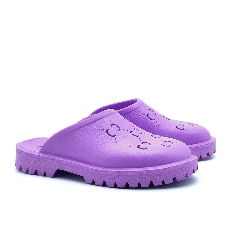 외국 무역 G 브랜드 레터링 샌들 여성용 2024 여름 신상 앞코가 막힌 뒤가 빈 다용도 슬립온 비치 샌들 커플용 2cm