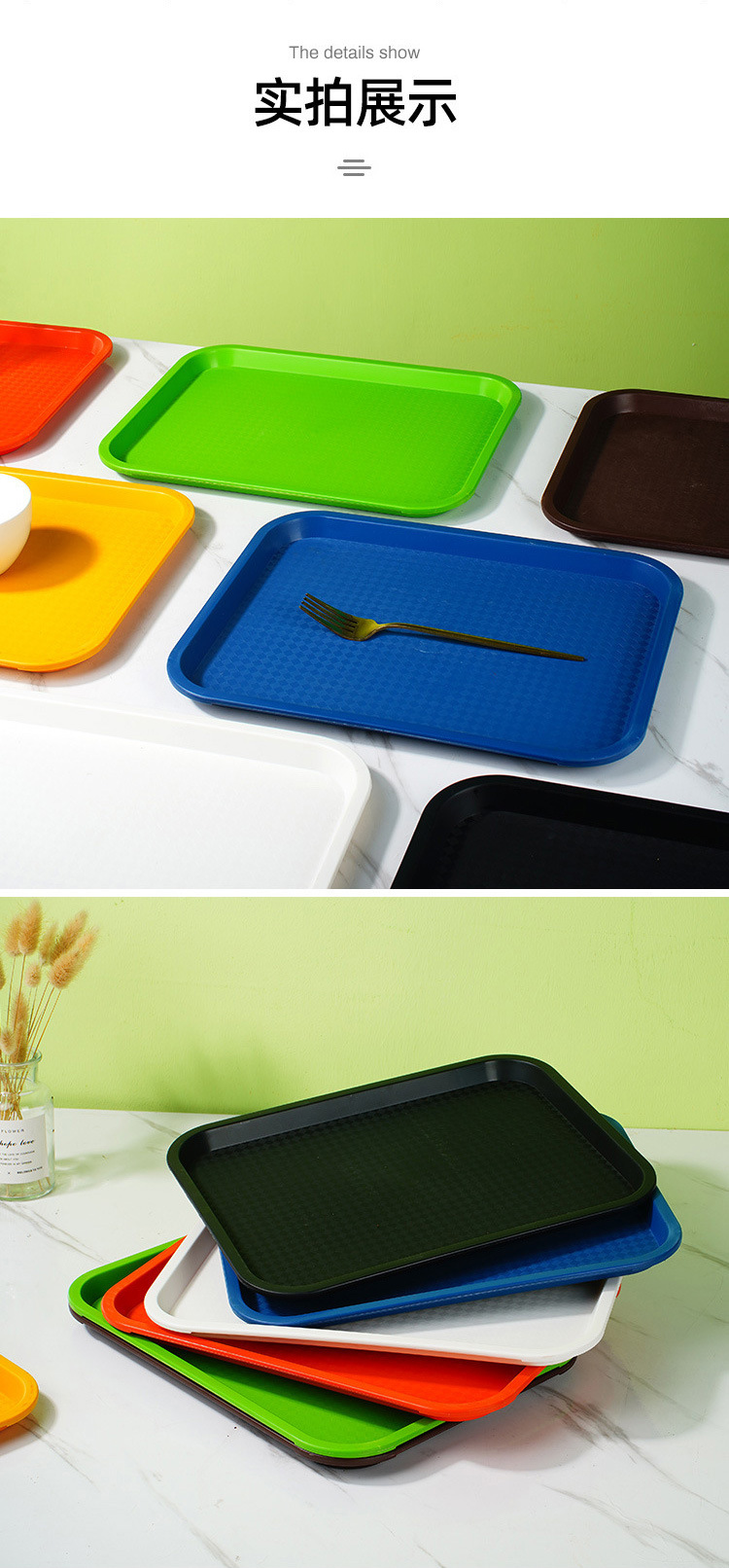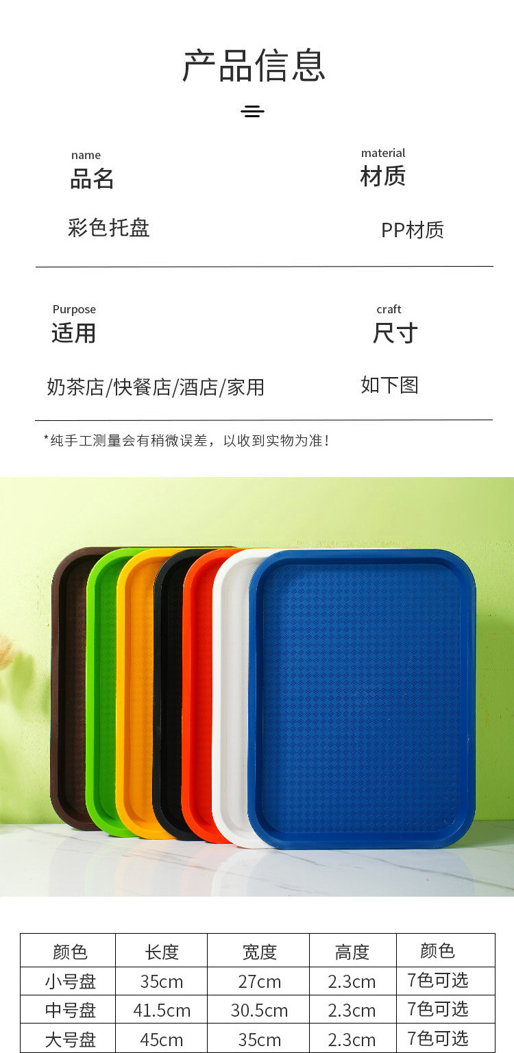 디너 플레이트 플라스틱 트레이 직사각형 상업용 레스토랑 취사 서빙 두꺼운 트레이 미끄럼 방지 KFC 패스트 푸드 대형 트레이스토어 가기