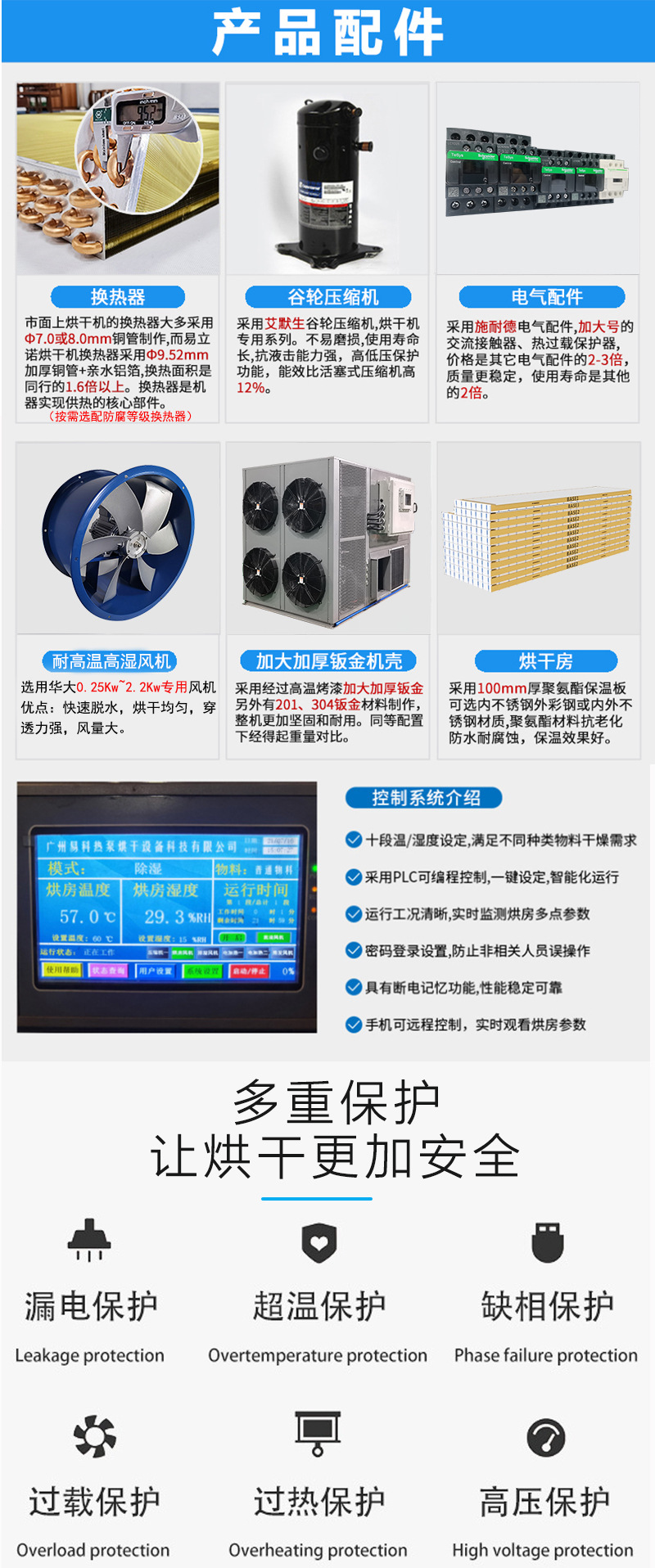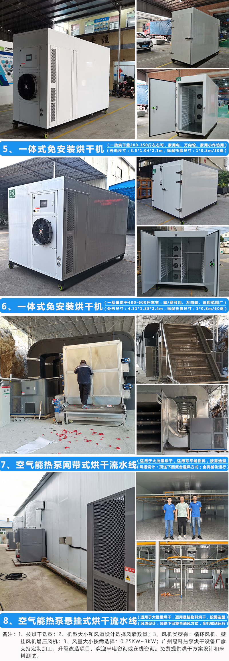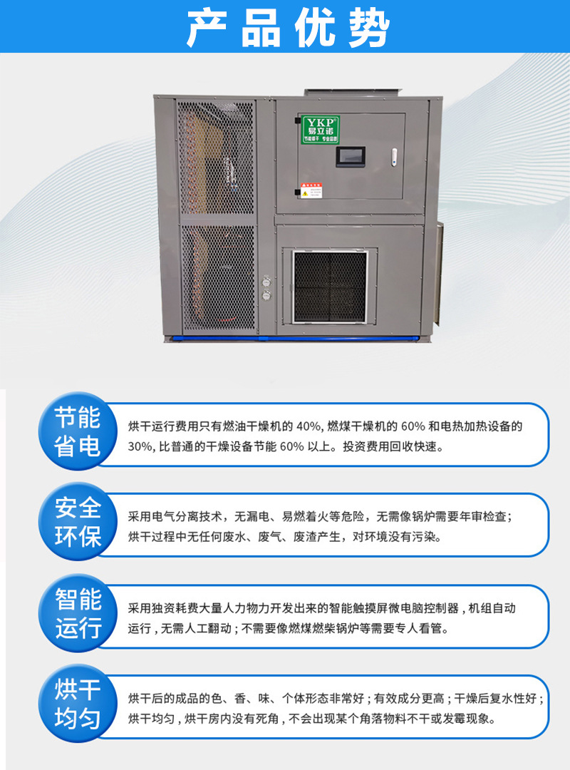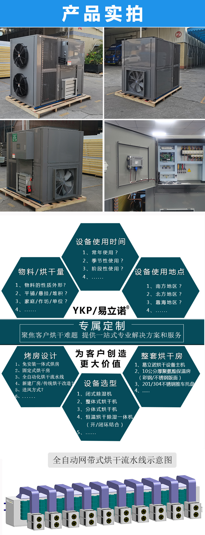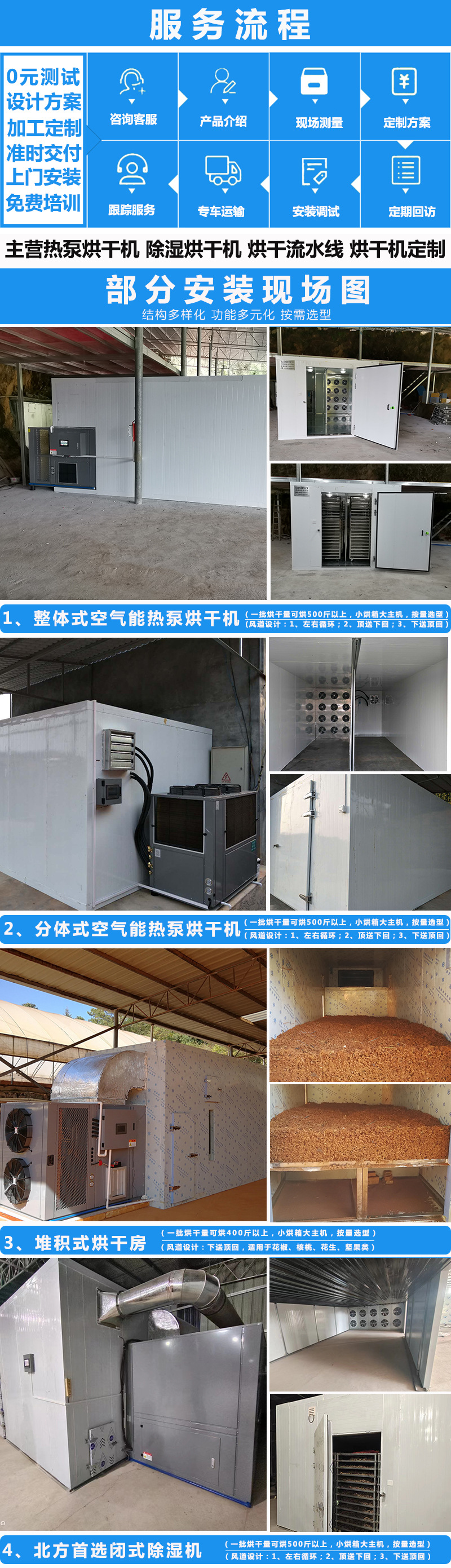 主营产品包括:常规高温热泵烘干机、四效闭环除湿机、开闭结合烘干除湿-体机、小型一体式免安装烘干房、大型自动烘干流水线、污泥低温干化机。