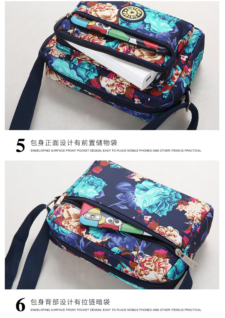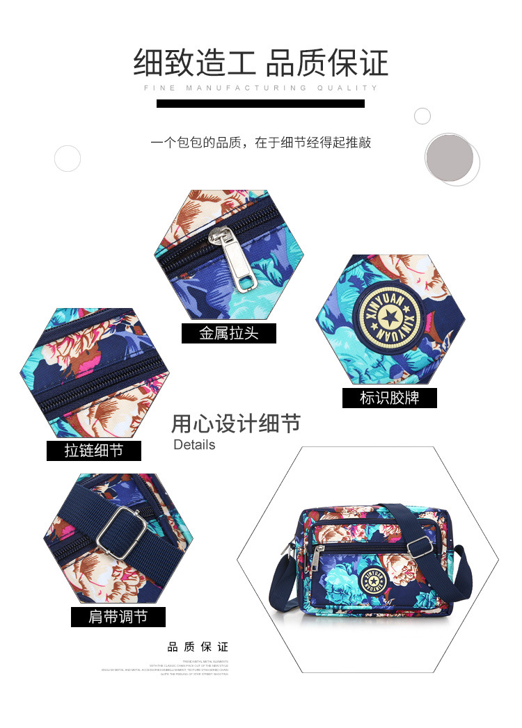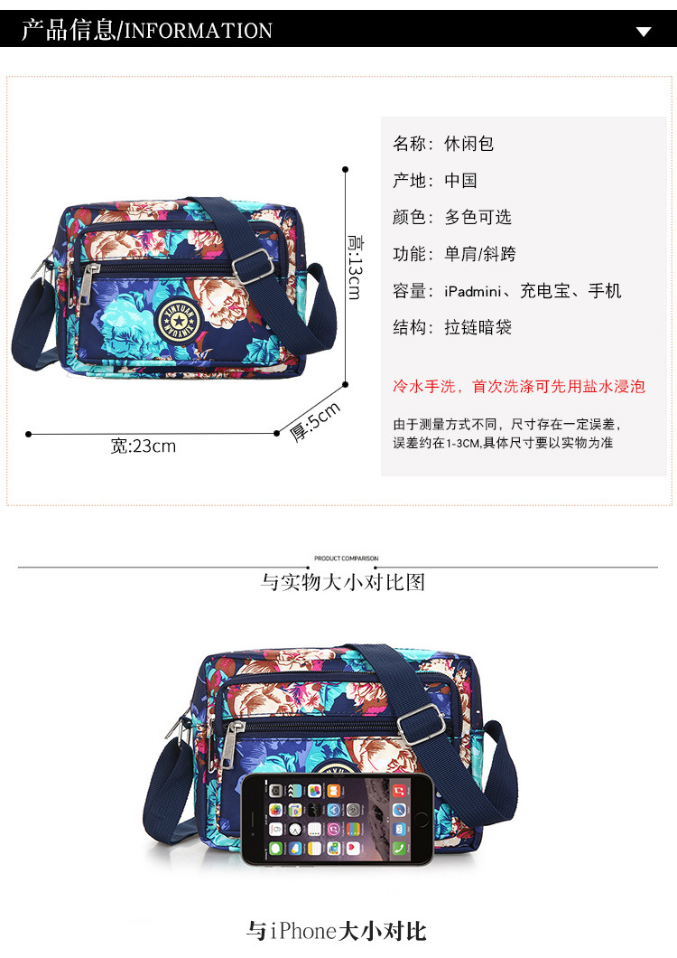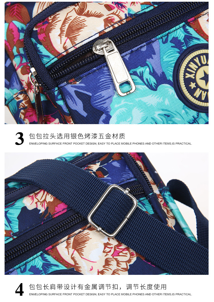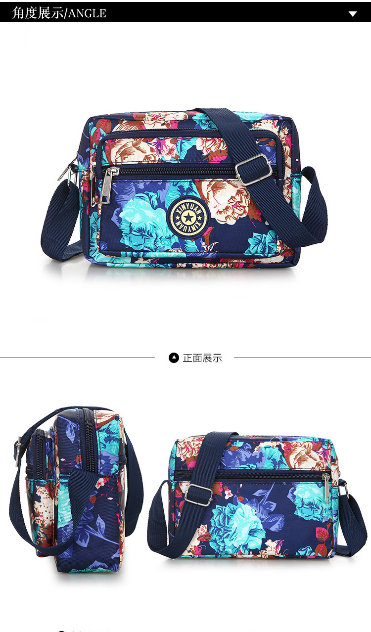 새로운 숙녀 메신저 백 어머니 가방 옥스포드 천 숄더 백 중년 및 노인 캔버스 가방 스톨 꽃 천 가방