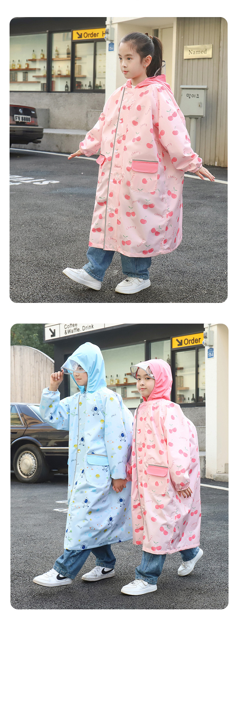 책가방 좌석 소년 소녀 아기 어린이 원피스 비옷 긴 방수 방풍 방설 판초가있는 공장 어린이 비옷스토어 가기