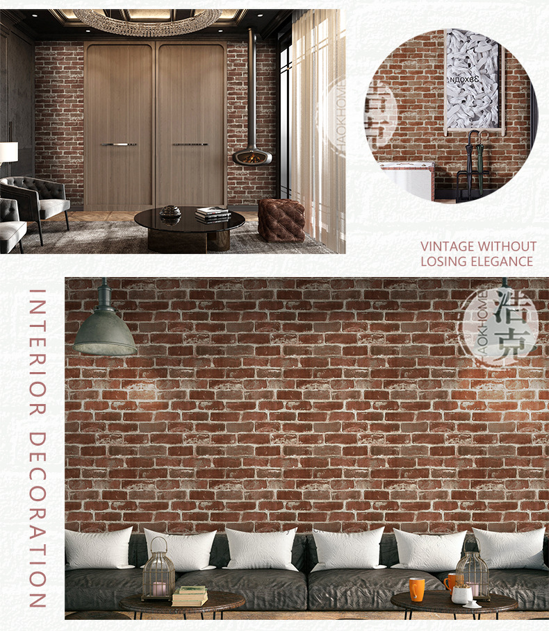 3m 두께의 자체 접착 벽돌 레스토랑 모조 벽돌 벽지 PVC 방수 방습 리노베이션 스티커 빈티지 빨간 벽돌 벽 스티커