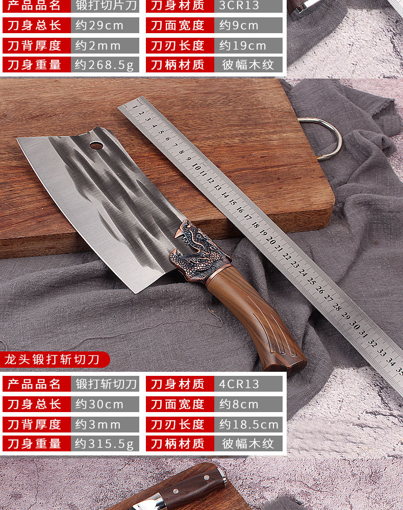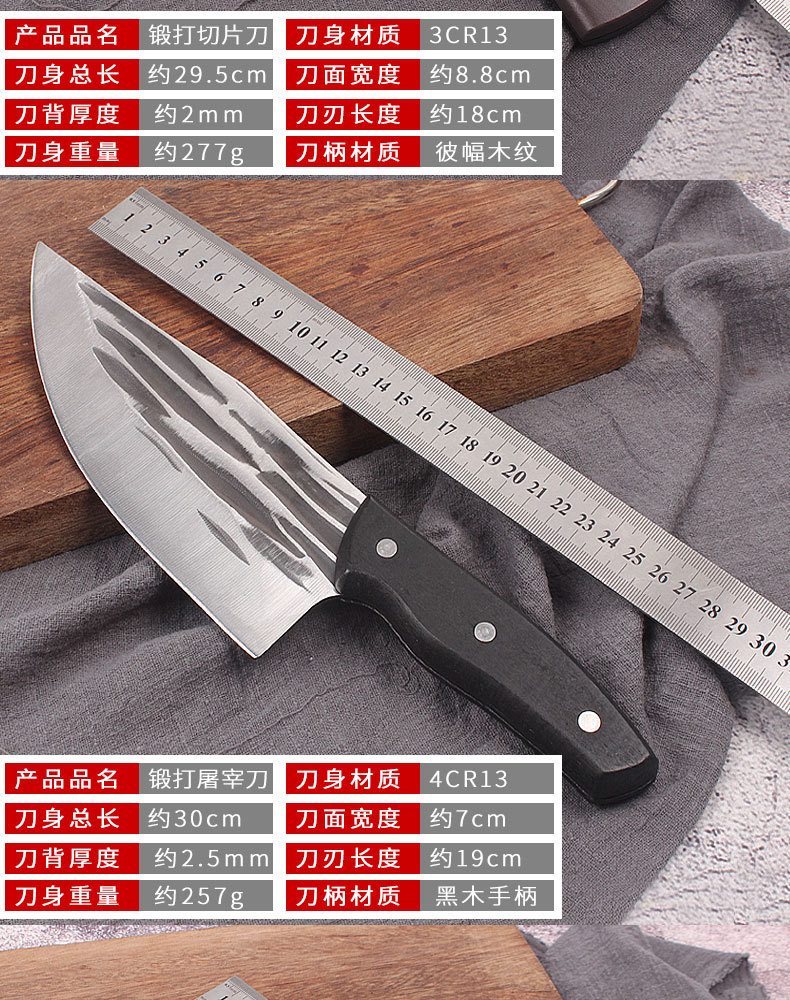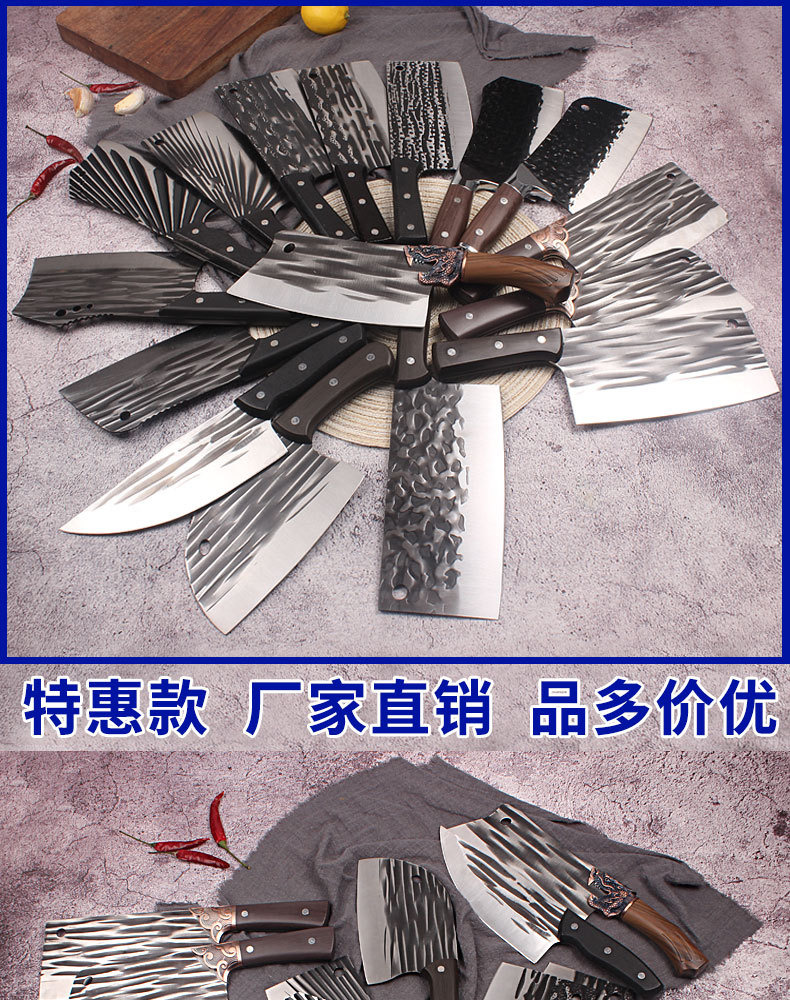 공장 재고 강후 부엌 칼을 실행 양강 지상 마구간 절단 뼈 도마 칼 단조 스테인리스 칼 날카로운 내구성 부엌 칼