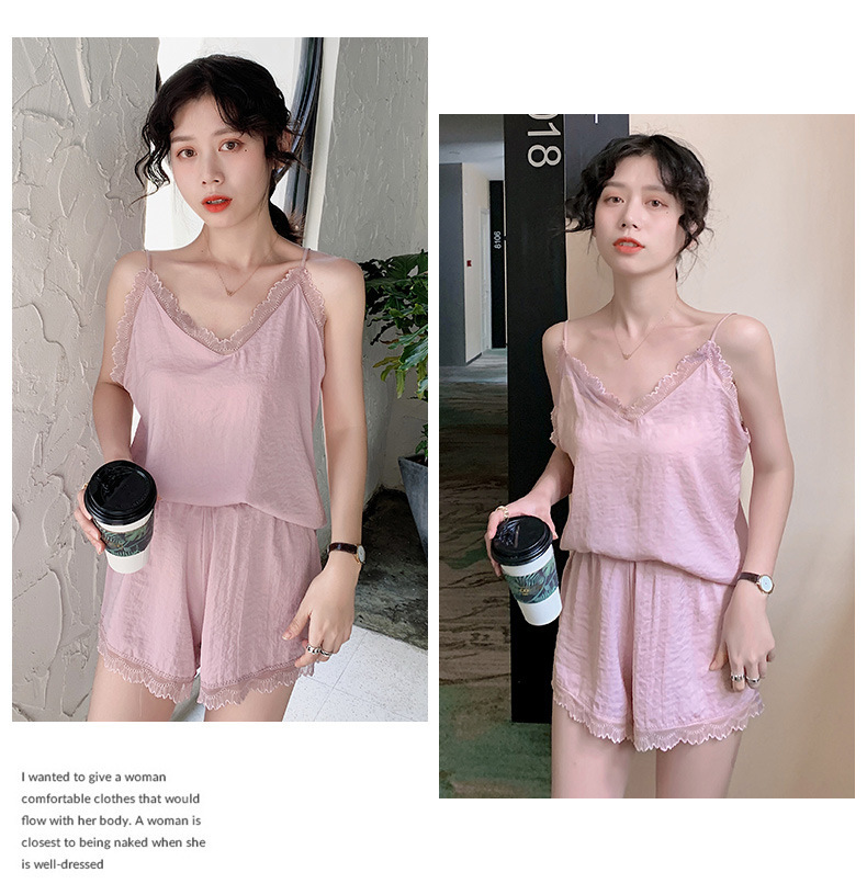 여성용 여름 홈웨어 세트, 반바지와 끈이 있는 투피스 세트, 섹시하고 루즈한 잠옷, 아이스 실크 얇은 스타일, 트렌디하고 순수한 매력