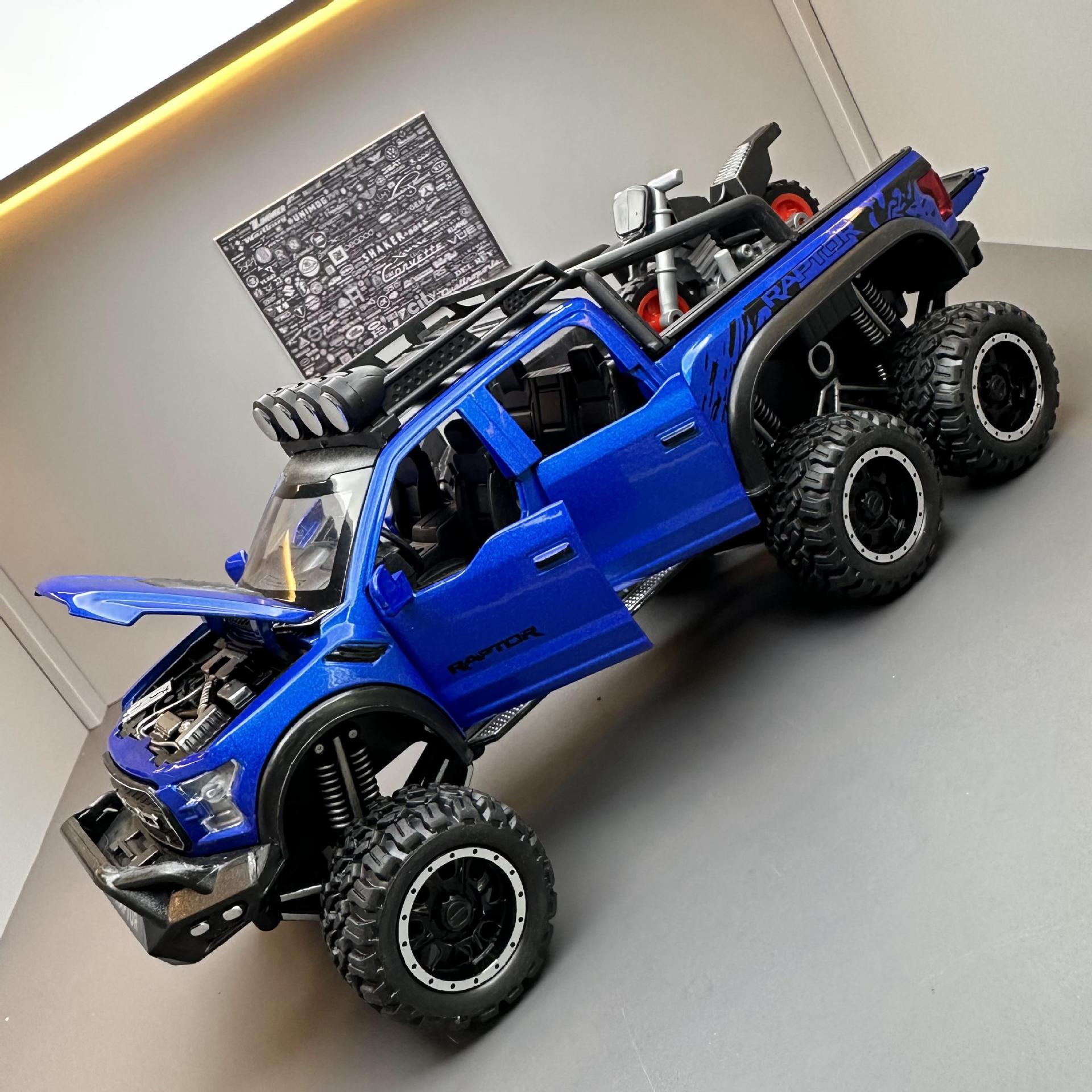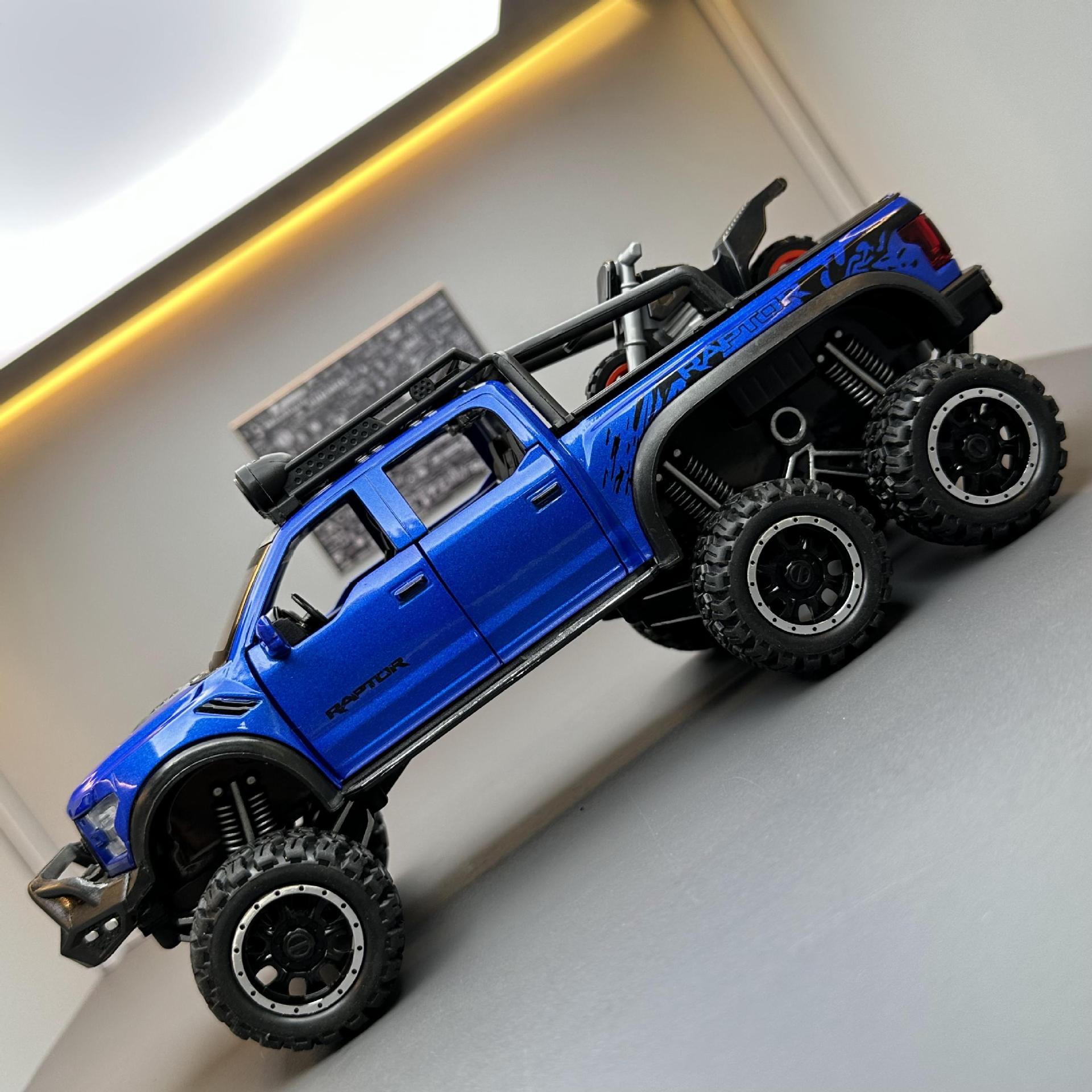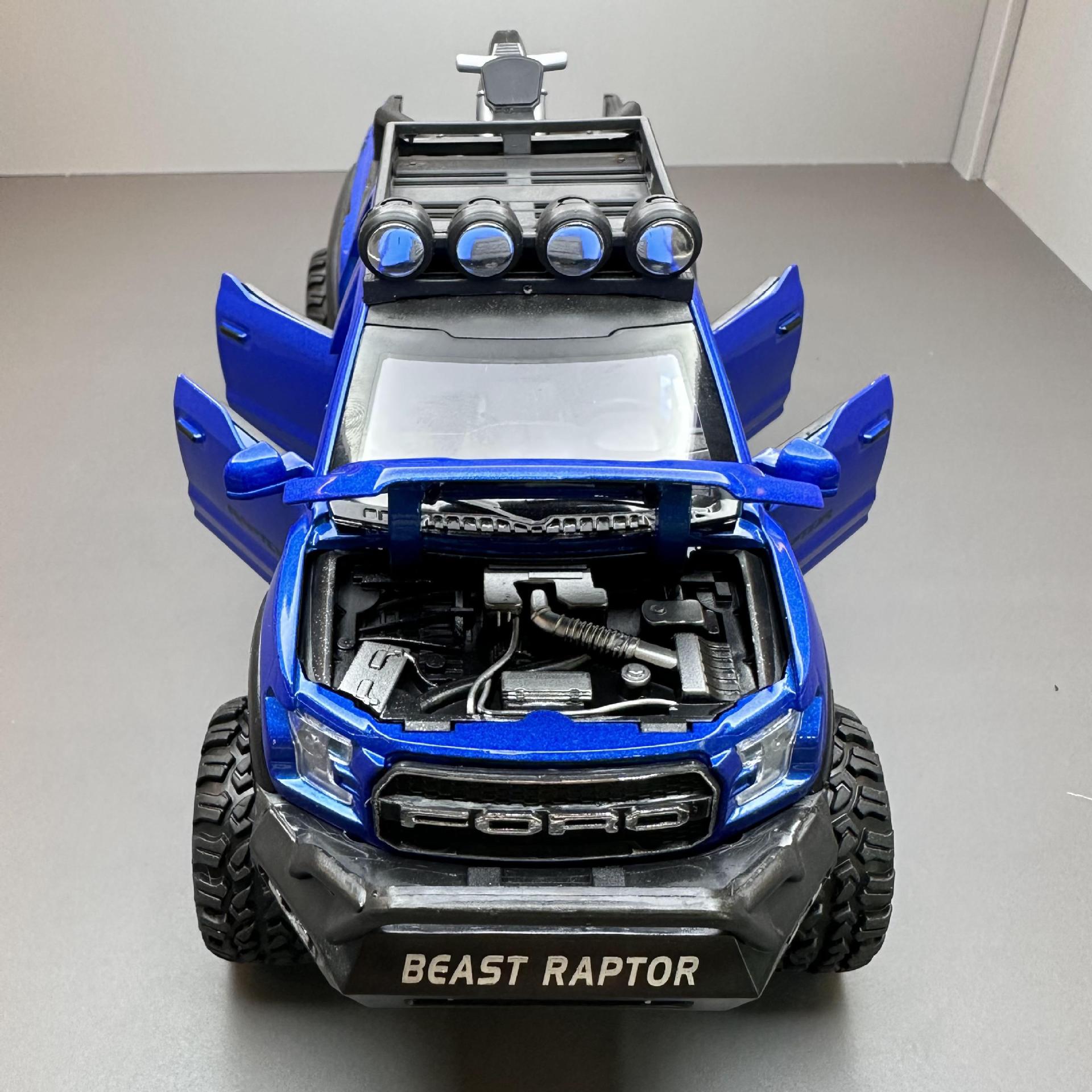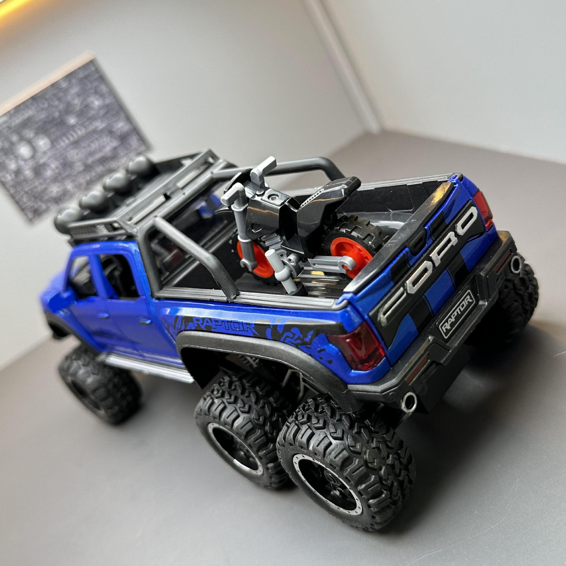 합금에 자동차 1:28 랩터 오프로드 픽업 F150 자동차 모델 소리와 가벼운 장난감 자동차 음악 모델 장식품 백 포스