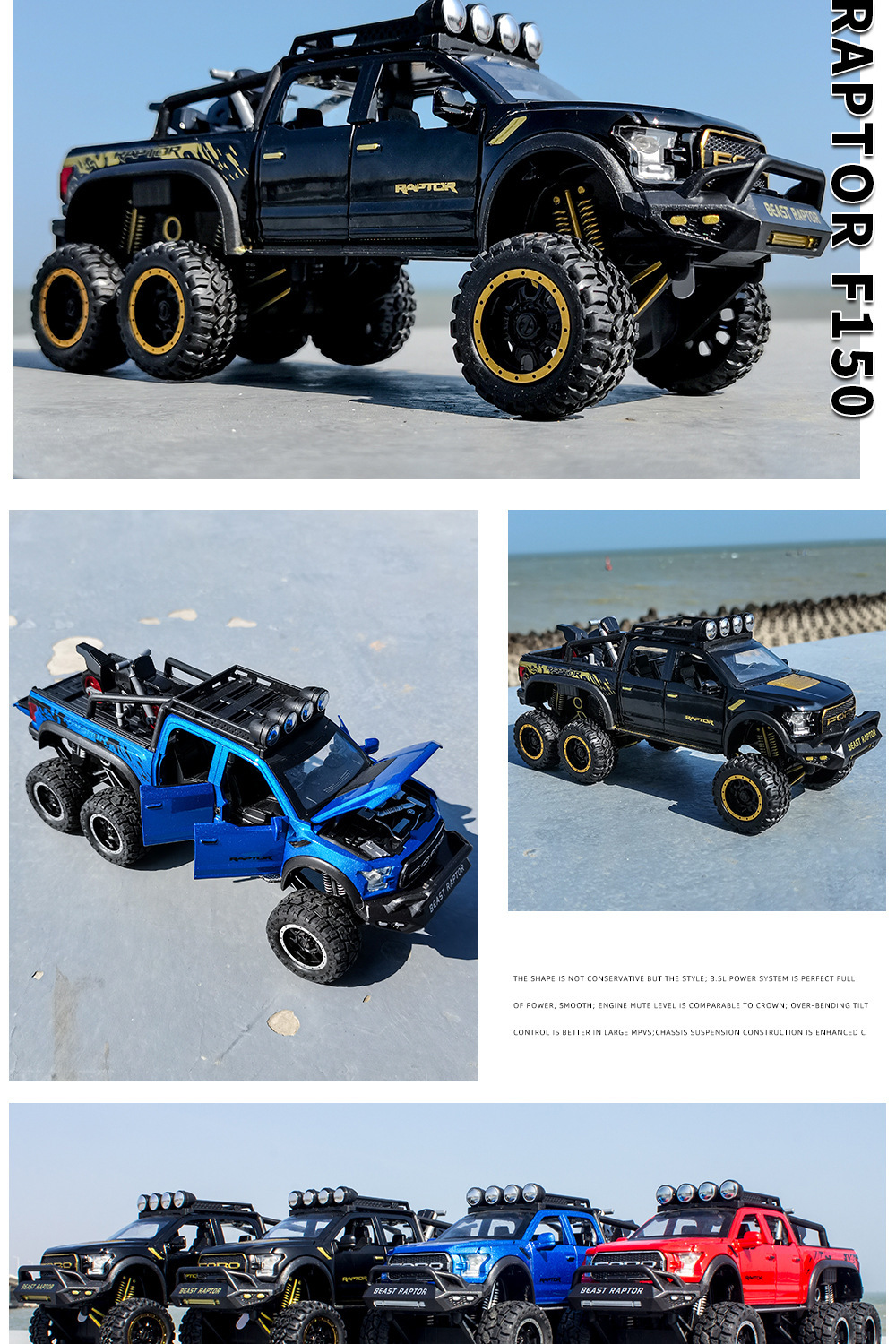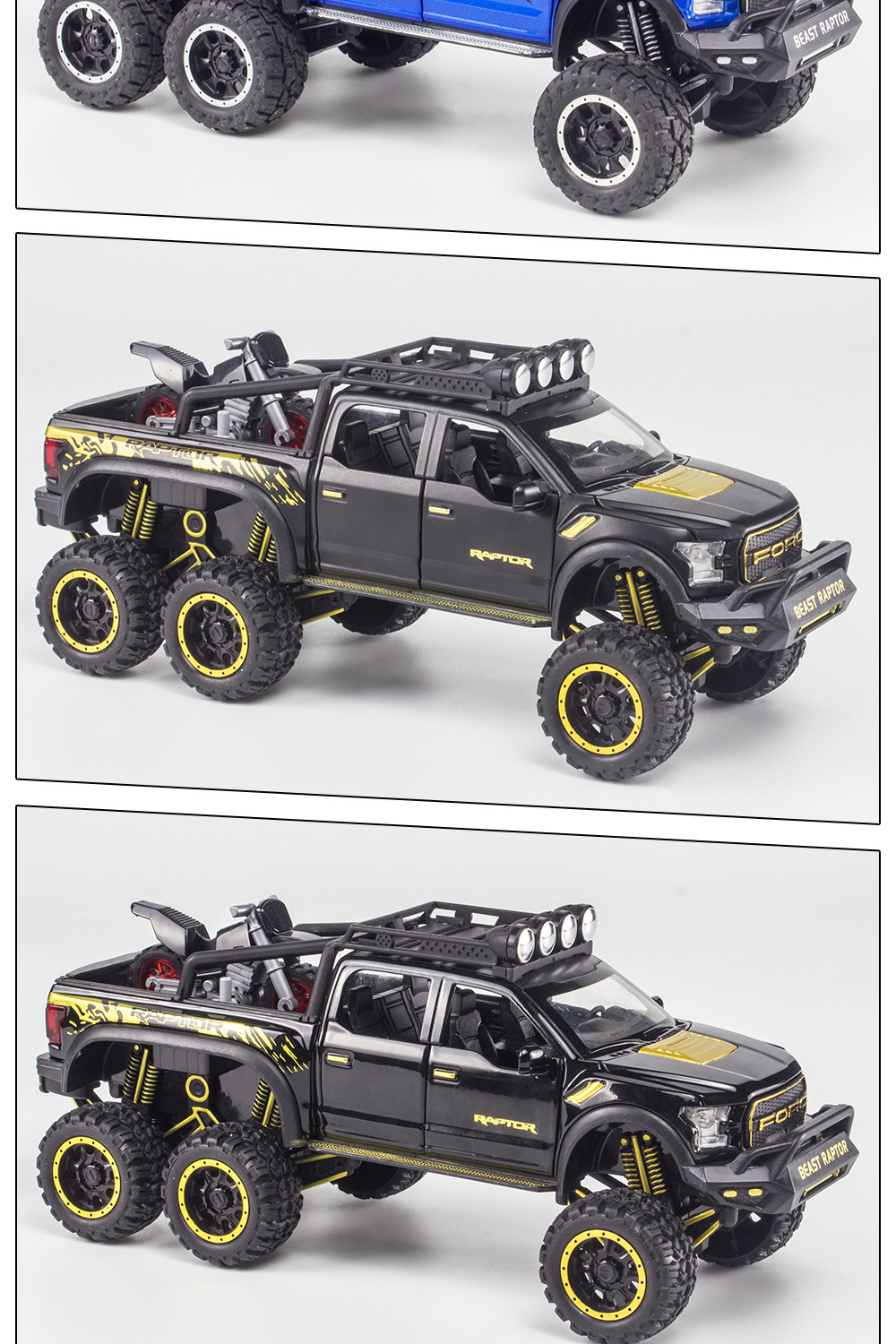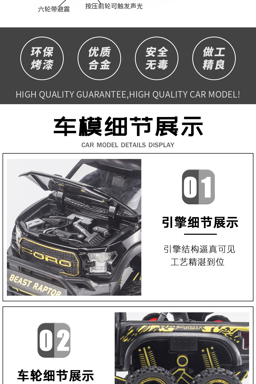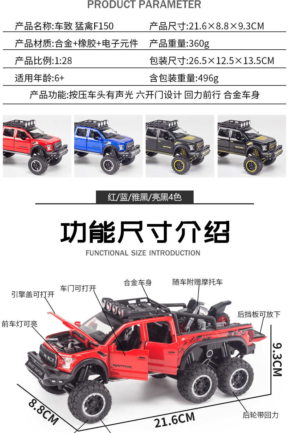 합금에 자동차 1:28 랩터 오프로드 픽업 F150 자동차 모델 소리와 가벼운 장난감 자동차 음악 모델 장식품 백 포스