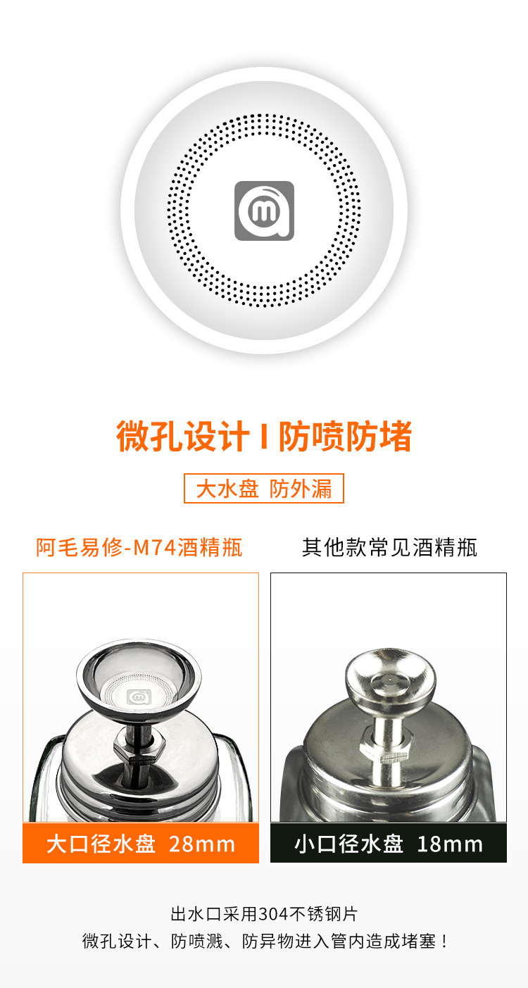 아마오 쉬운 수리/M74 알코올 병 유리 판 세척 물 병 프레스 유형 마이크로 다공성 스테인레스 스틸 튜브 대용량 비 드립스토어 가기