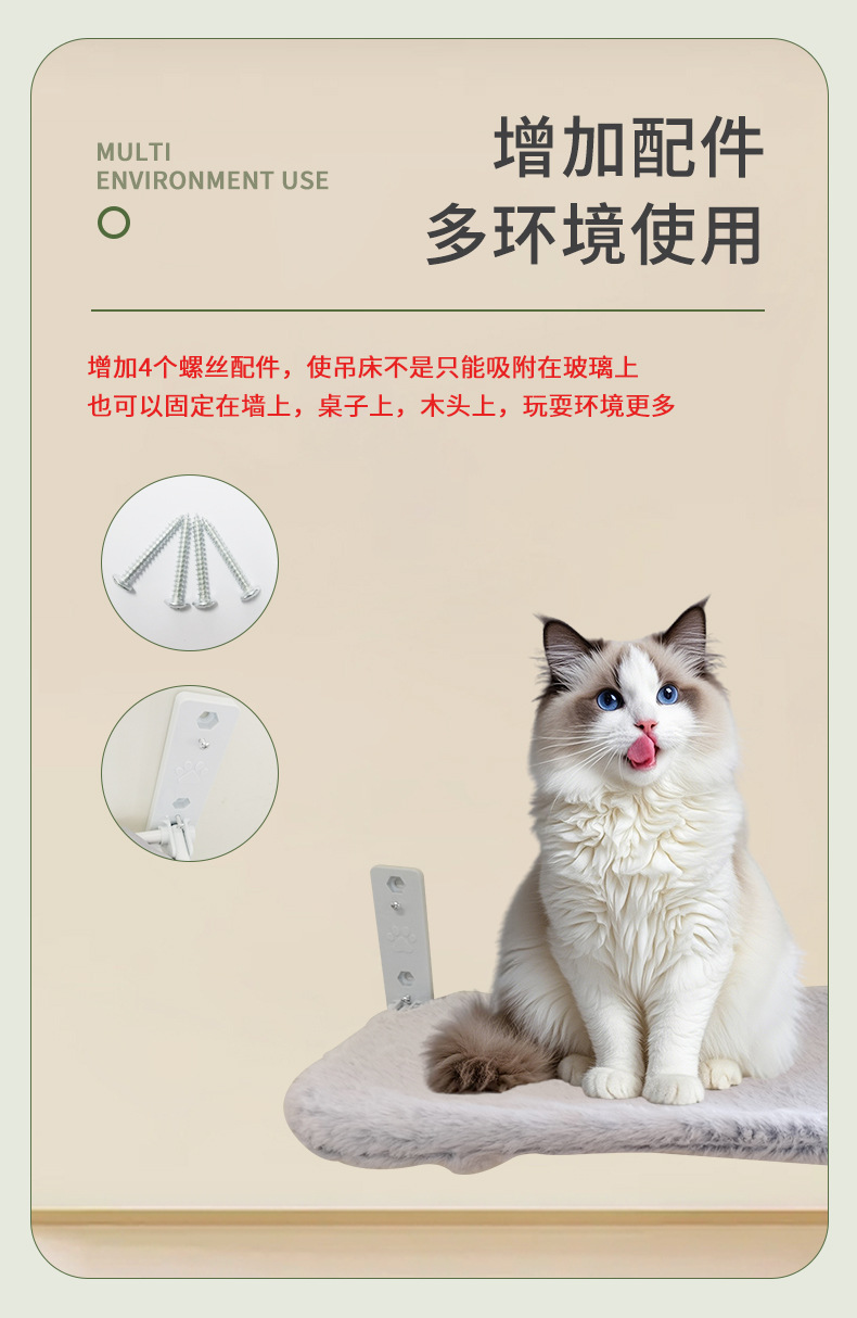 • 베이지 통기성 메쉬 고양이 해먹 + 고양이 티저