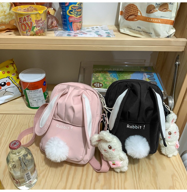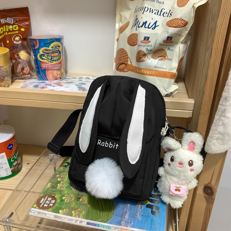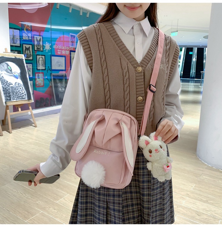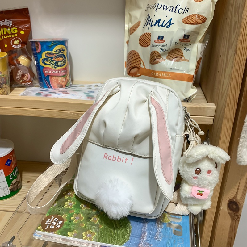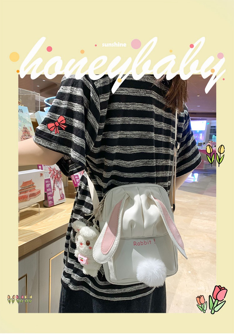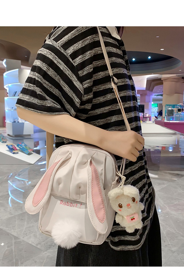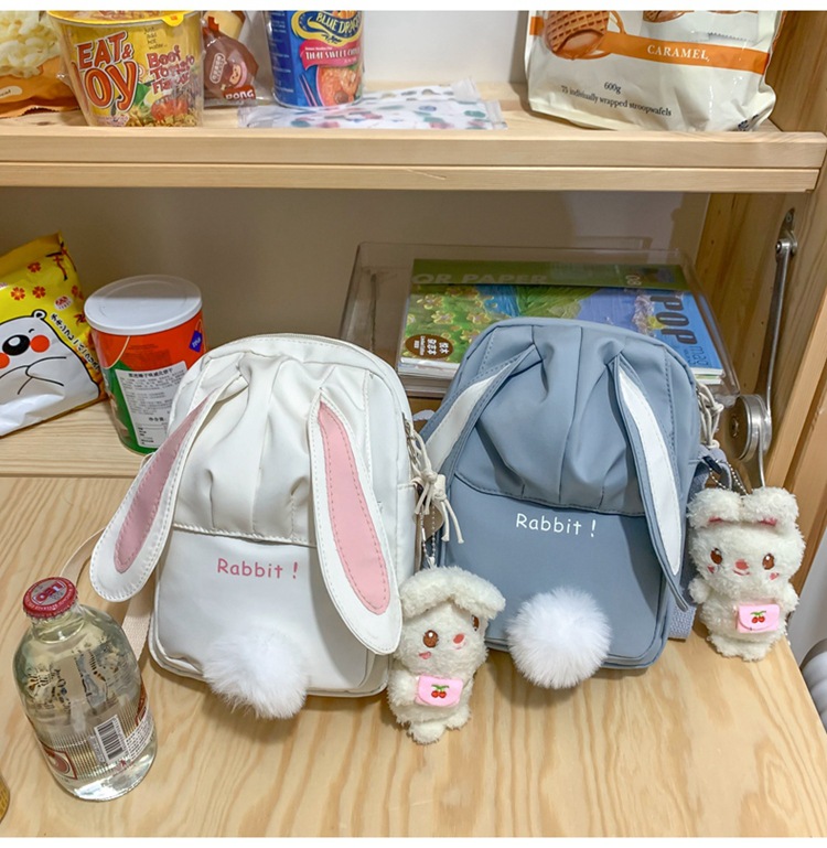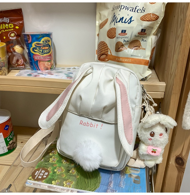 스타일 크로스 바디 백 소녀 학생 패션 작은 토끼 귀여운 소녀 작은 사각형 가방 일본 스타일 달콤한 캔버스 숄더 백