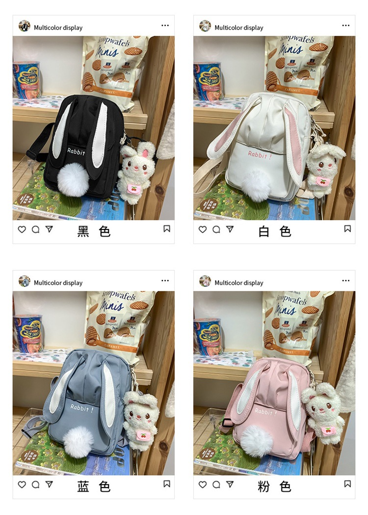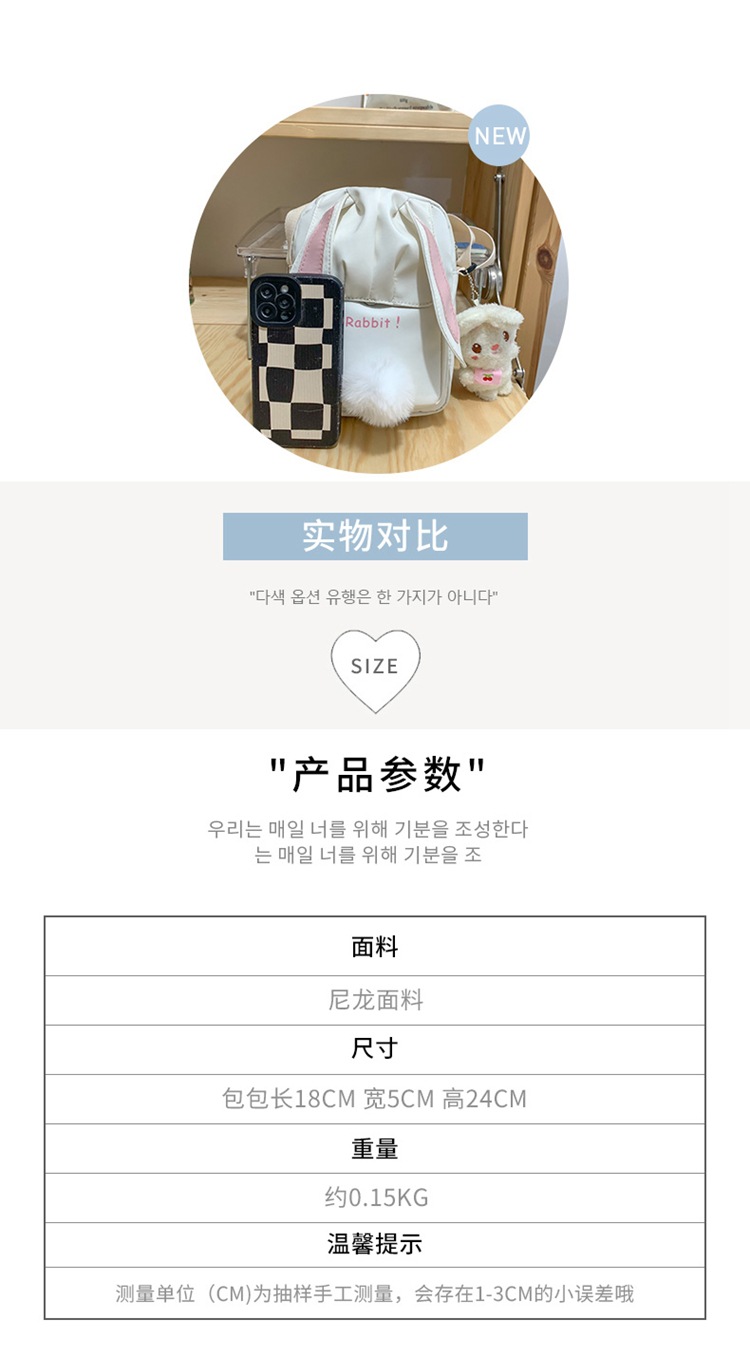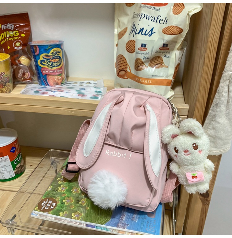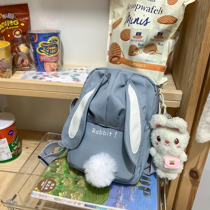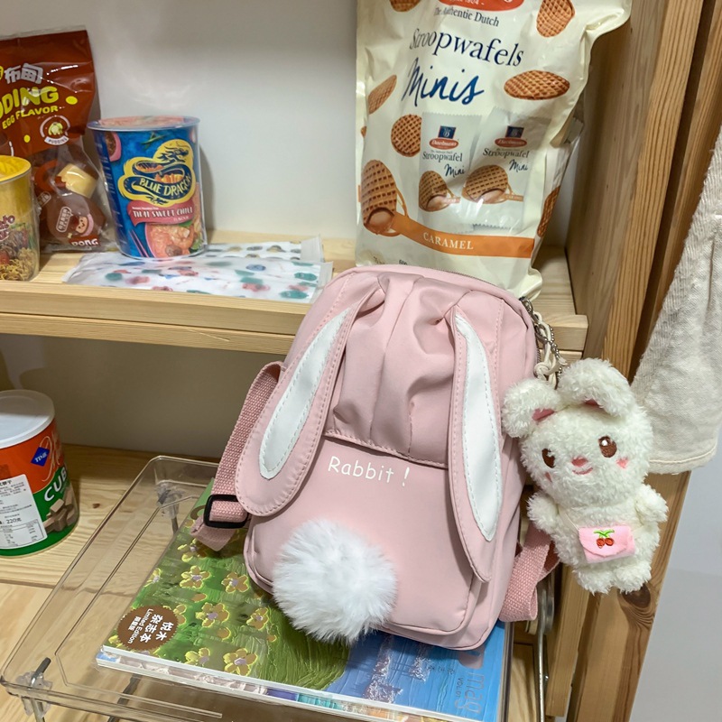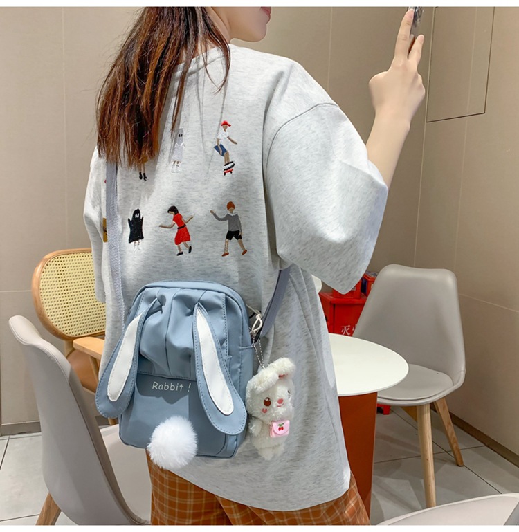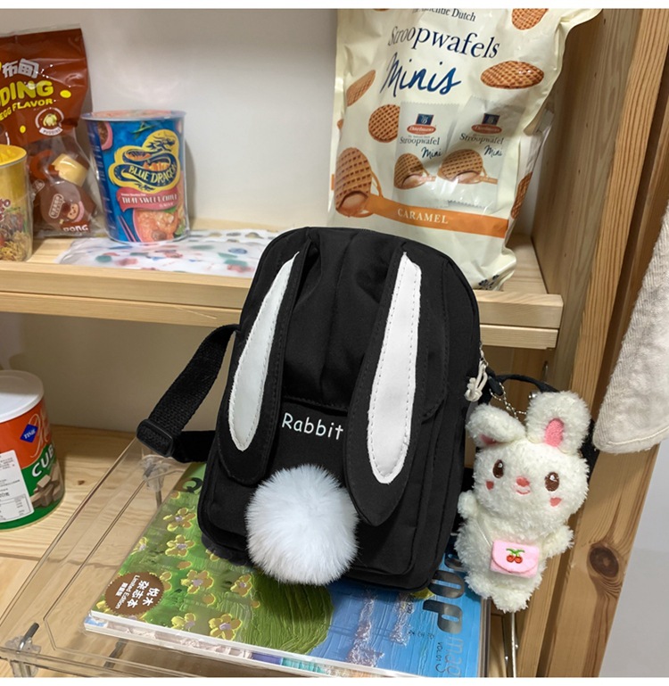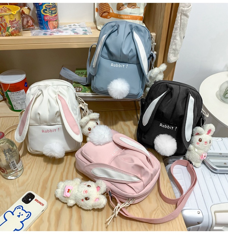 스타일 크로스 바디 백 소녀 학생 패션 작은 토끼 귀여운 소녀 작은 사각형 가방 일본 스타일 달콤한 캔버스 숄더 백