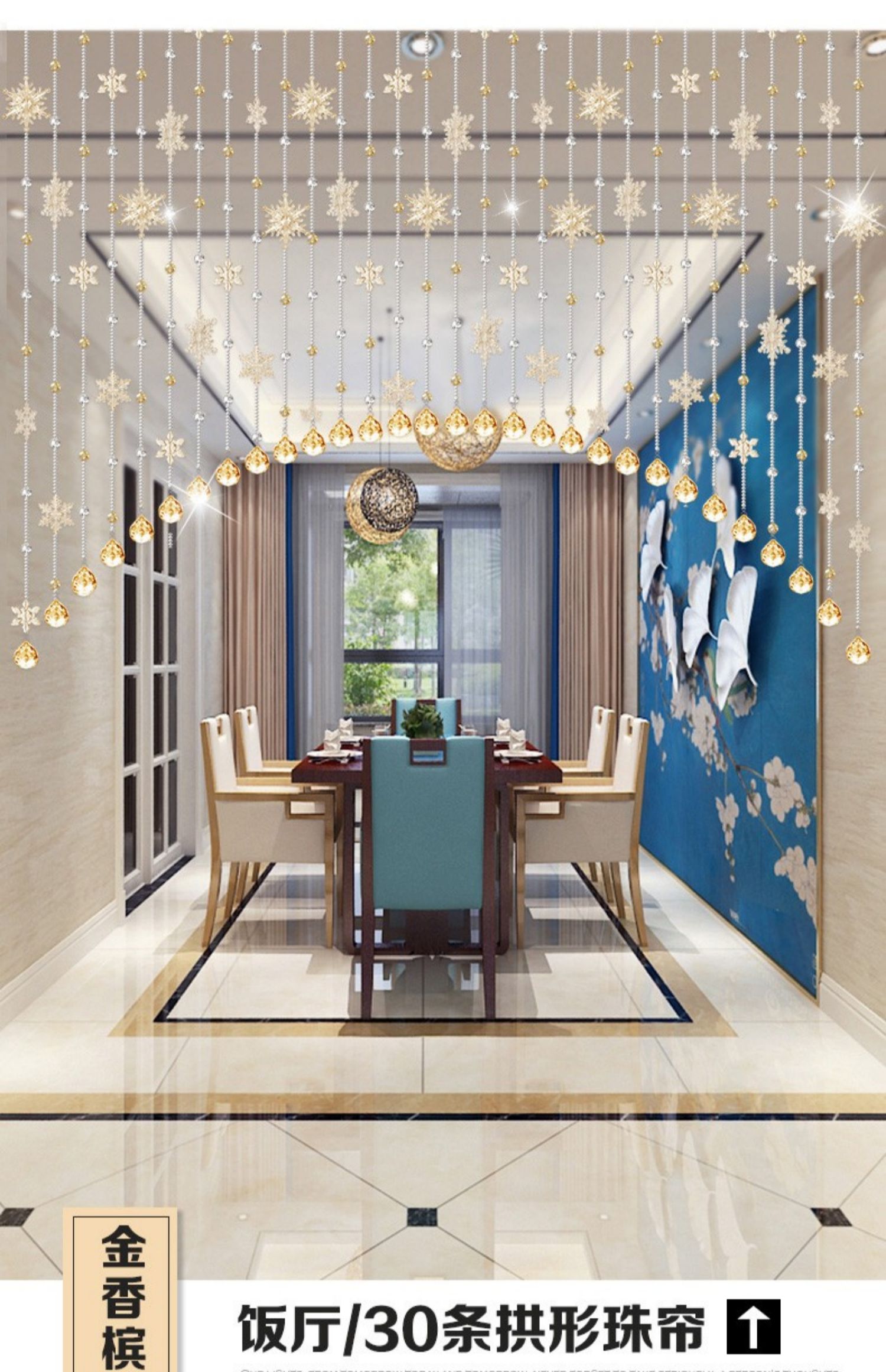 도어 커튼 크리스탈 커튼 비드 커튼 욕실 파티션 커튼 완성 거실 주방 커튼 교수형 커튼 펀치 프리 눈송이