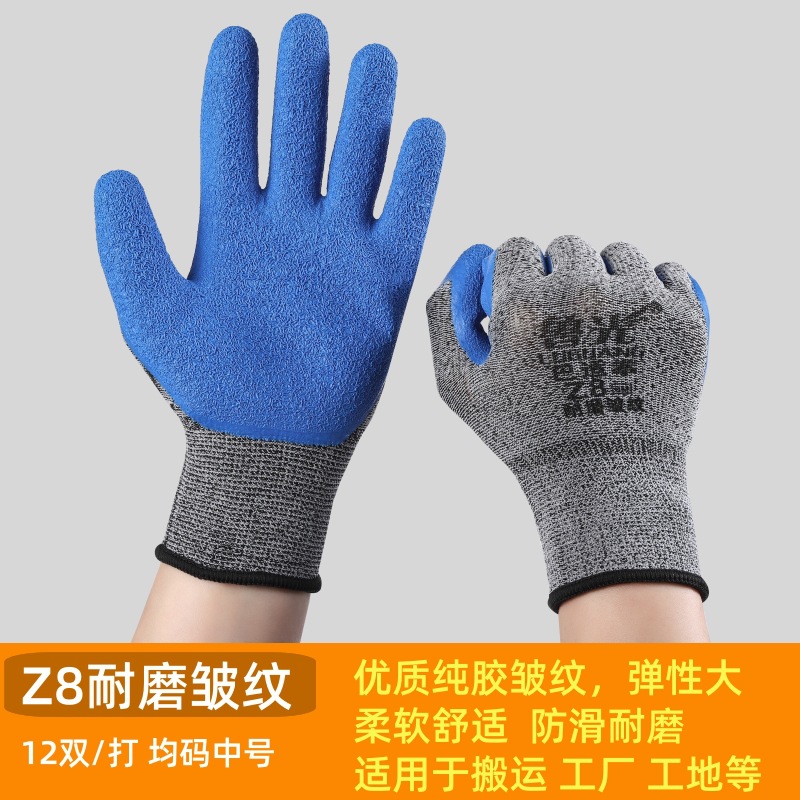 Luguang Bashiquan Z8 내마모성 순수 고무 주름 라텍스 미끄럼 방지 딥핑 고무 작업 보호 노동 보호 장갑