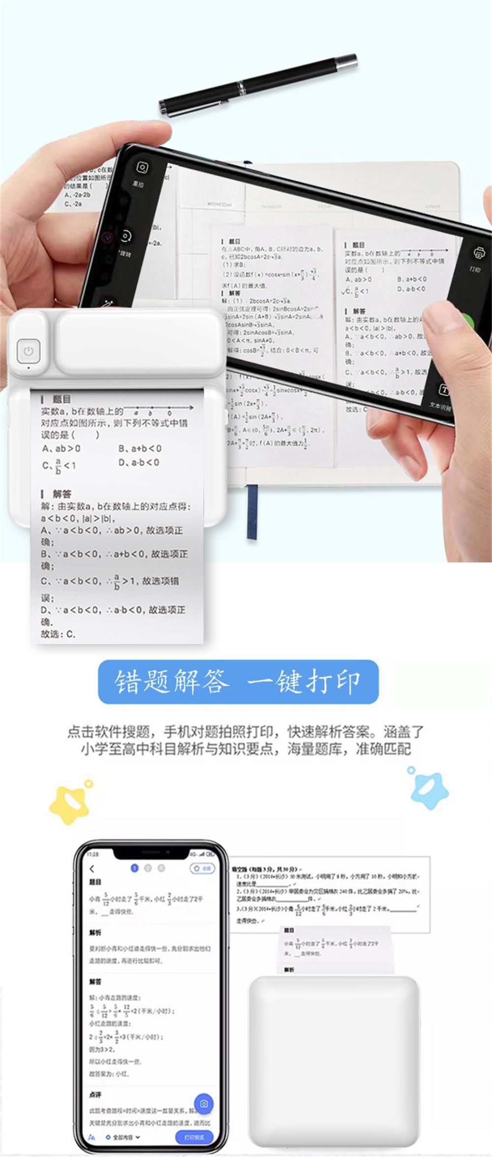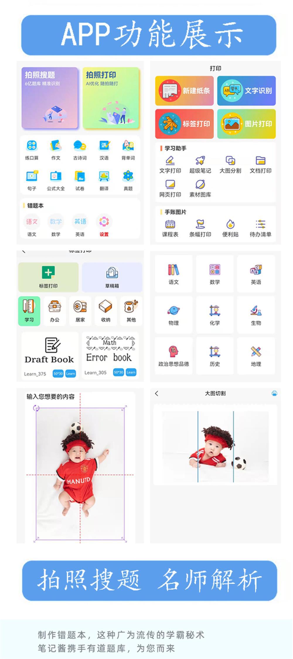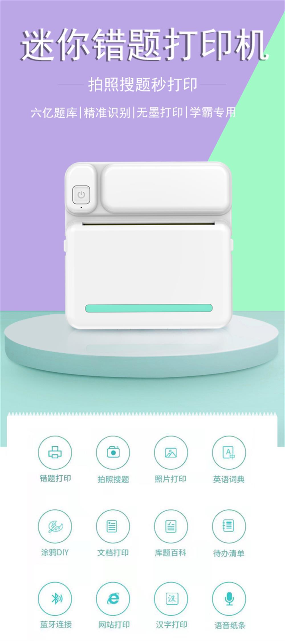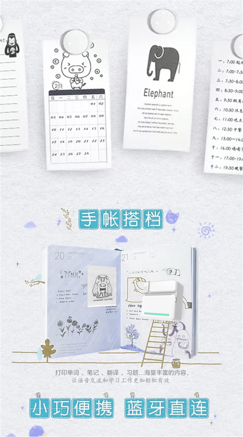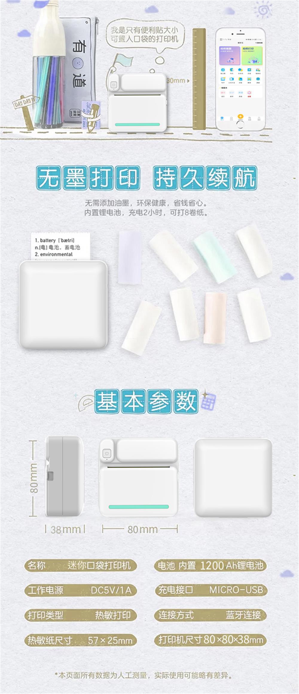 打印机1台+【自带1卷热敏纸+5卷热敏纸+5卷不干胶+3卷彩色纸+6支水彩笔+贴纸+布袋】为一整套。