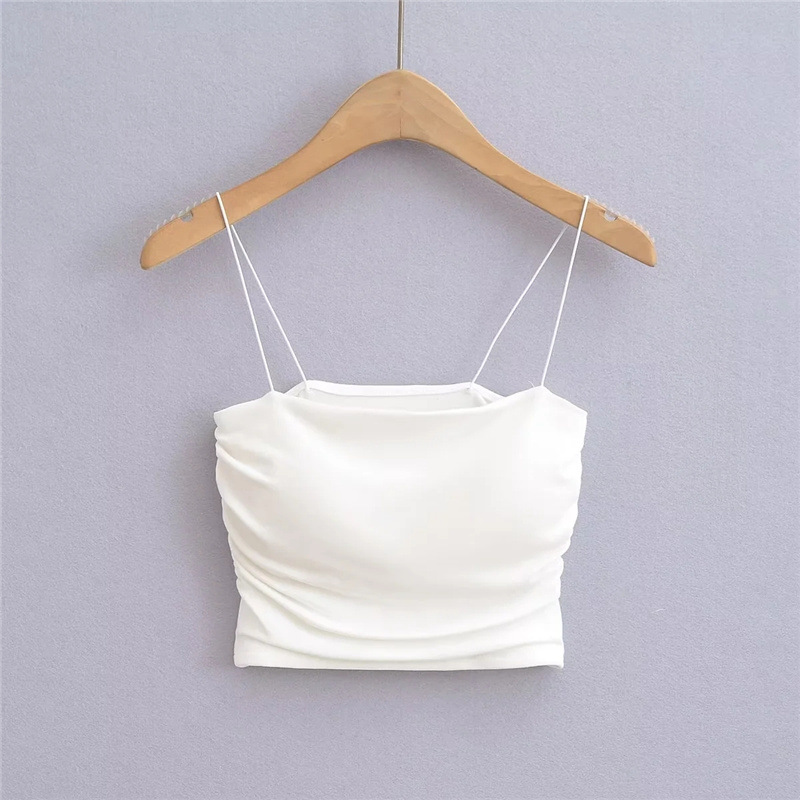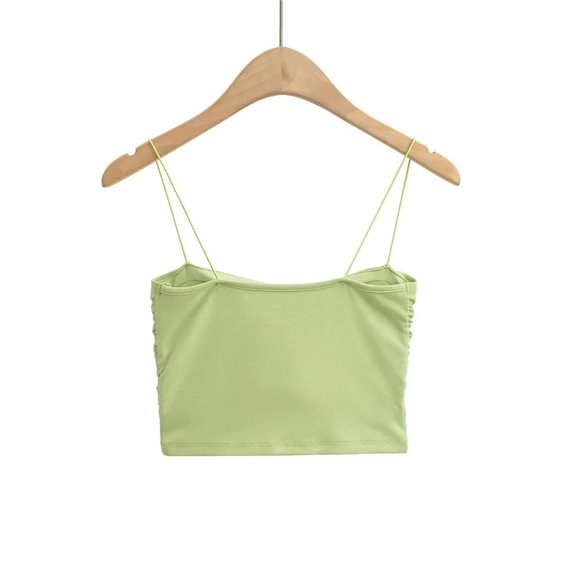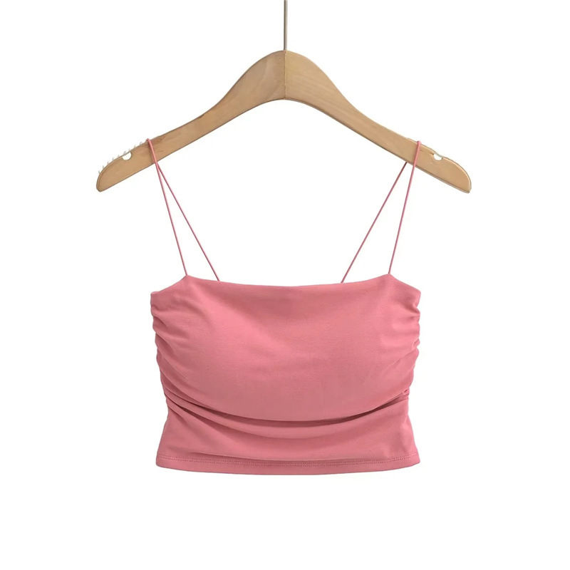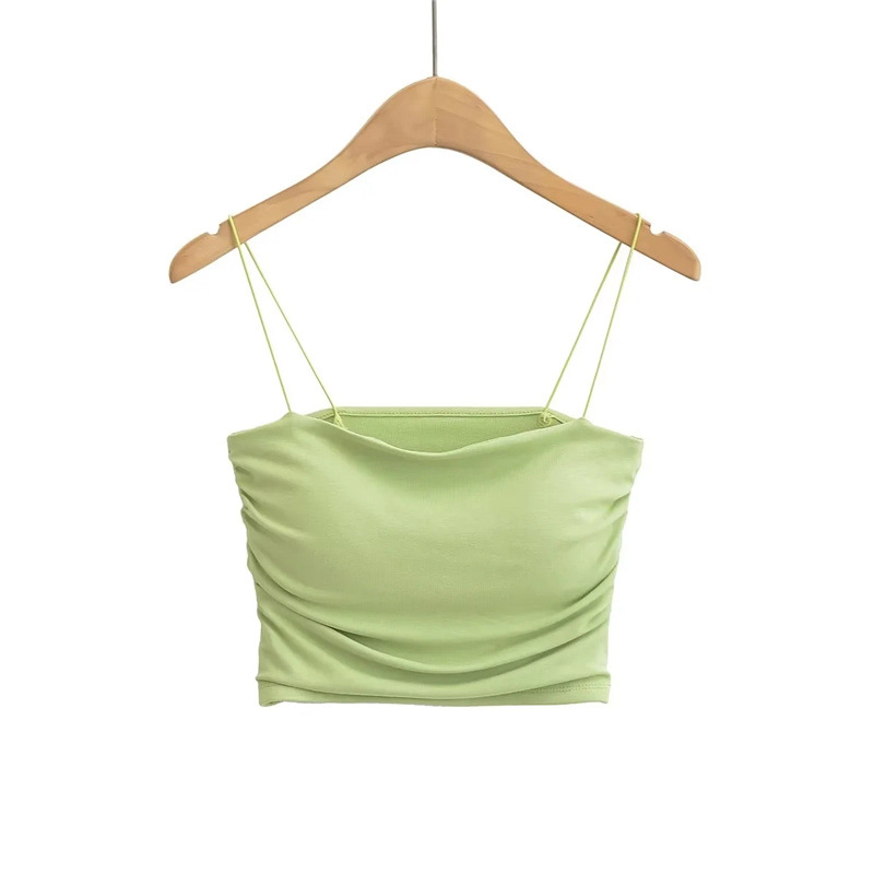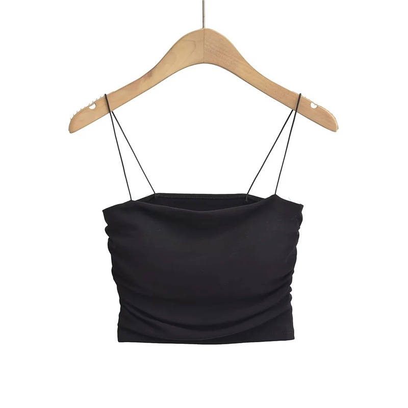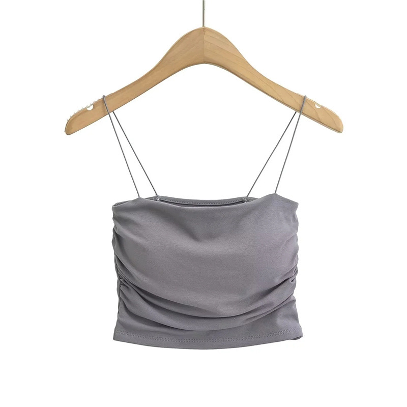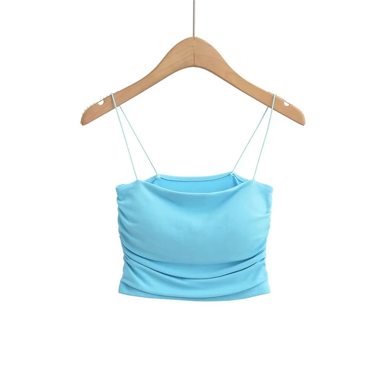 유럽과 미국 스타일 섹시한 평평한 입 주름 고무 작은 슬링 여름 새로운 짧은 배꼽 슬림 핏 슬리밍 향신료 소녀 조끼