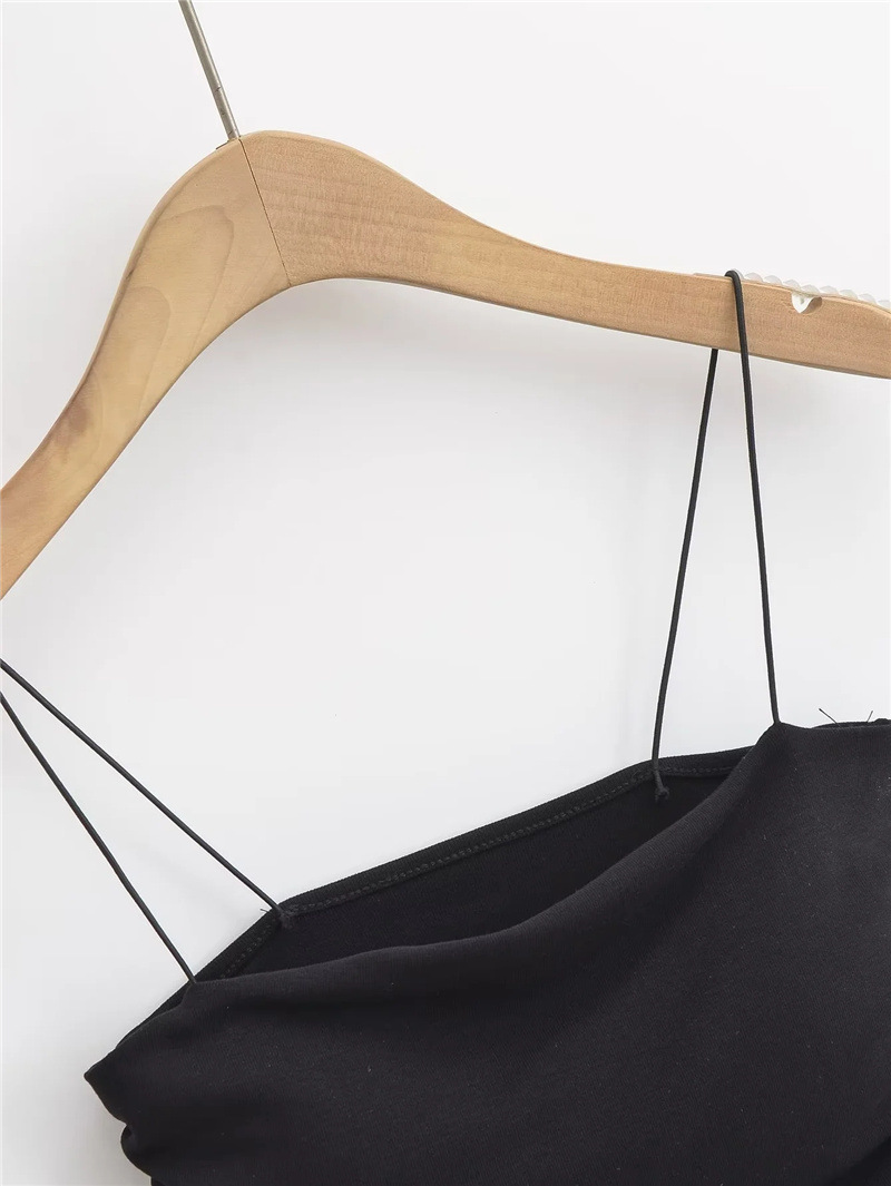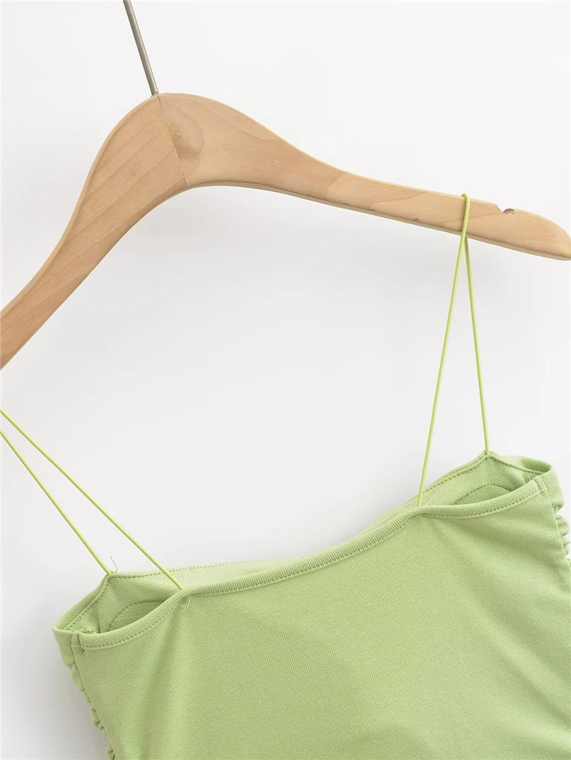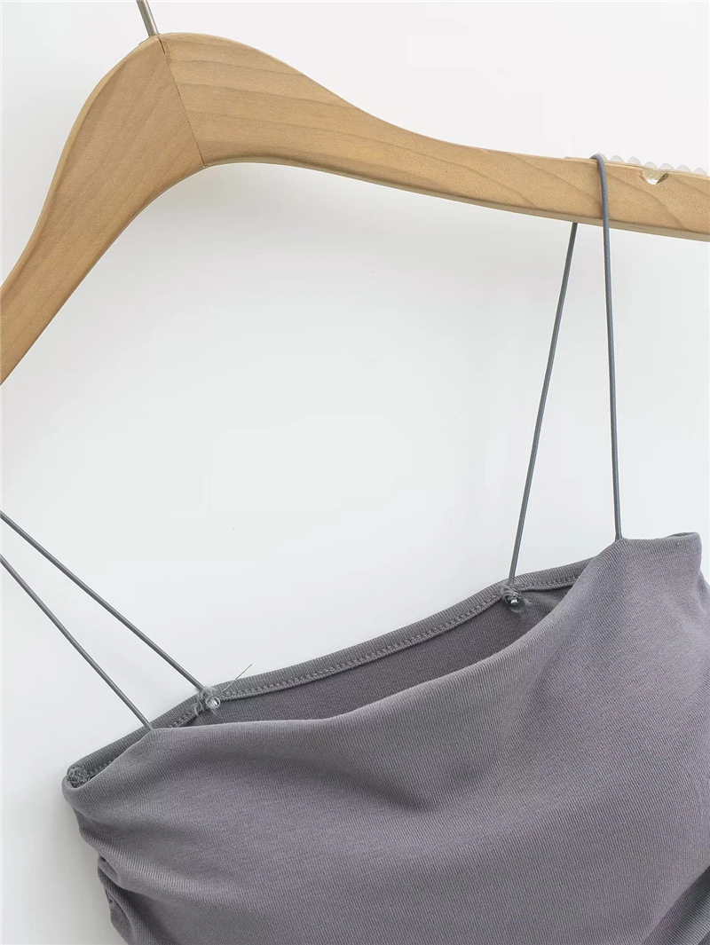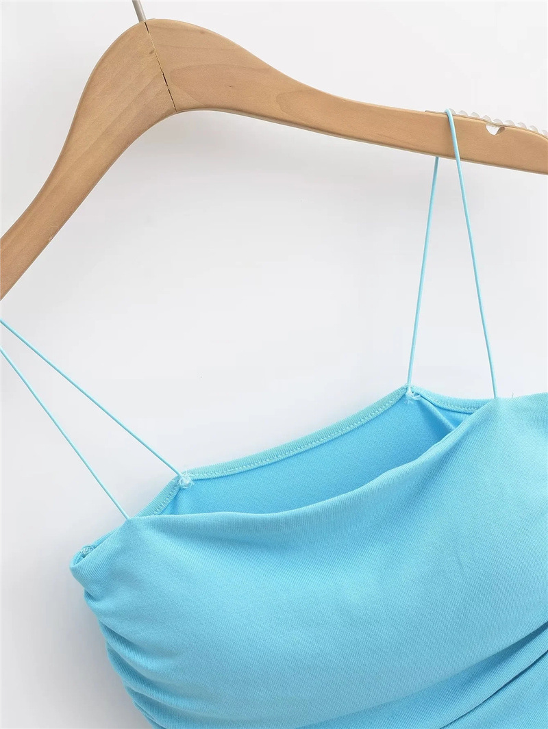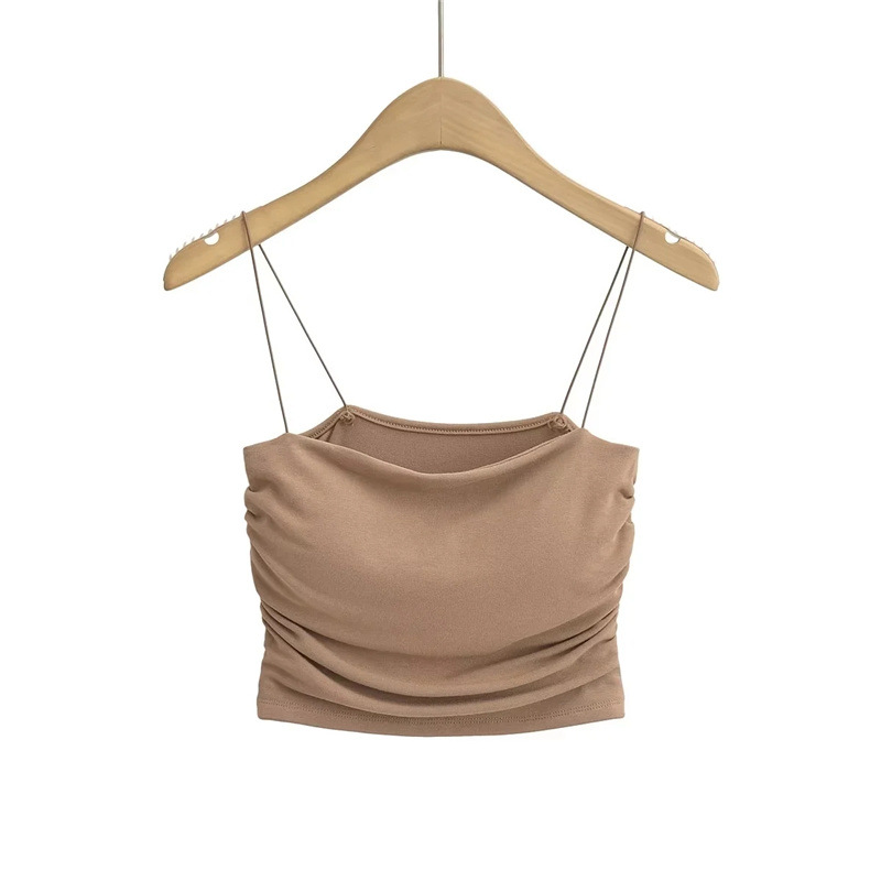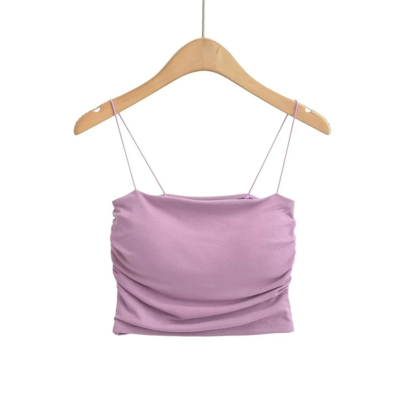 유럽과 미국 스타일 섹시한 평평한 입 주름 고무 작은 슬링 여름 새로운 짧은 배꼽 슬림 핏 슬리밍 향신료 소녀 조끼